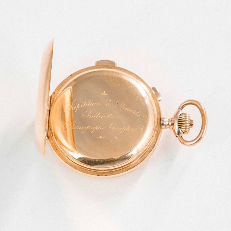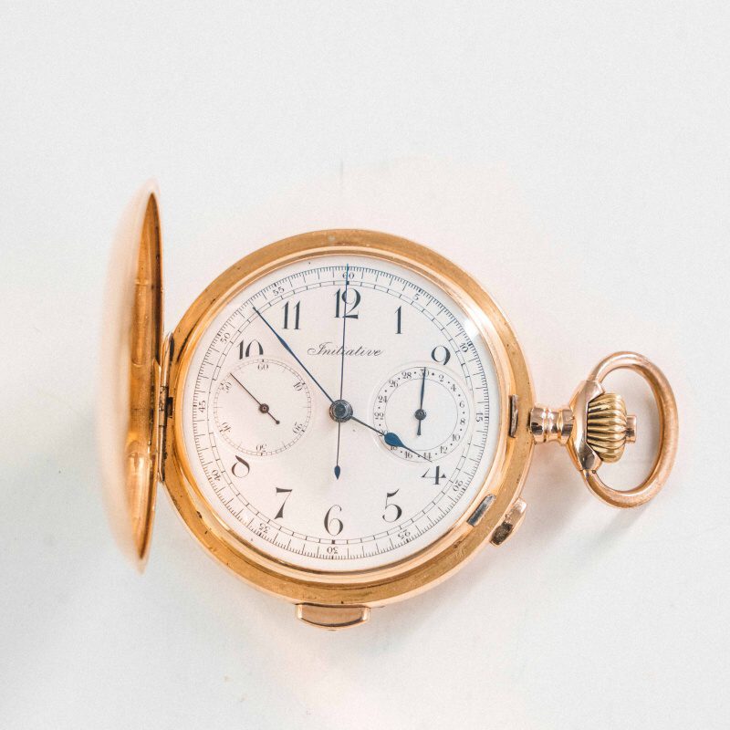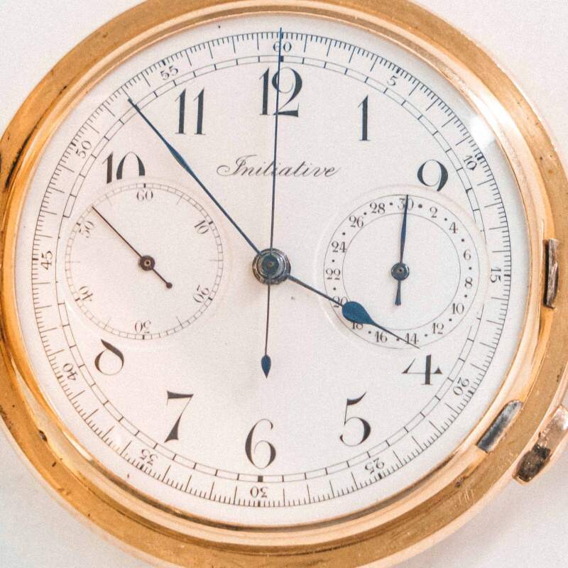 Мужские, антикварные золотые карманные часы с усложнениями (Grand Complications) — «Initiative». Швейцария, конец XIX — начало XX века (ок. 1890–1910 гг.).