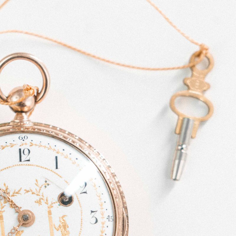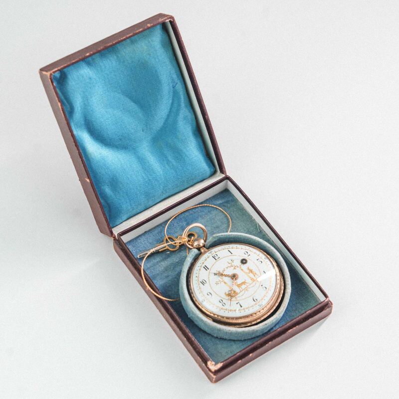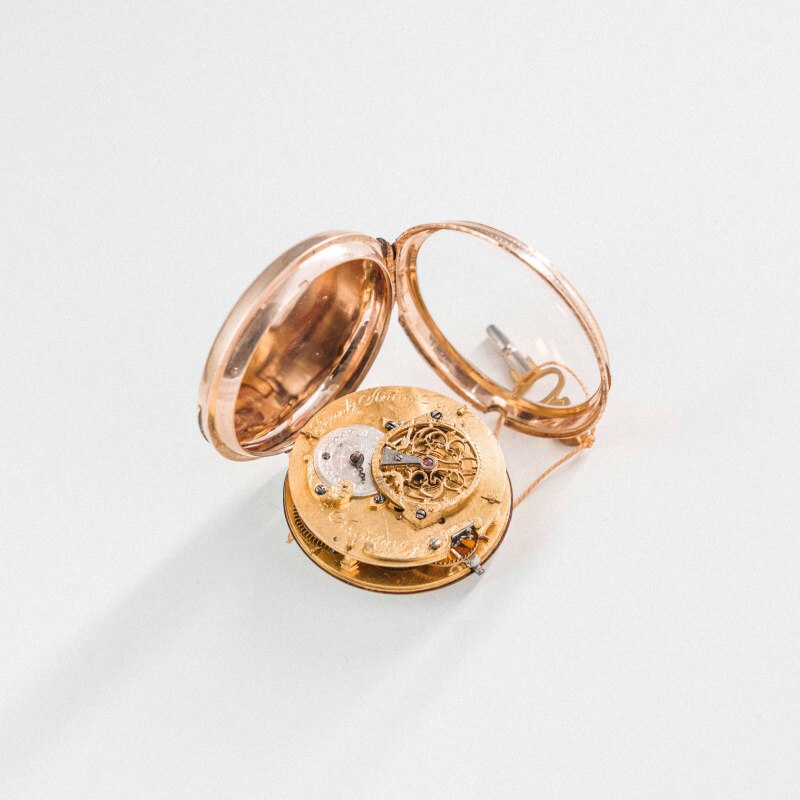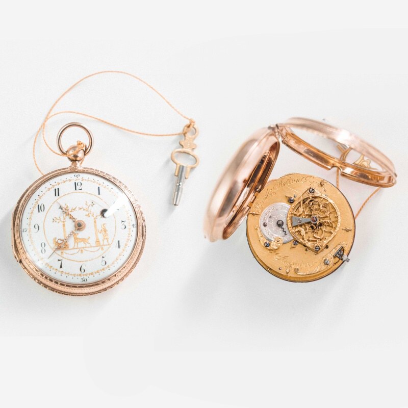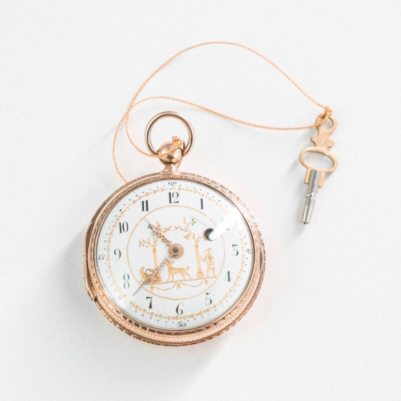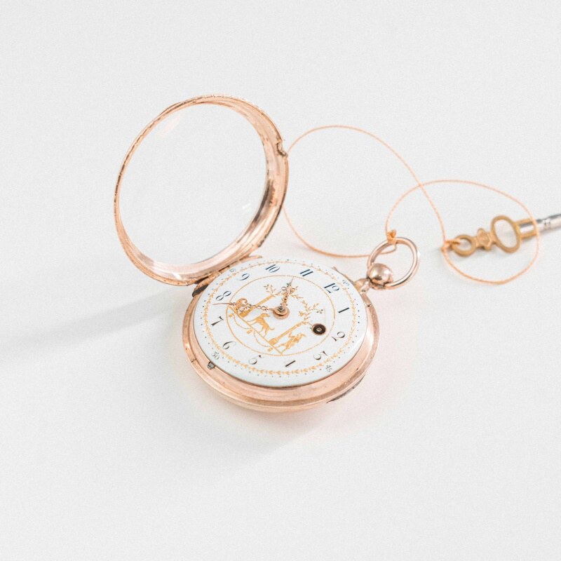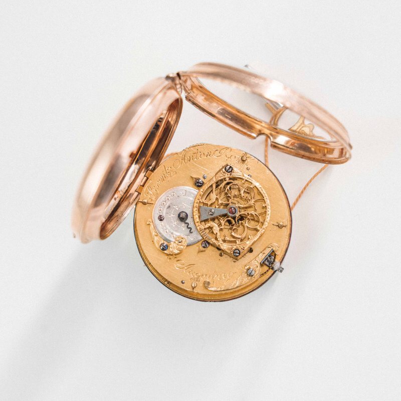 Антикварные золотые карманные часы XVIII века, примерно 1760–1780-е годы. Мастер: Франц Антон Рот (Frantz Anton Roth) — известный часовщик, работавший в Аугсбурге (Германия) во второй половине XVIII века. Аугсбург был элитарным центром ювелирного дела Европы. Часы этого региона славятся богатой гравировкой и сложной механикой.