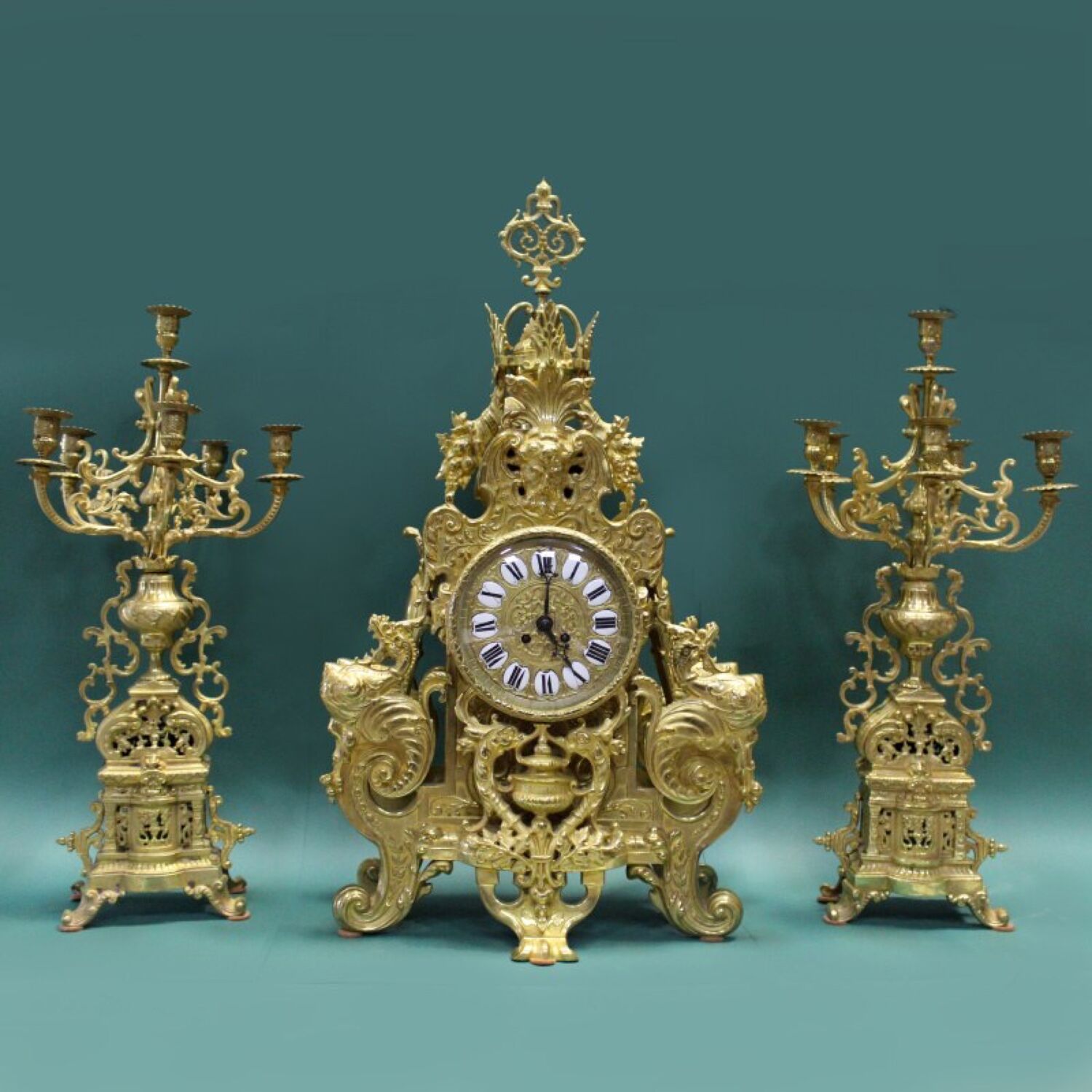 Размеры: Часы – 79 см. * 45 см. * 20 см. Канделябры – 68 см.