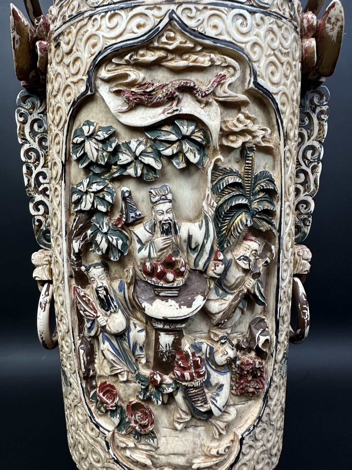 Большая изысканная резная ваза из кости