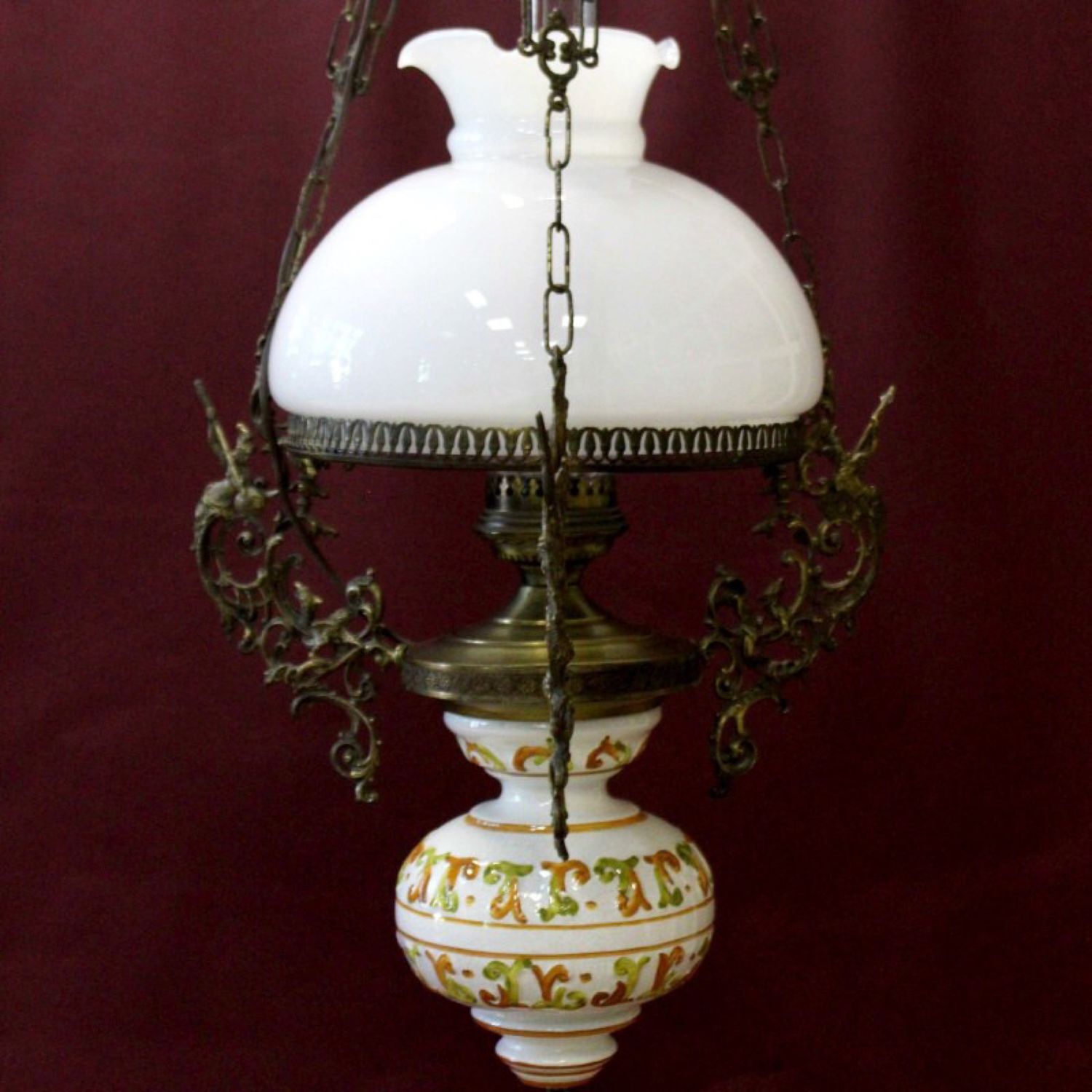 Бронзовая люстра с фаянсом, ручной работы