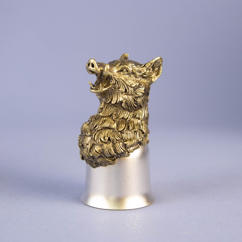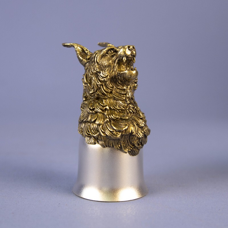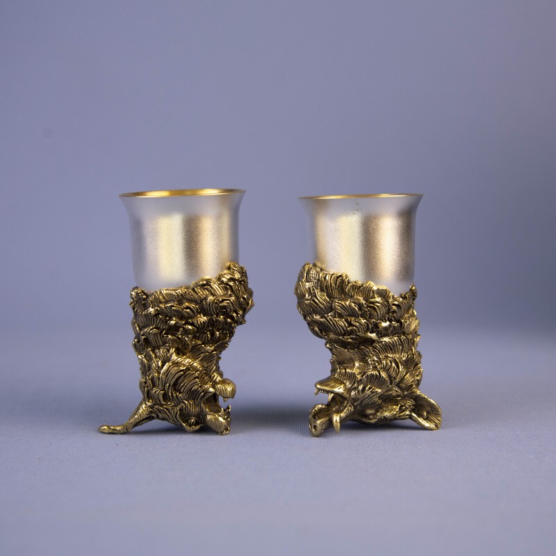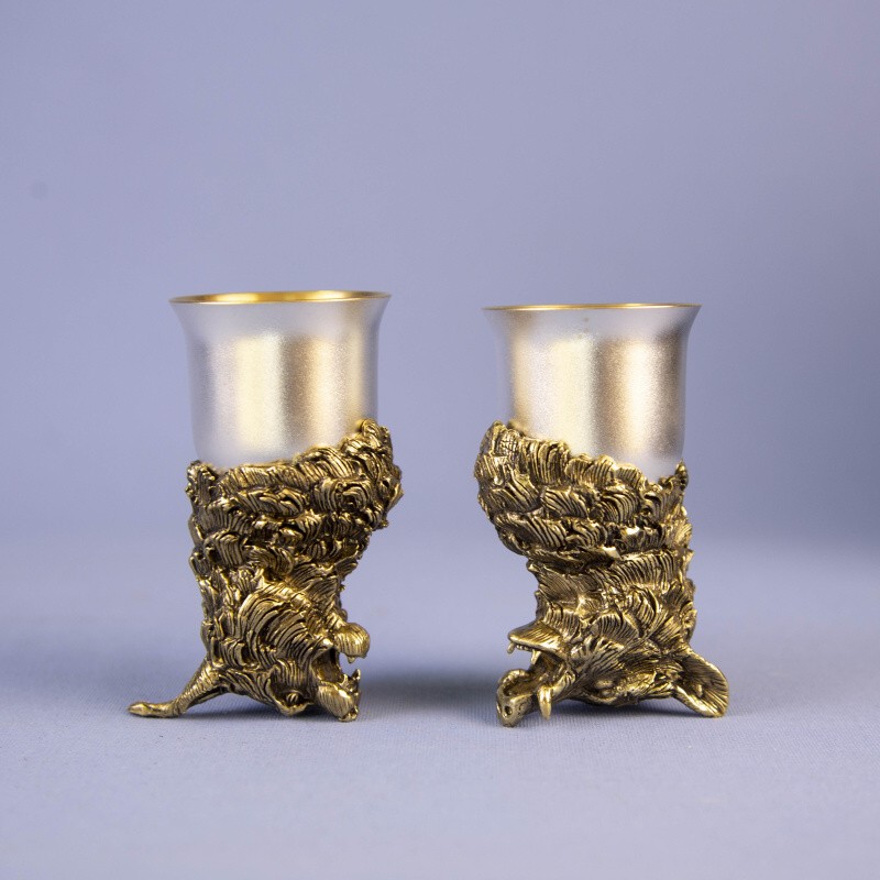 Материал: Фигура животного изготовлена из массивной бронзы (латуни). Рюмка изготовлена из мельхиора в российской мастерской. Покрытие серебром - золотом (внутренняя часть).