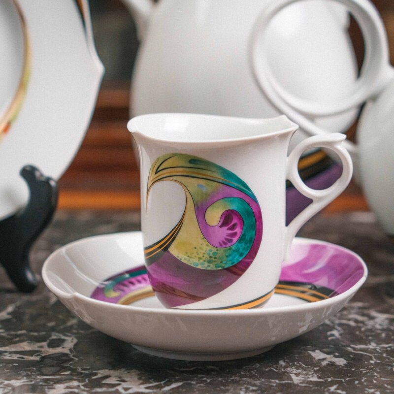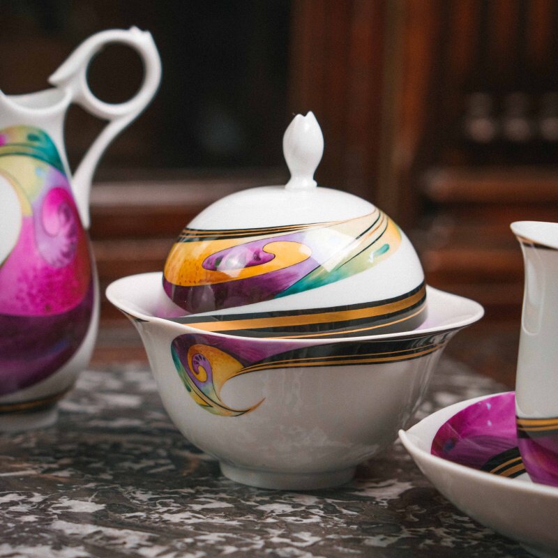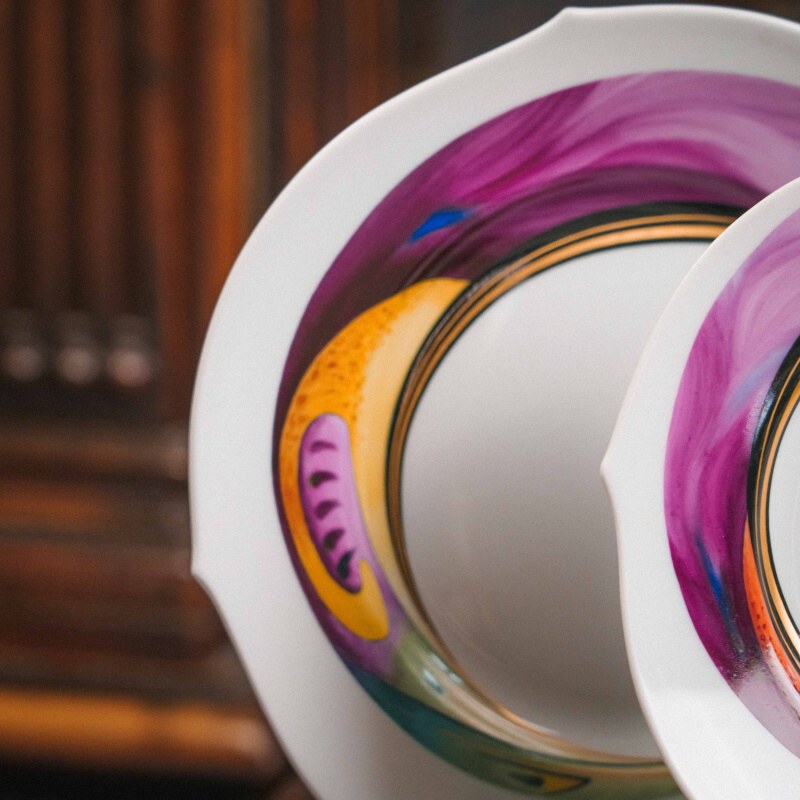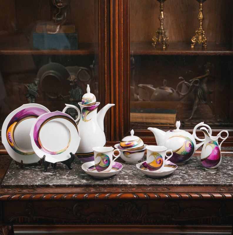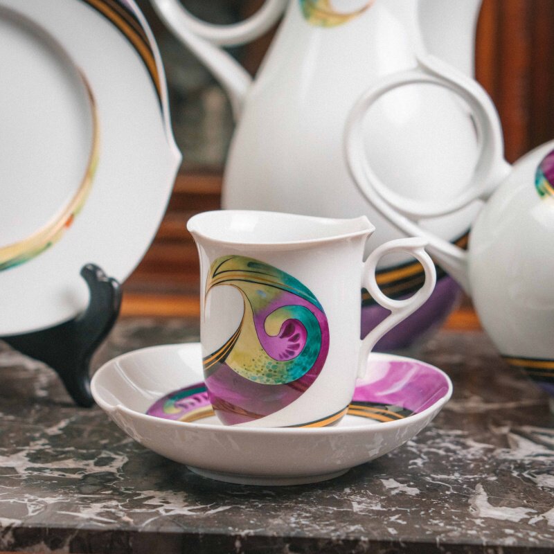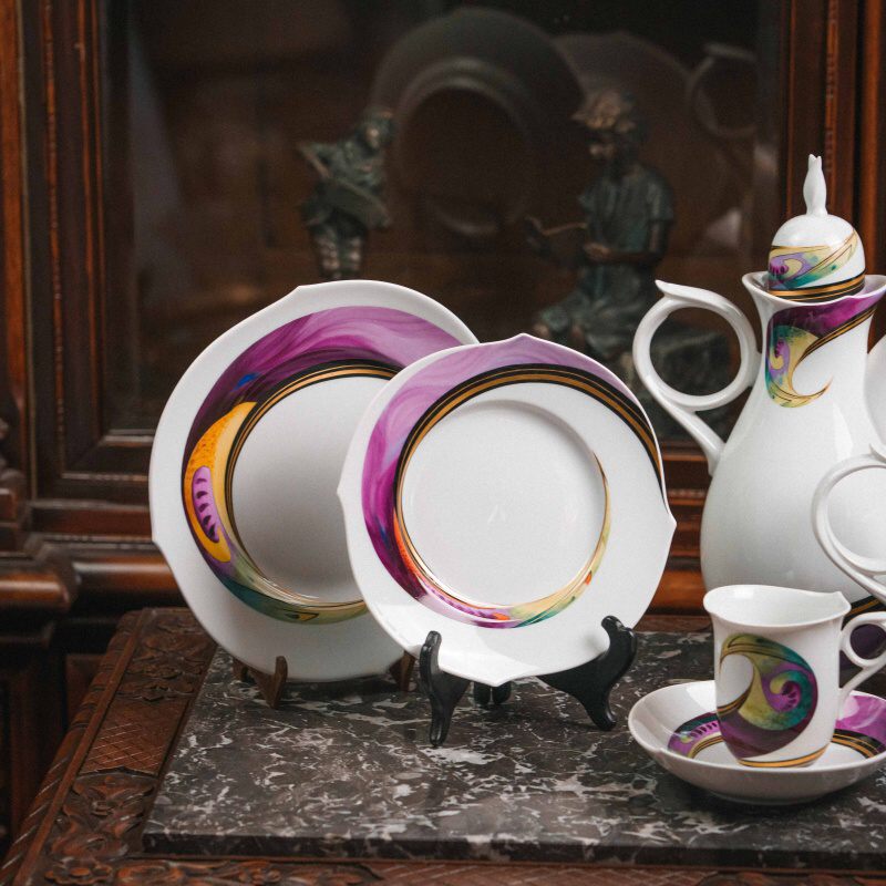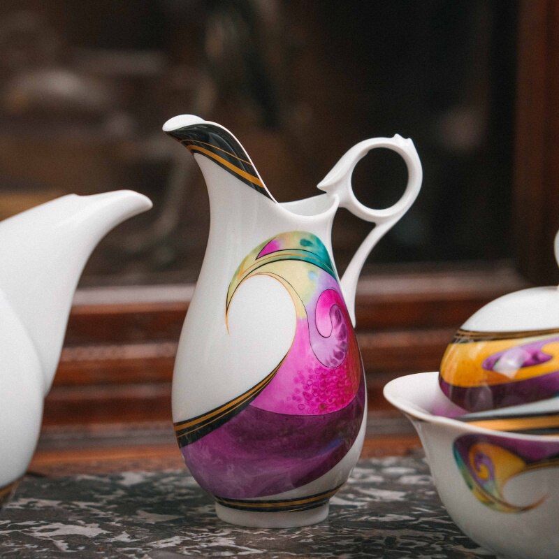 Декор сервиза принадлежит художнику Вольфгангу Краузе (Wolfgang Krause) и носит название «Aqua». Его отличают яркие живописные мазки — пурпурные, бирюзовые, золотистые, янтарные и фиолетовые волны, которые визуально усиливают идею «игры волн».