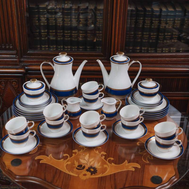 Чайный сервиз на 12 персон немецкой фарфоровой мануфактуры Mitterteich. Сервиз состоит из 40 предметов: 12 чайных пар (чашки и блюдца) 10 пирожковых тарелок, 2 чайника, 2 молочника, 2 сахарницы.