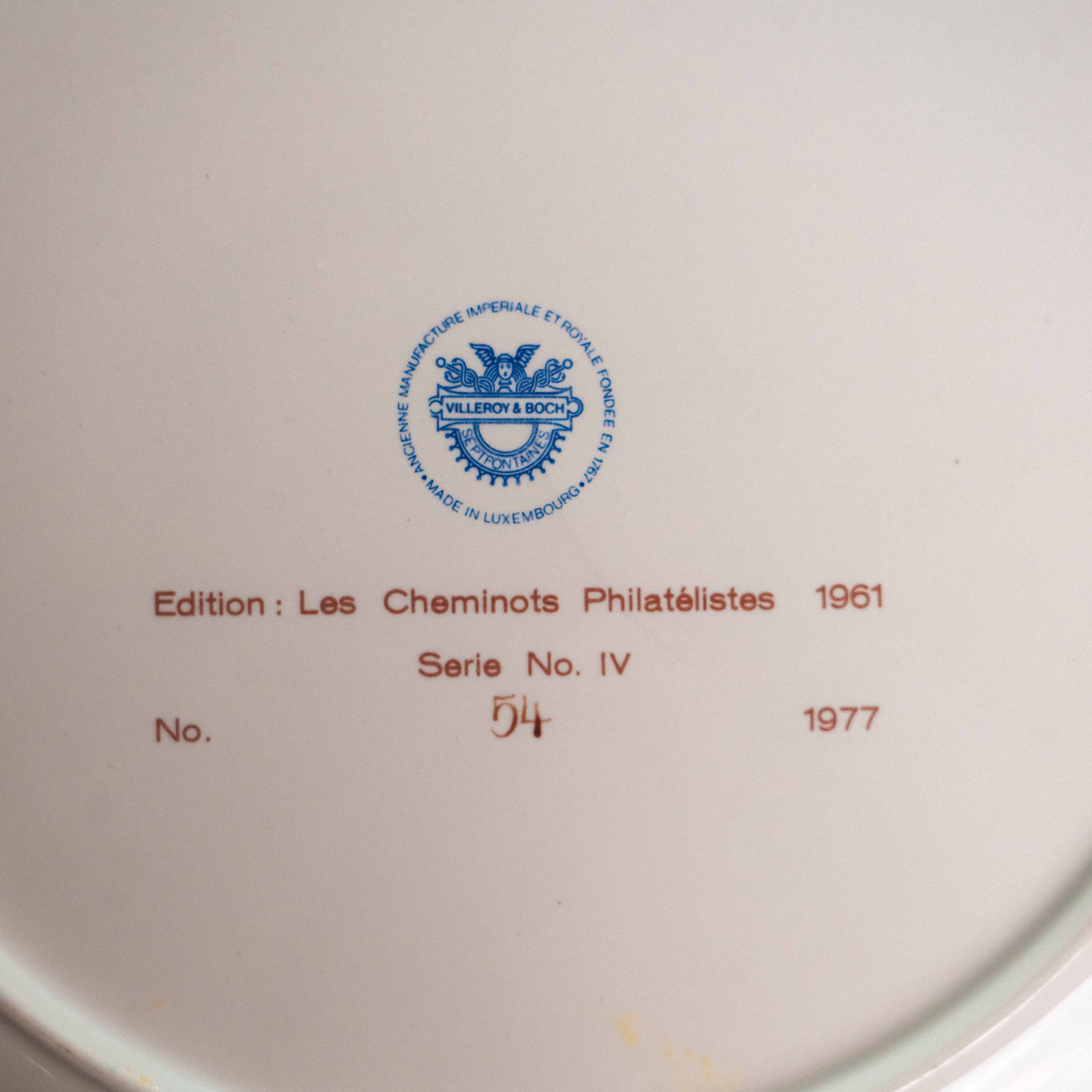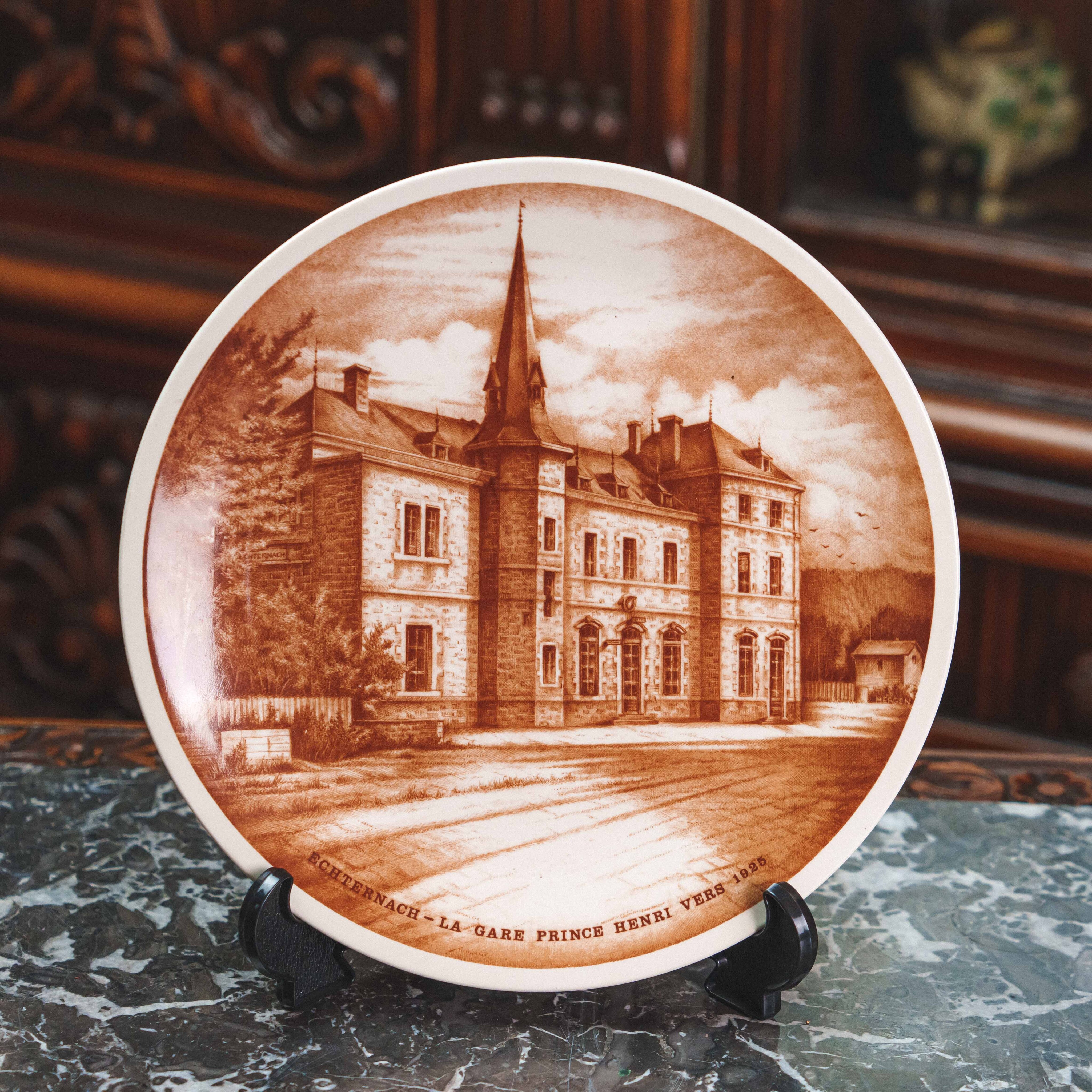 Коллекционная декоративная тарелка мануфактуры Villeroy & Boch из лимитированной серии Les Cheminots Philatélistes. На лицевой стороне изображено историческое здание вокзала Echternach (1825), выполненное в тёплой сепийной гамме, напоминающей старинные гравюры и архивные фотографии. Композиция передаёт атмосферу XIX века и эпохи расцвета европейских железных дорог, когда вокзалы становились важными архитектурными и культурными центрами. Каждый экземпляр имеет индивидуальный номер — данный №54. Эффектный интерьерный акцент и редкий предмет с коллекционной и исторической ценностью.