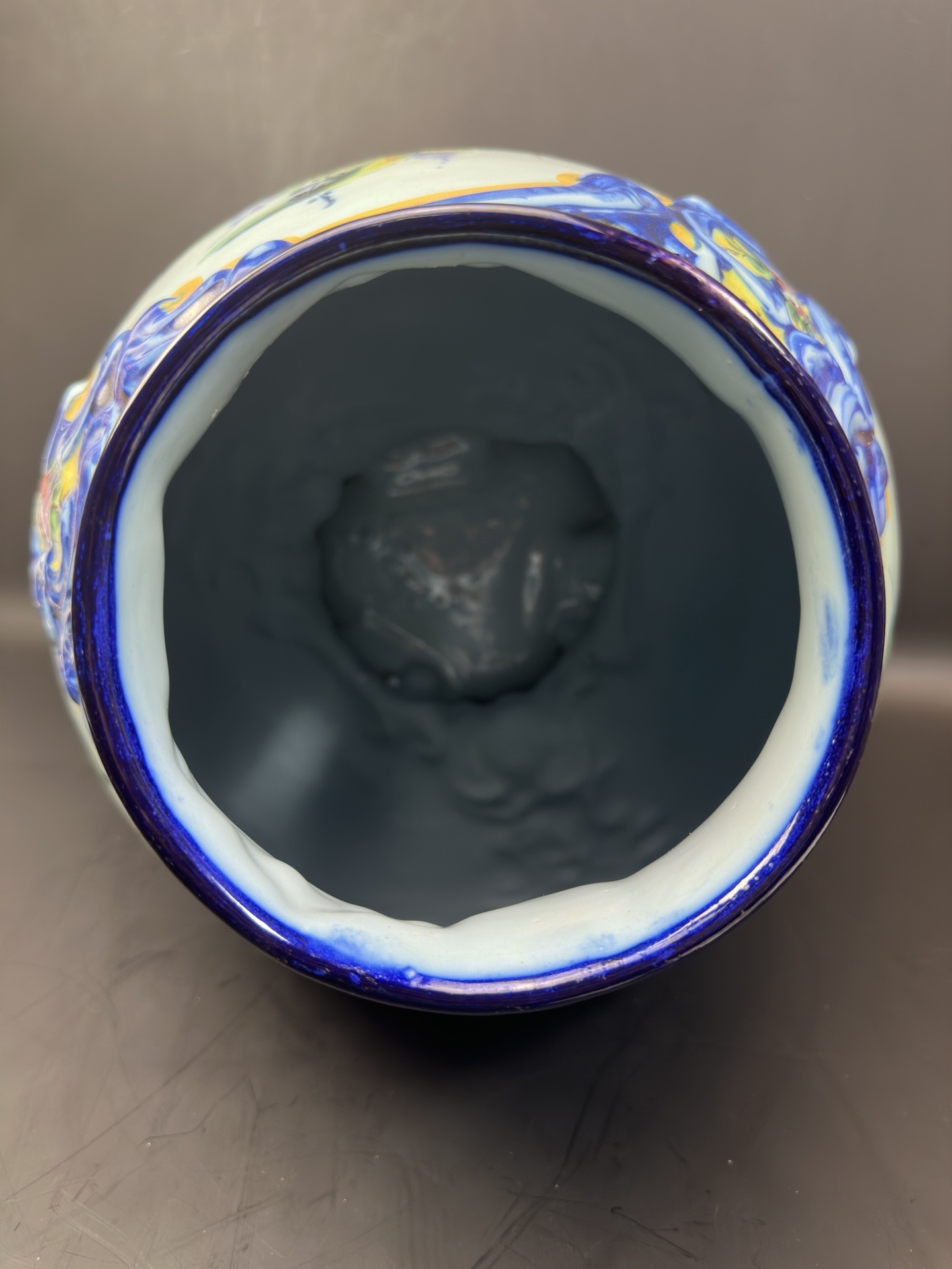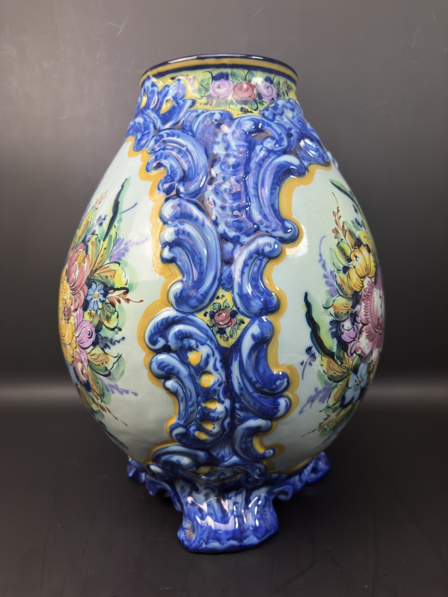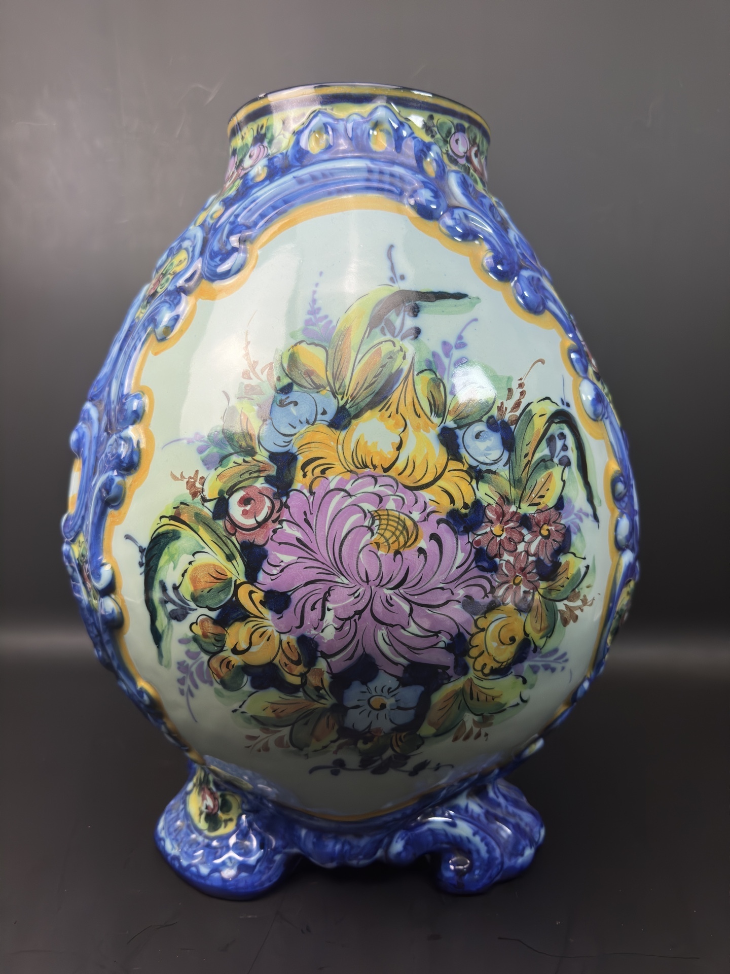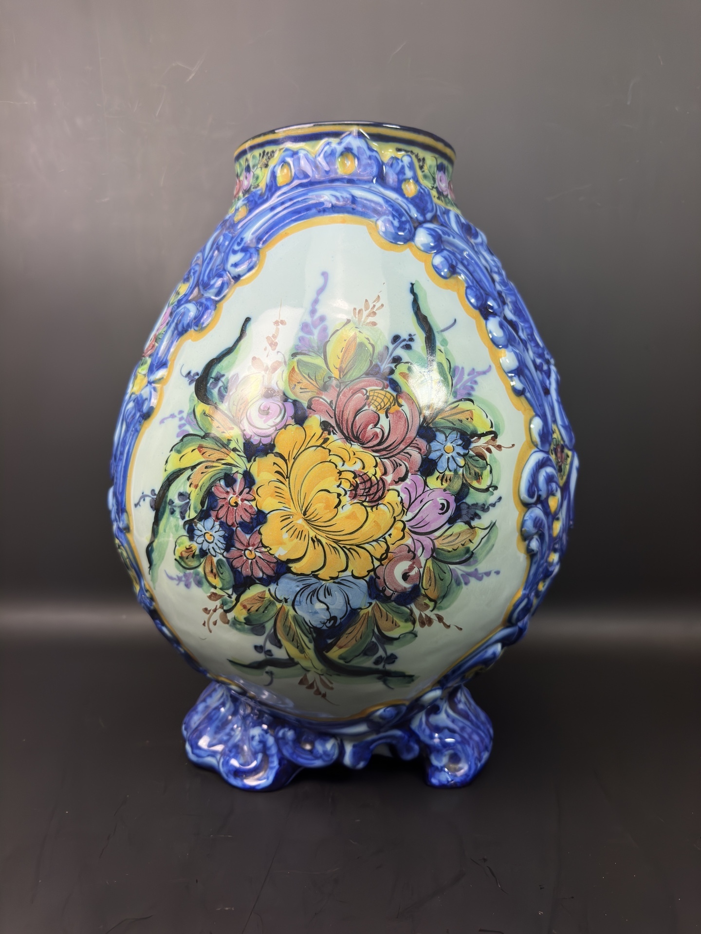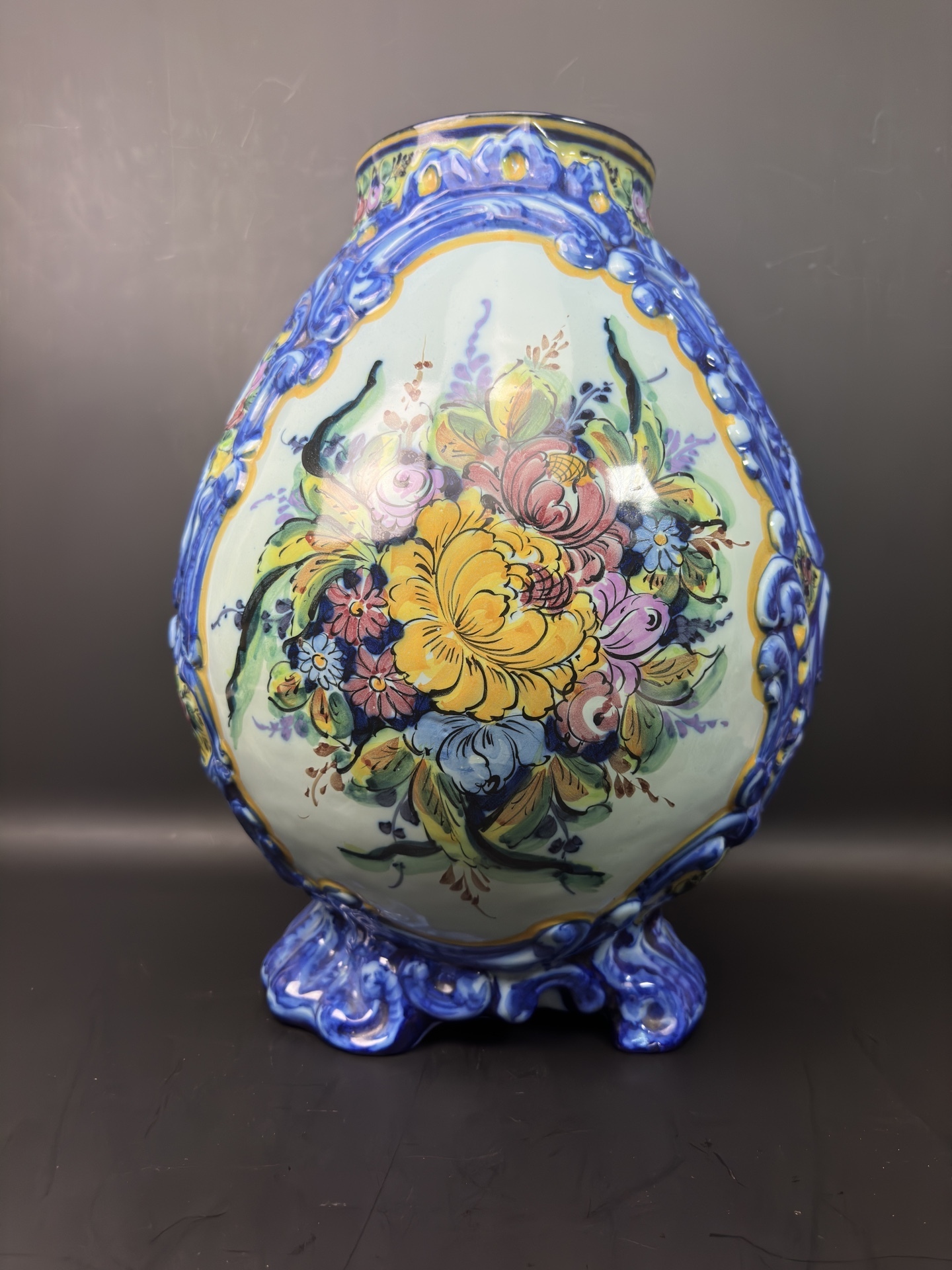Ваза, является изделием из фаянса португальской мануфактуры Alcobaça, известной своими декоративными элементами и ручной росписью.