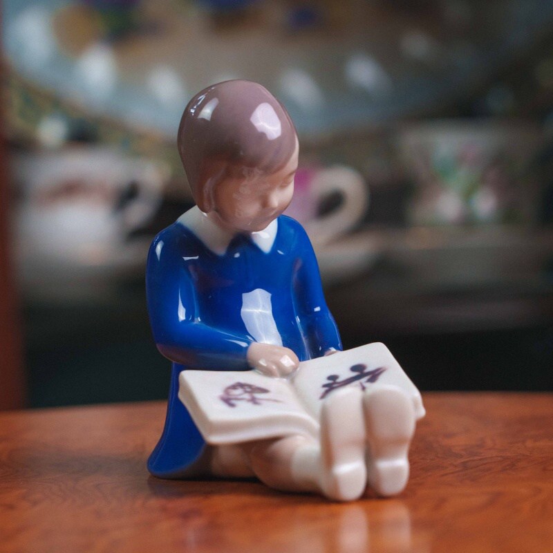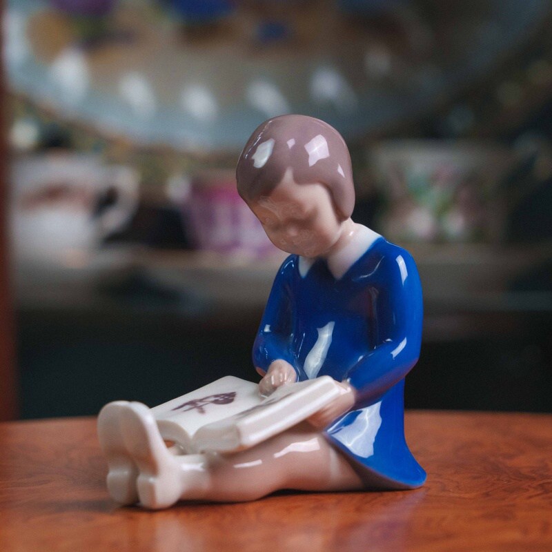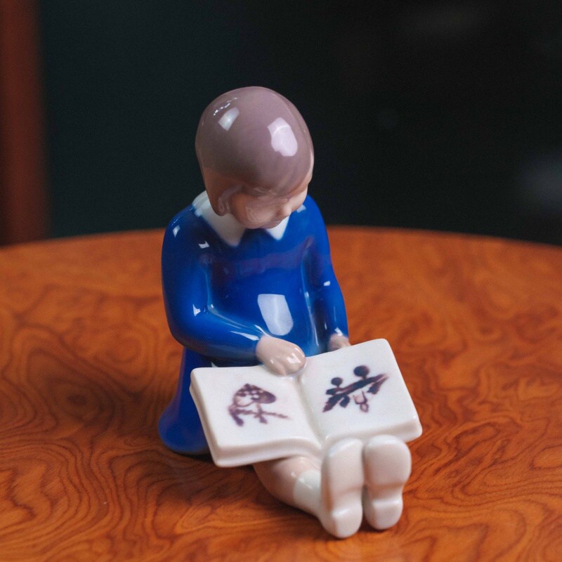 Очаровательная фарфоровая миниатюра от знаменитой датской мануфактуры Bing & Grondahl изображает девочку, увлечённо рассматривающую картинки в раскрытой книге.