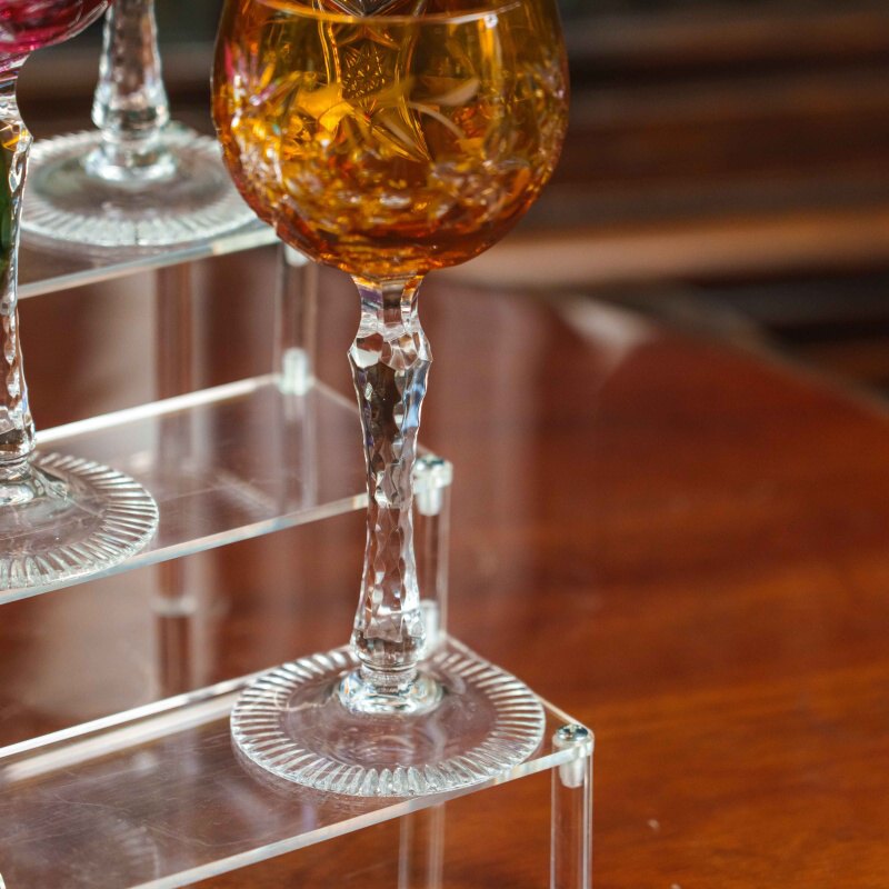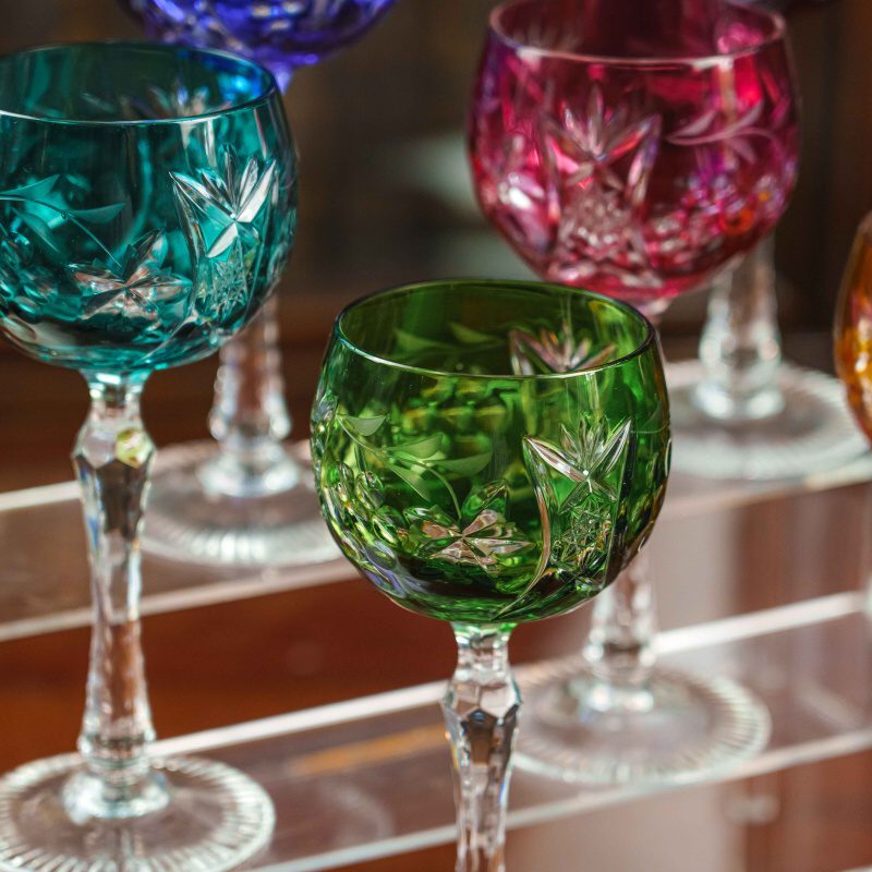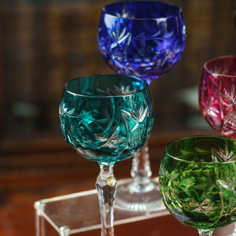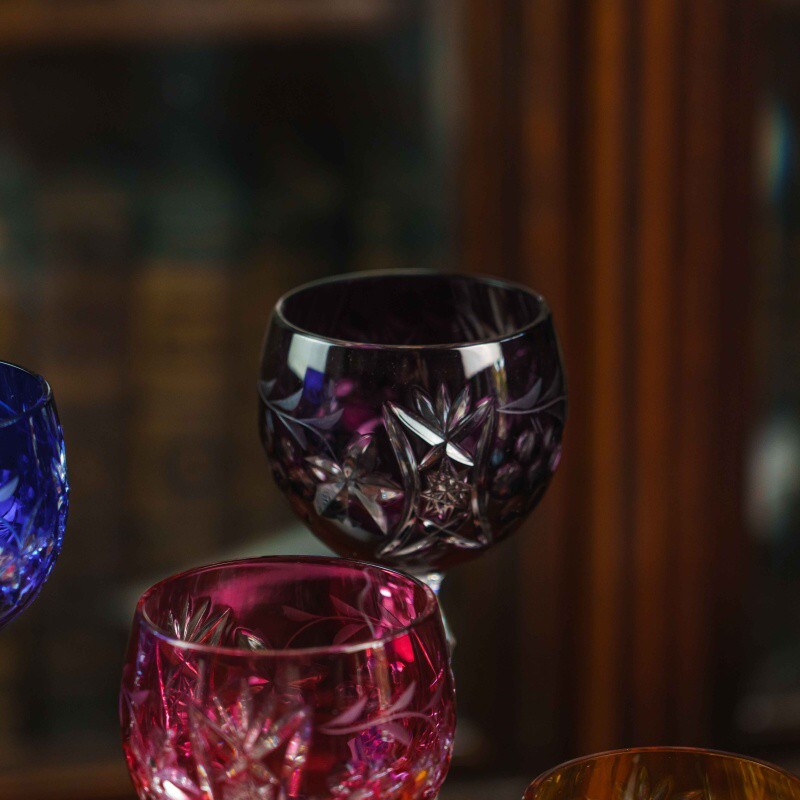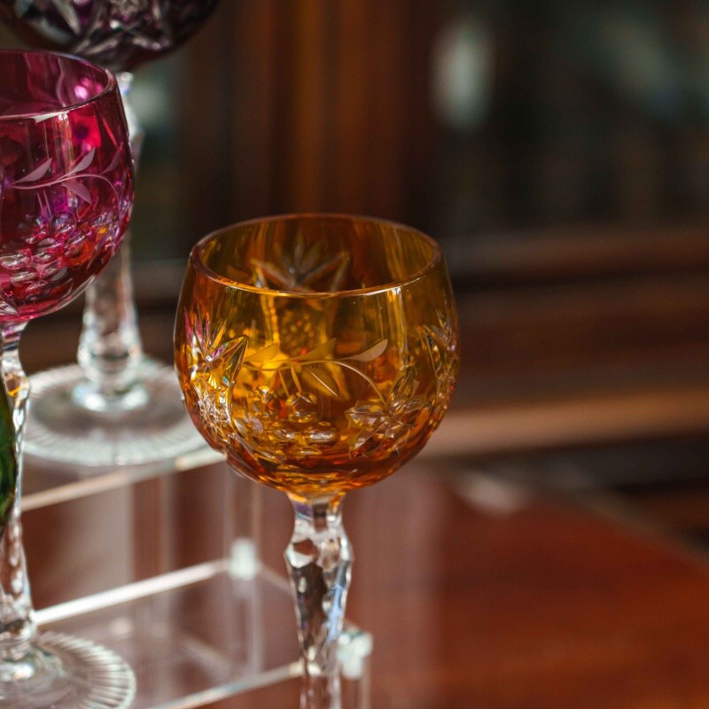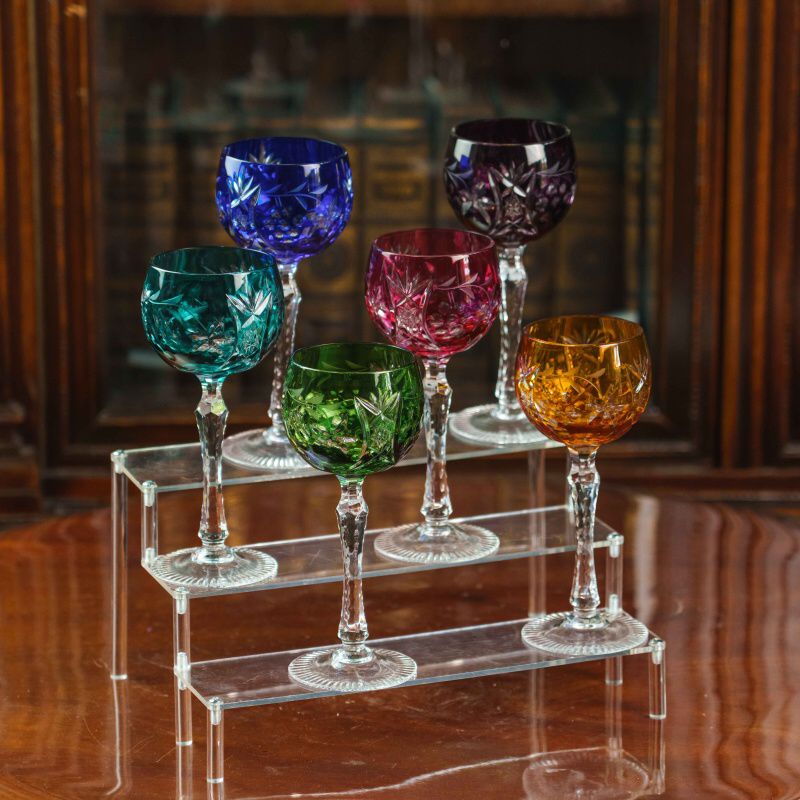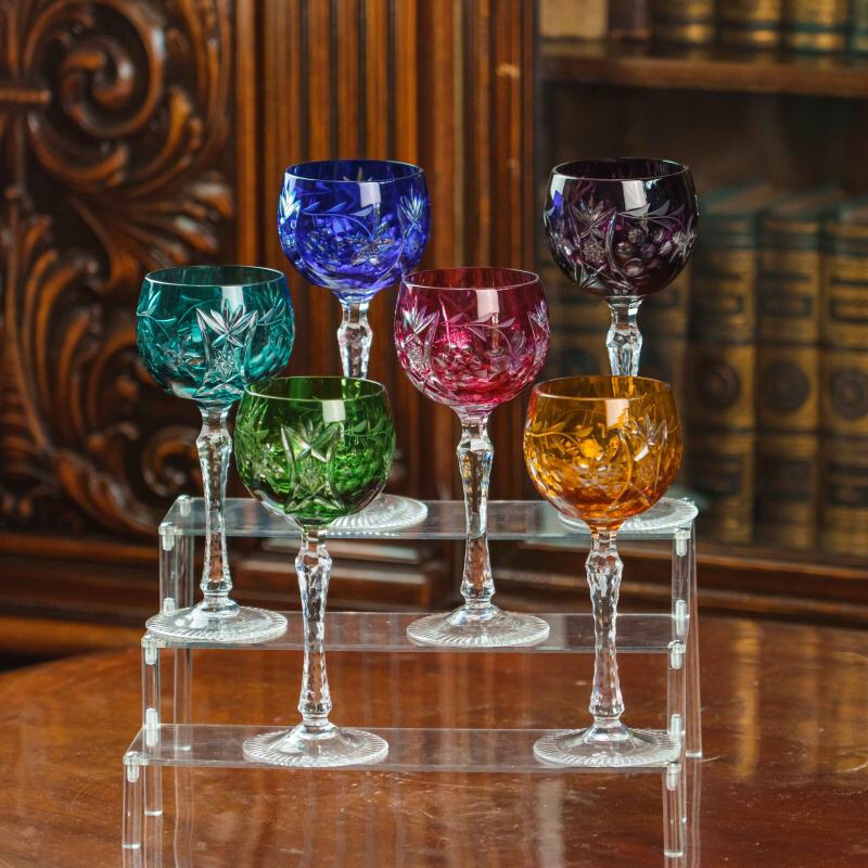 Набор фужеров для вина Nachtmann — это сочетание изысканности, традиций и мастерства немецких стеклодувов. Каждый бокал выполнен из высококачественного хрусталя, украшен яркой цветной гаммой — глубокий синий, изумрудный зелёный, бирюзовый, рубиново-красный, янтарный и фиолетовый оттенки создают праздничную палитру. Поверхность каждого фужера богато декорирована ручной алмазной гранью с растительными мотивами, что придаёт бокалам утончённый блеск и игру света. Тонкая ножка с изящной гранённой структурой завершает композицию, подчёркивая лёгкость и гармонию формы. Такие фужеры идеально подойдут как для изысканной подачи вина, так и для праздничных застолий, превращая каждое событие в особый момент.