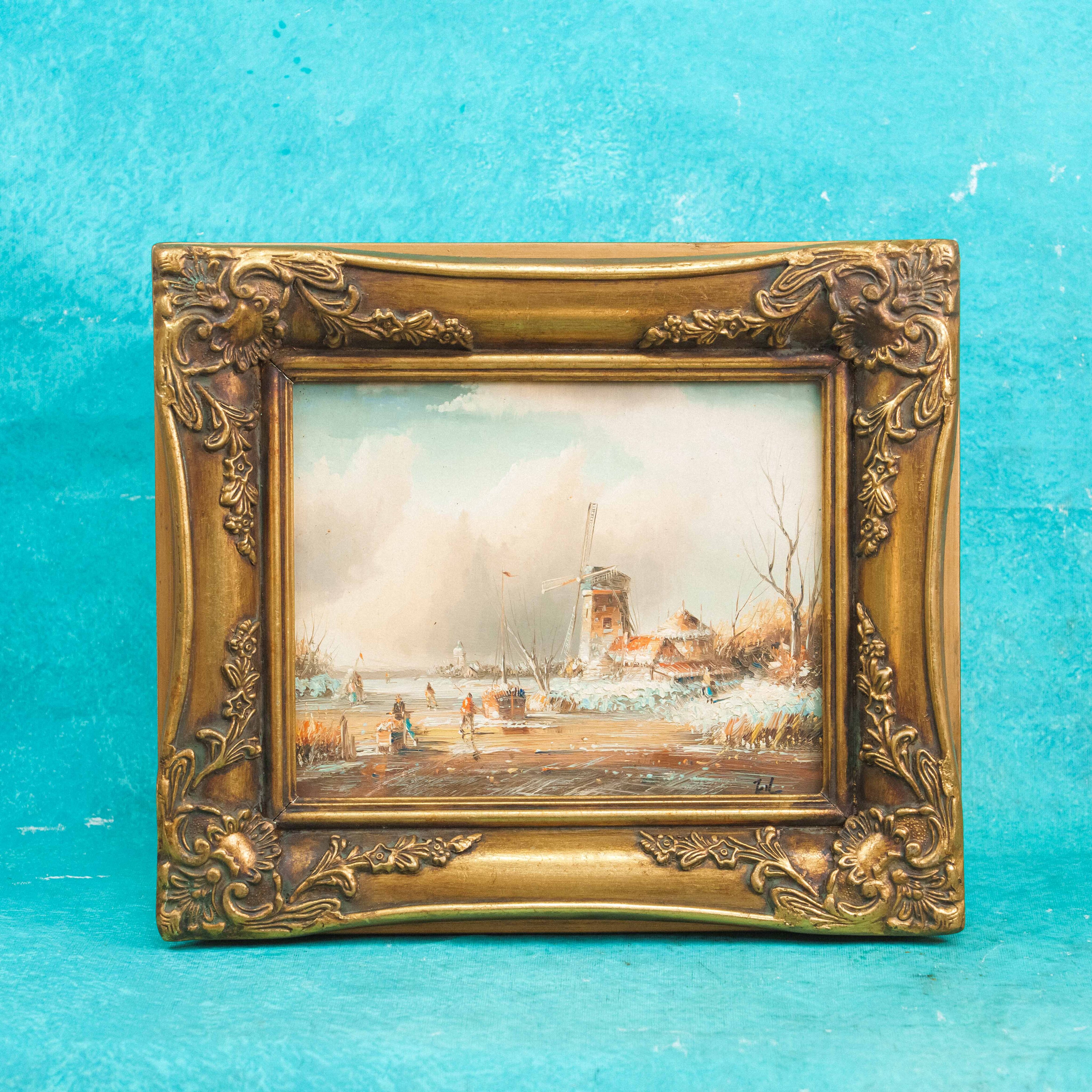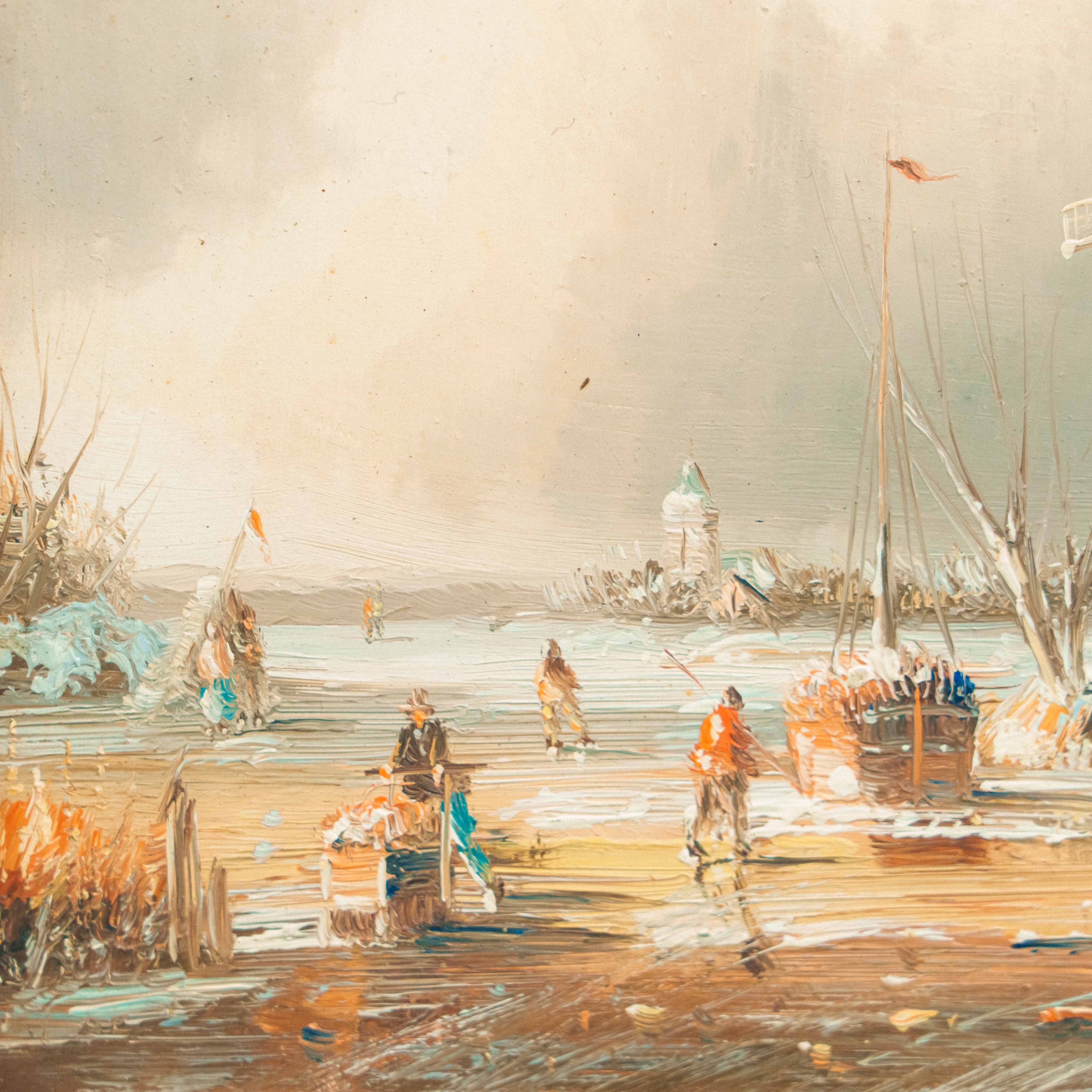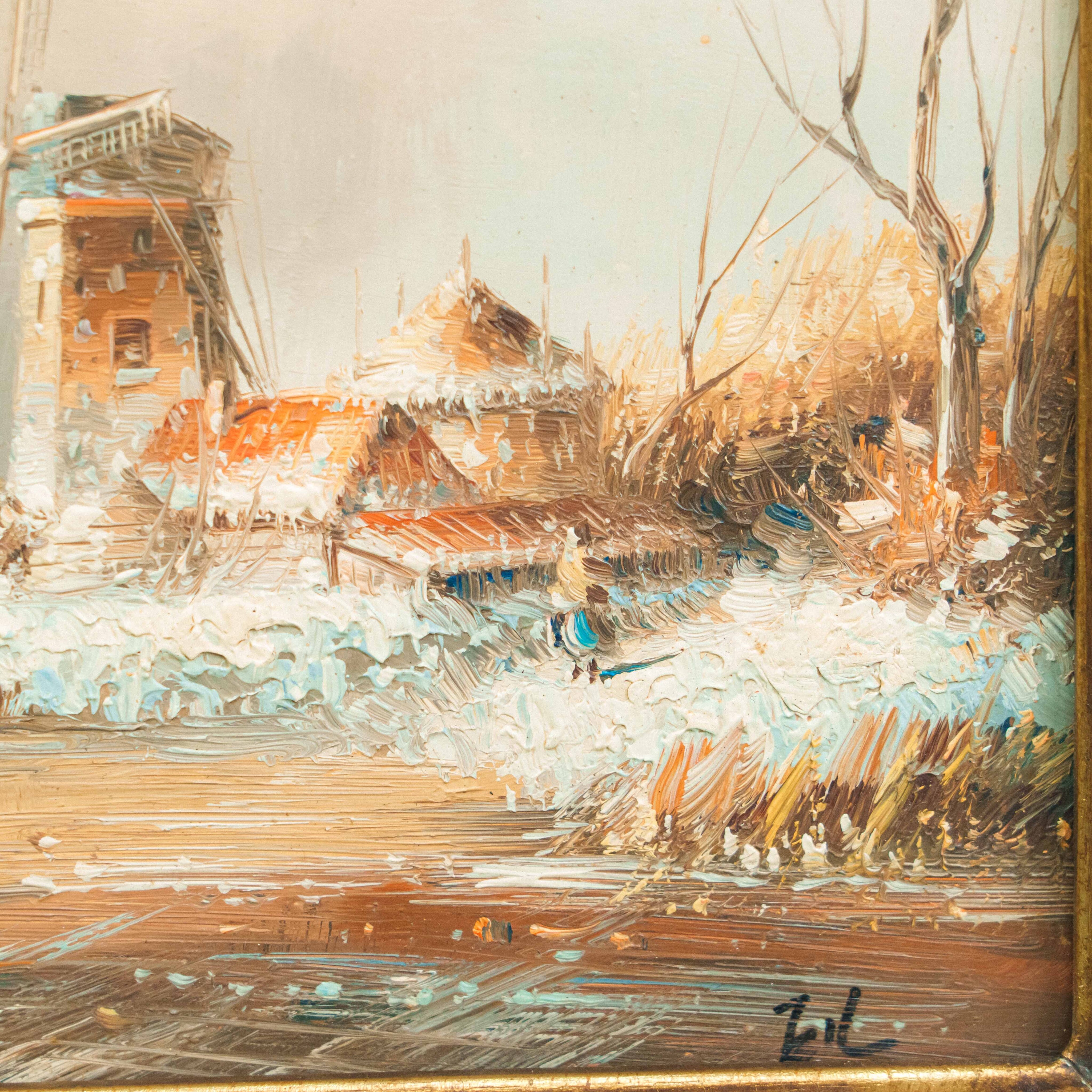 Живописный пейзаж, вдохновлённый классическими видами Голландии, с узнаваемым силуэтом ветряной мельницы и спокойной сельской жизнью у воды. Работа наполнена воздухом и светом: мягкое небо, отражения на влажной земле, фигуры людей и лодки создают ощущение размеренного ритма и уюта.