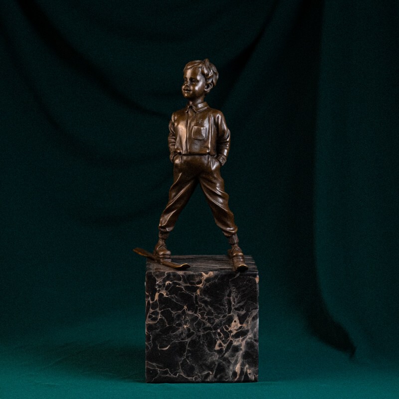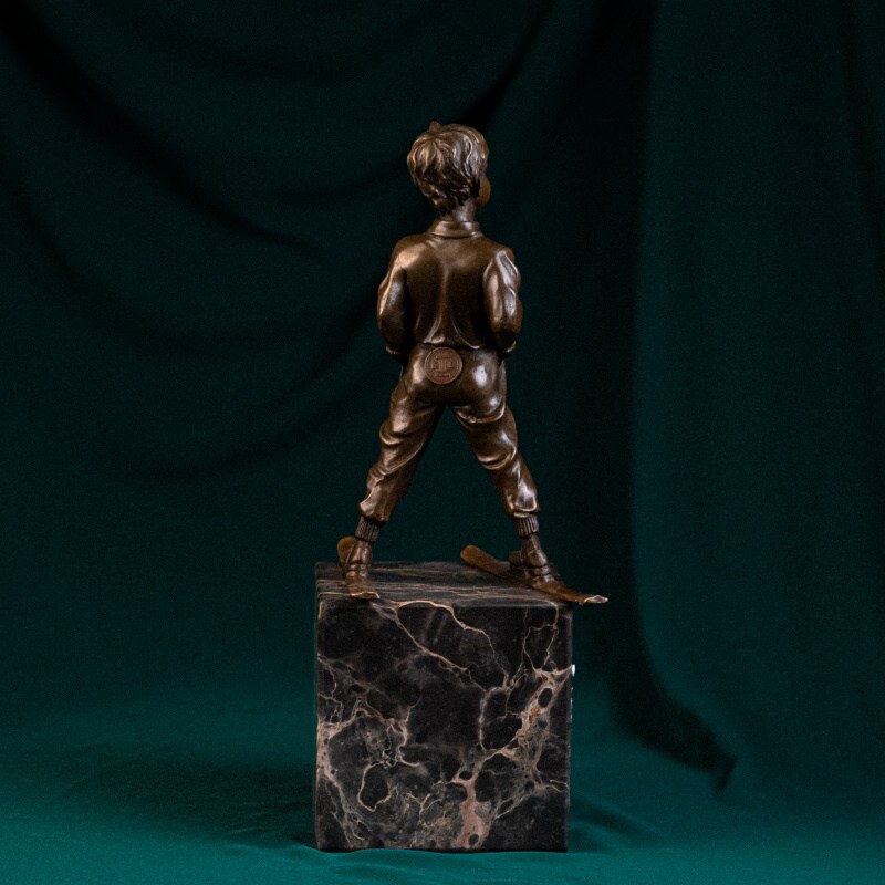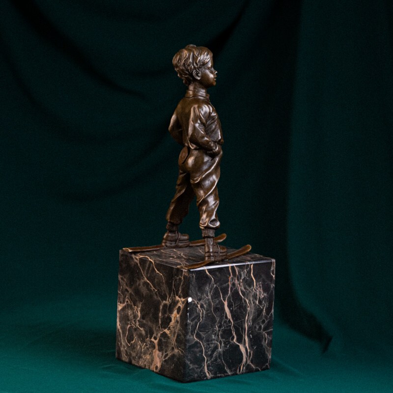 Очаровательная кабинетная статуэтка, изображающая мальчика на лыжах. Особое внимание уделяется мимике лица, артистичности и тщательной мелкой детализаций.