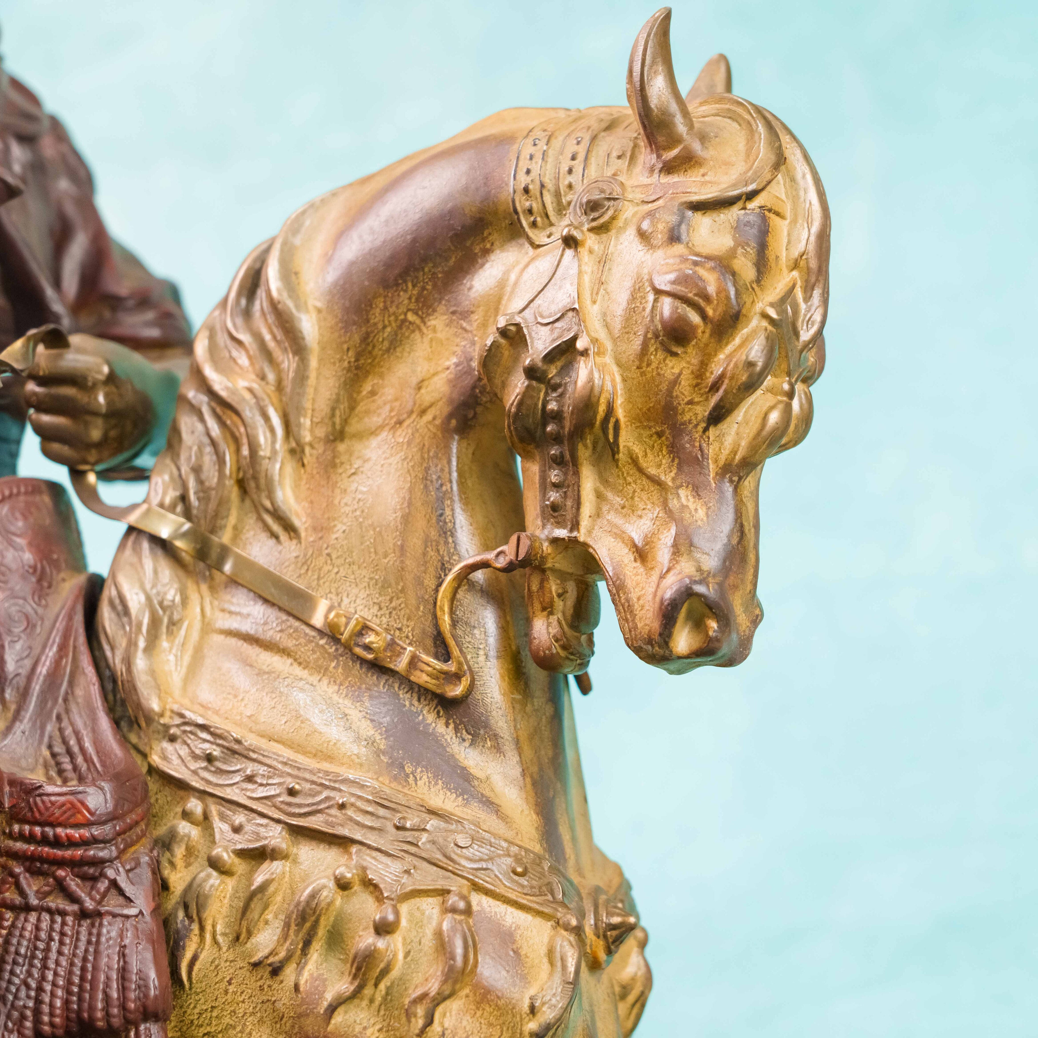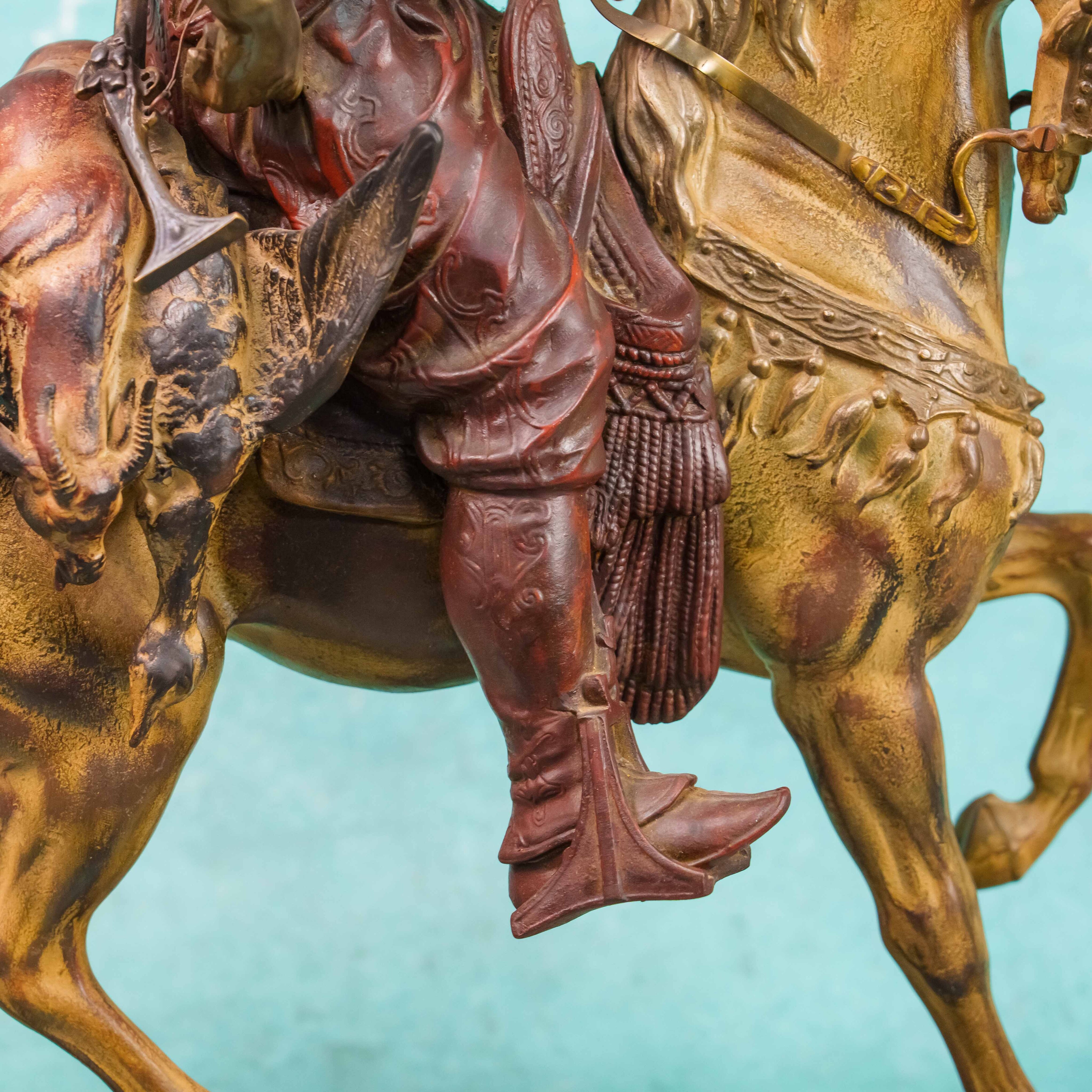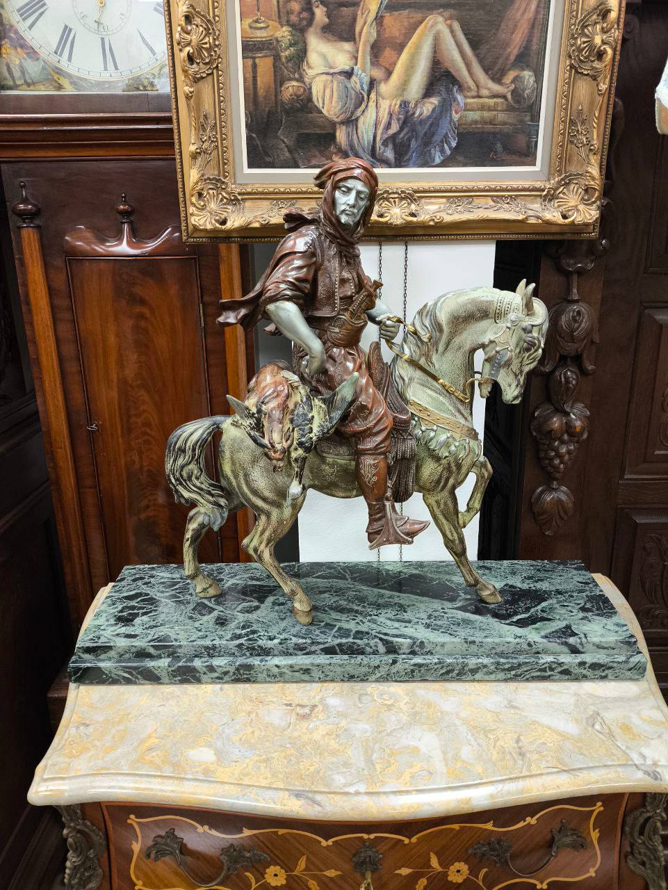 Выразительная кабинетная скульптурная композиция изображает мужчину в парадных восточных одеждах, сидящего на коне. В левой руке он держит поводья, через плечо перекинуто длинное ружьё. Работа выполнена из металла с художественным патинированием и установлена на массивном постаменте. Авторы уделили особое внимание тщательной проработке деталей костюма всадника, амуниции и анатомии лошади, что придаёт композиции выразительность, динамику и ощущение живого присутствия.