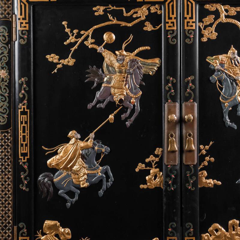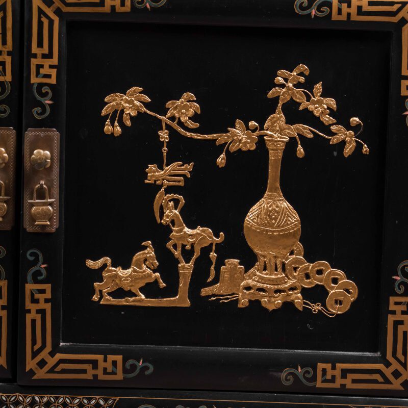 Подобные комоды часто создавались европейскими мастерами XVIII–XIX веков, вдохновлёнными китайским искусством, либо импортировались из Азии. Они использовались в аристократических интерьерах как предметы роскоши, подчёркивающие утончённый вкус владельца.