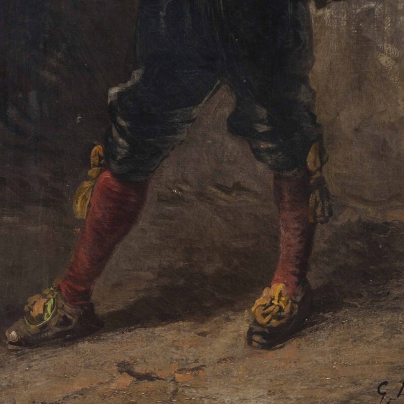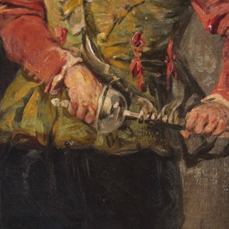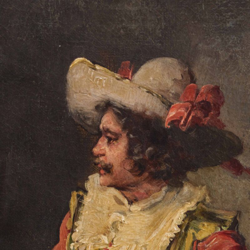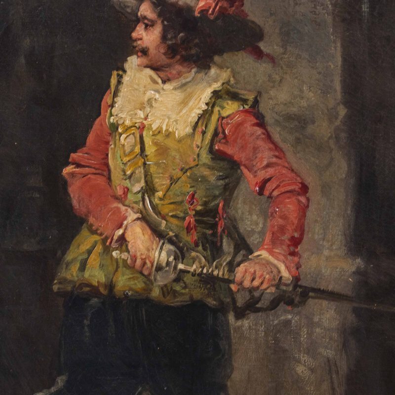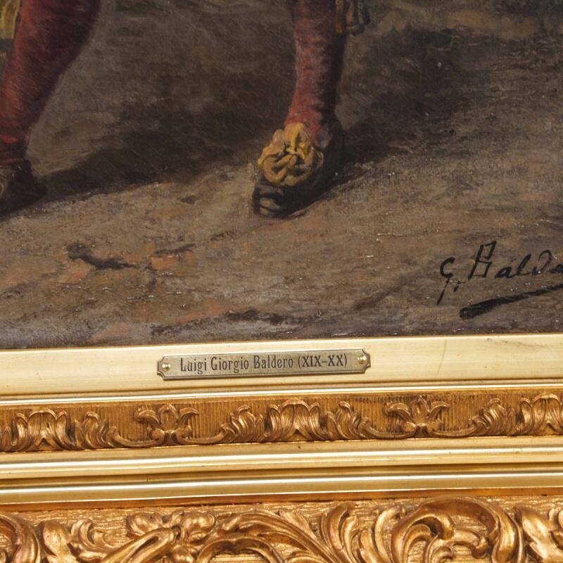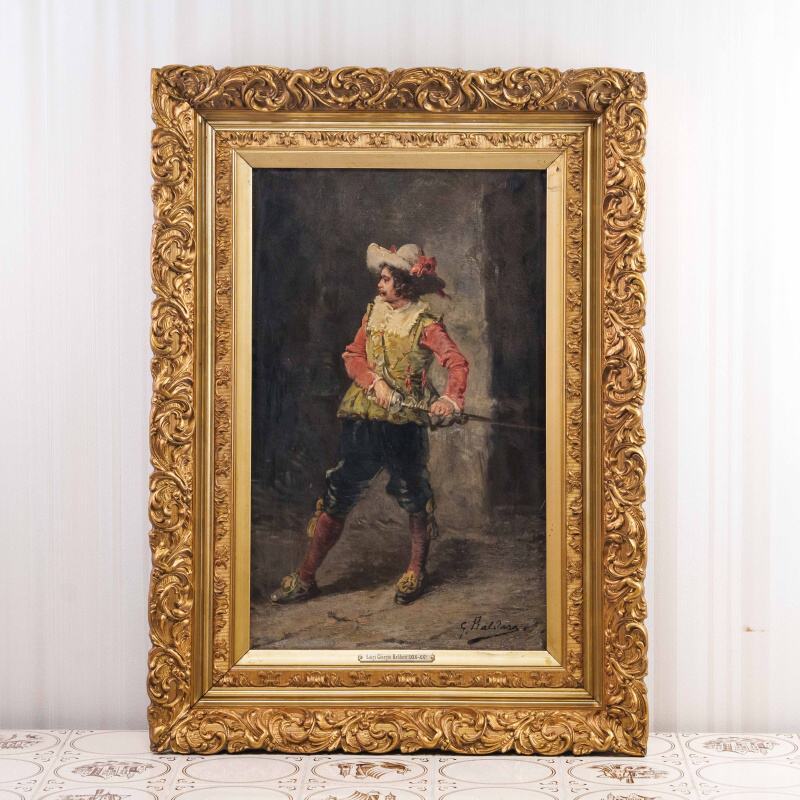 Представлена картина с условным названием «Мушкетер», известного итальянского художника Luigi Giorgio Baldero . Подпись автора, подтверждающая подлинность данной картины, находится в правом нижнем углу.