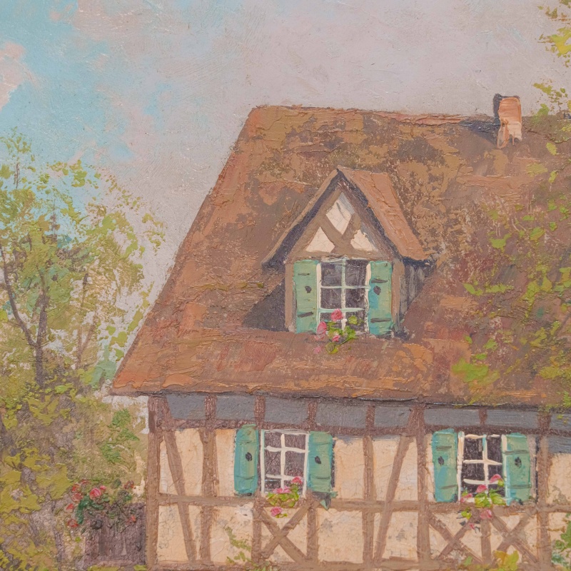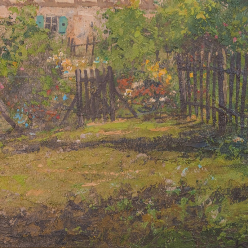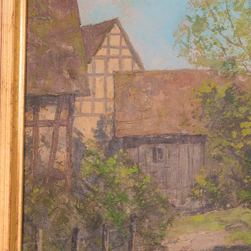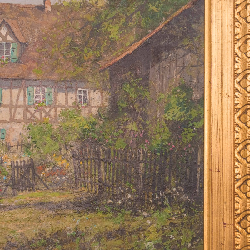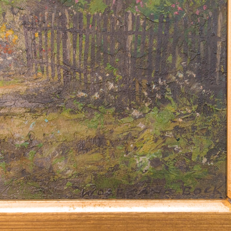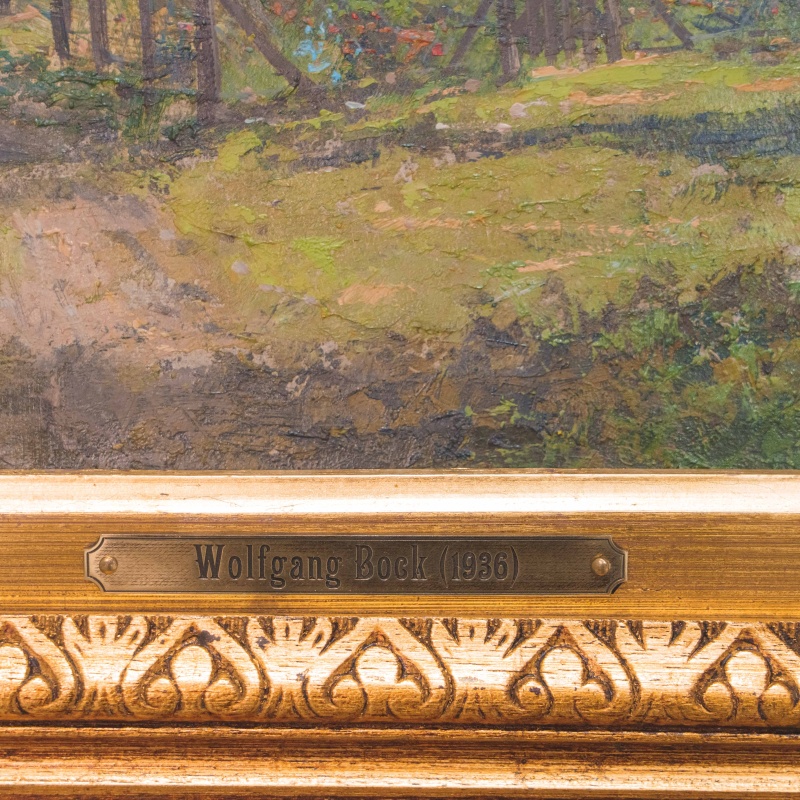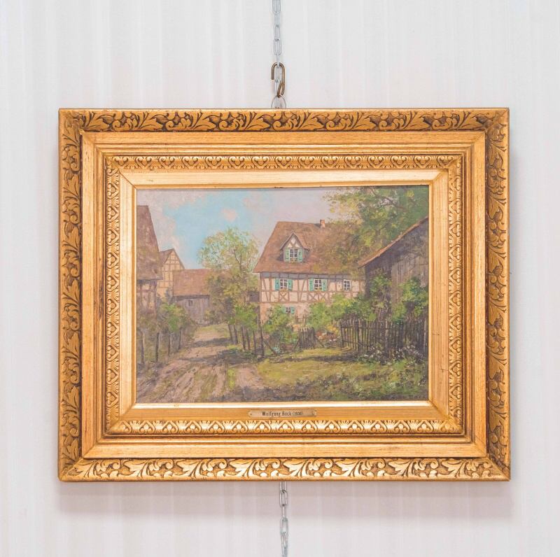 Представлена картина известного немецкого художника Wolfgang Bock c условным названием «Весенняя усадьба» .