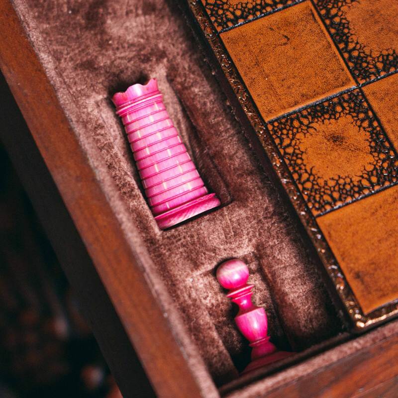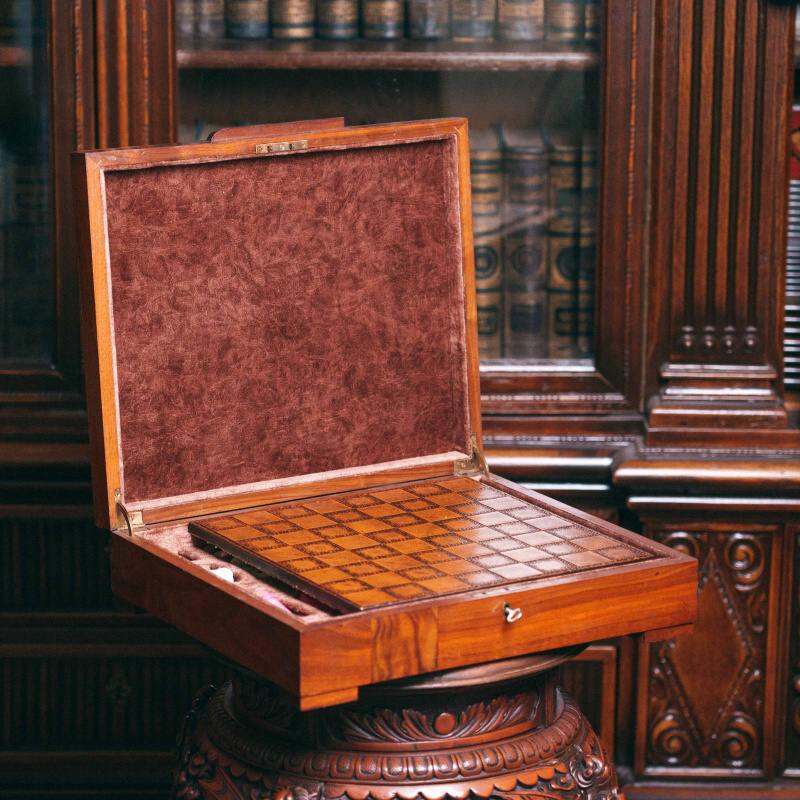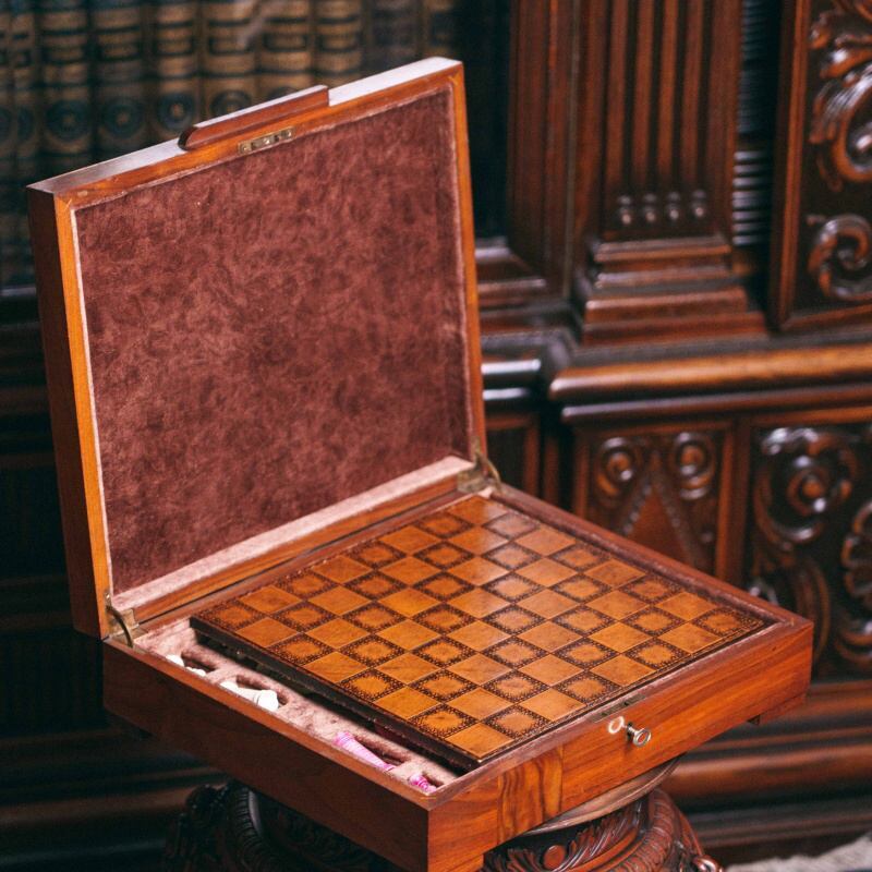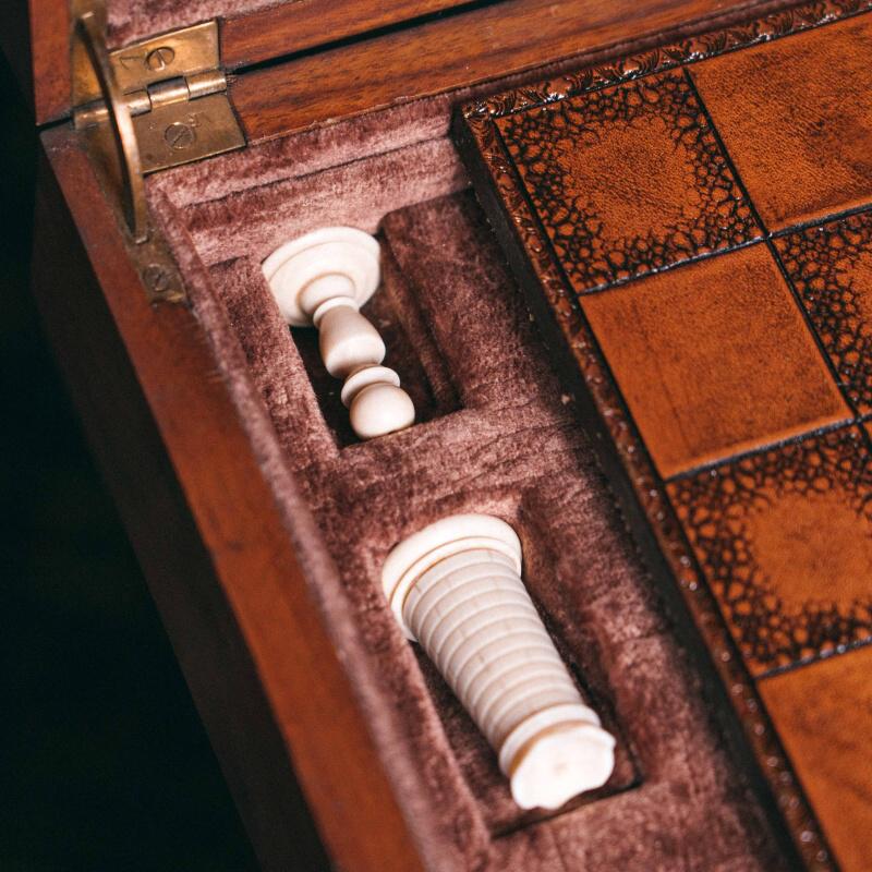Материал: Слоновая кость, ручная резьба. Доска выполнена из натуральной кожи в ручную.