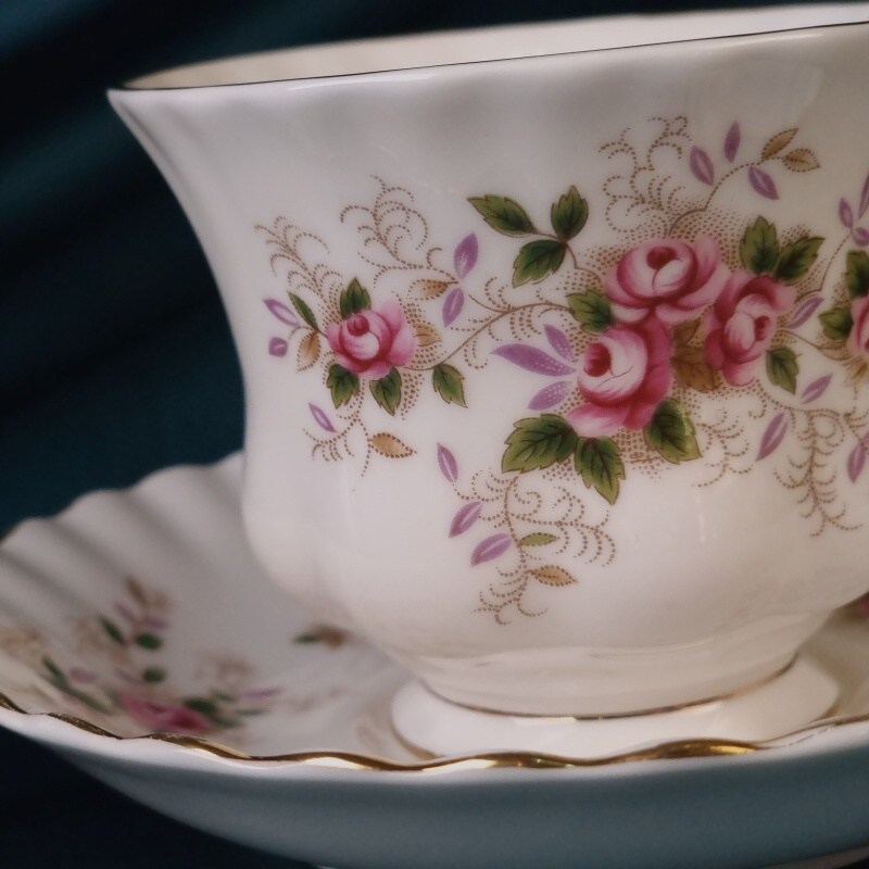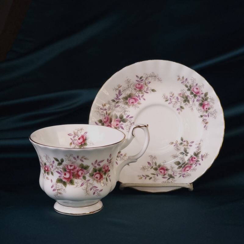 Превосходная кофейная пара «Лавандовая роза» производства фарфоровой мануфактуры Royal Albert, изготовленная в 1980-х годах. Тончайший костяной фарфор и изящный декор, подчеркнутый позолотой — признаки элегантного знаменитого английского фарфора.