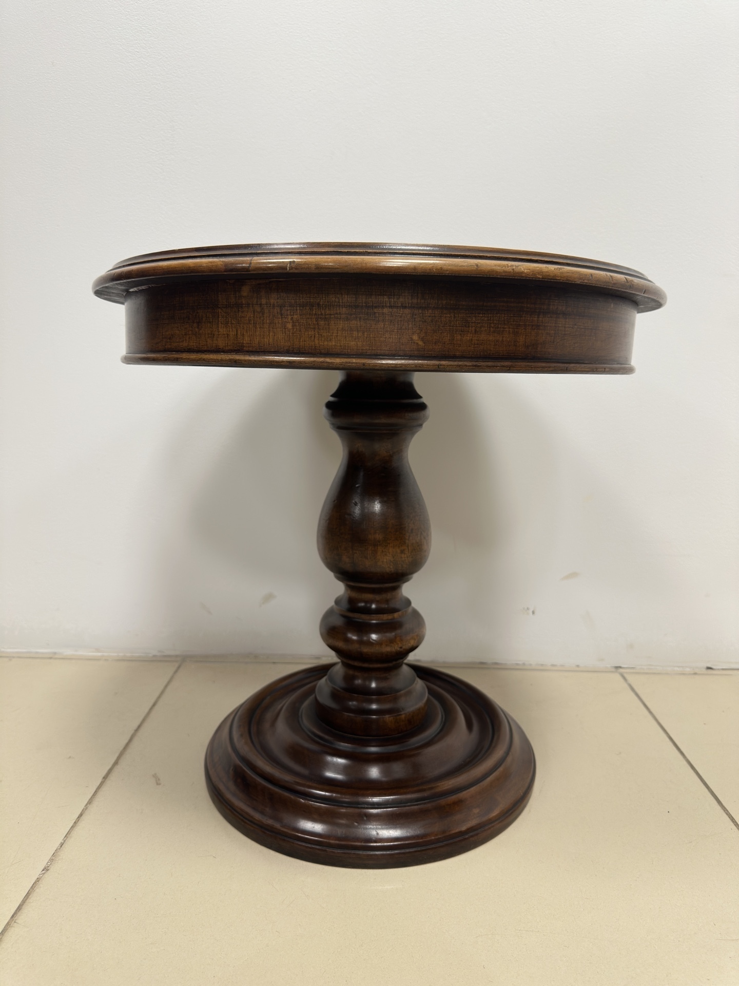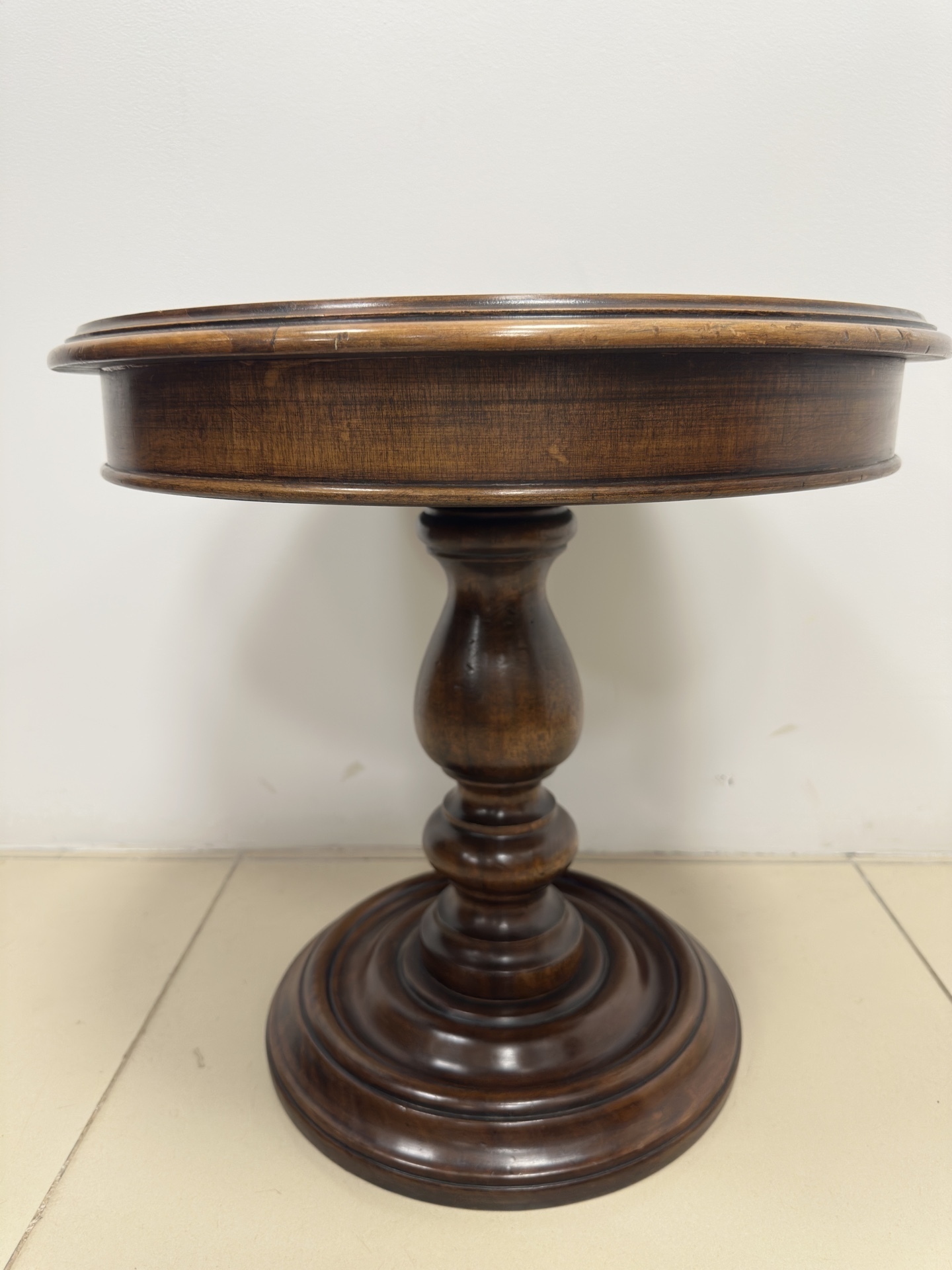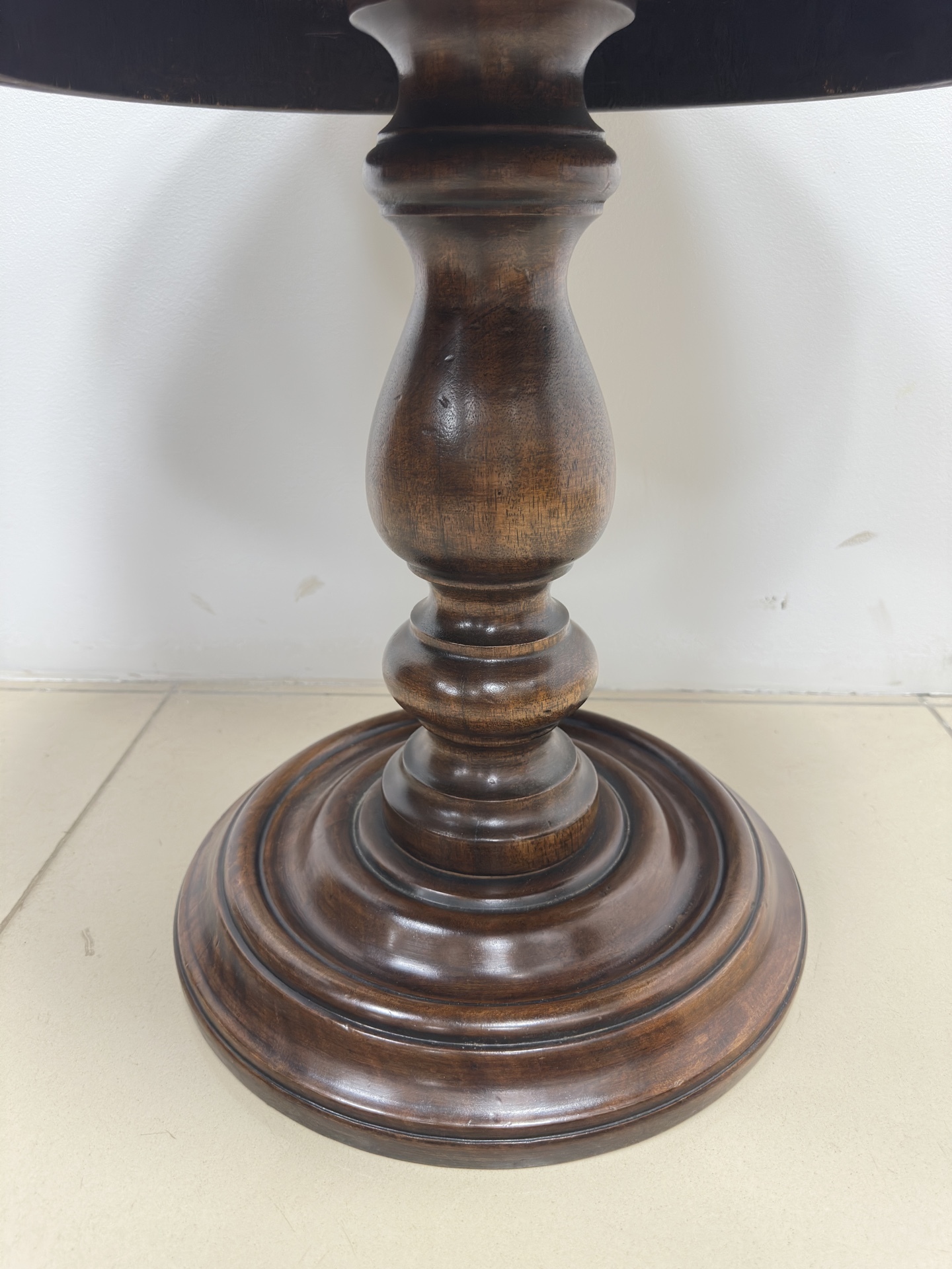 Массивная резная ножка и круглое основание обеспечивают устойчивость и подчеркивают классический стиль изделия.