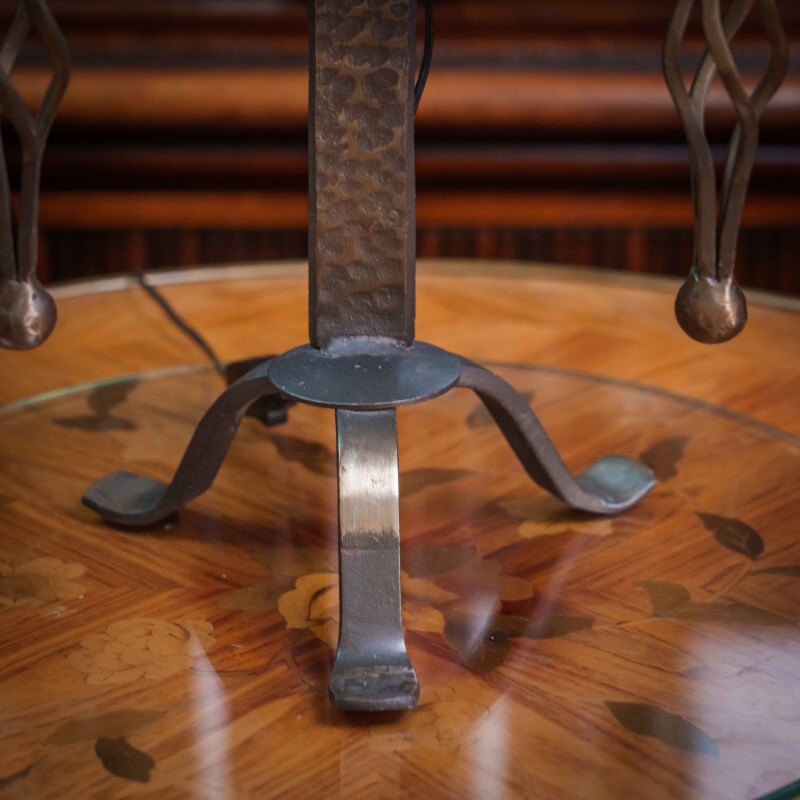 Благодаря прочной конструкции и оригинальной ковке, светильник станет ярким акцентом классического, готического или винтажного интерьера — идеально подойдёт для кабинета, гостиной или библиотеки.