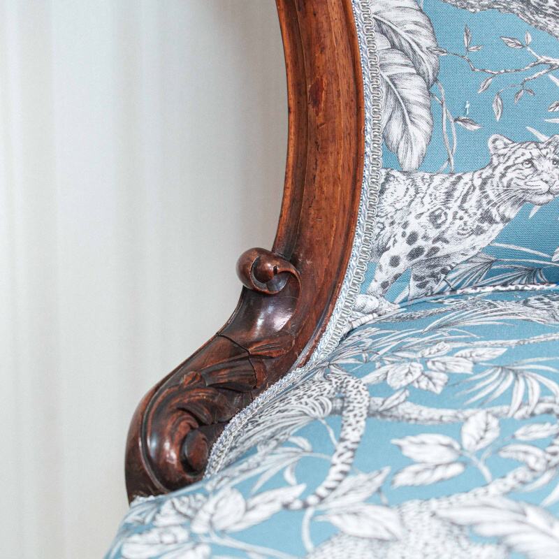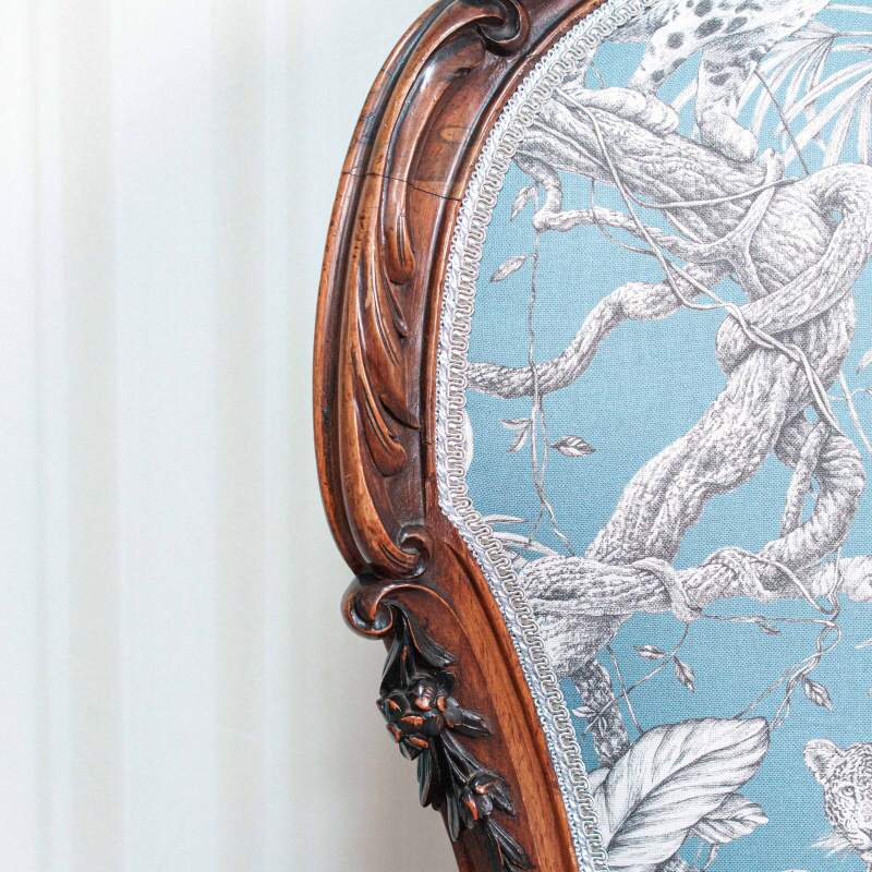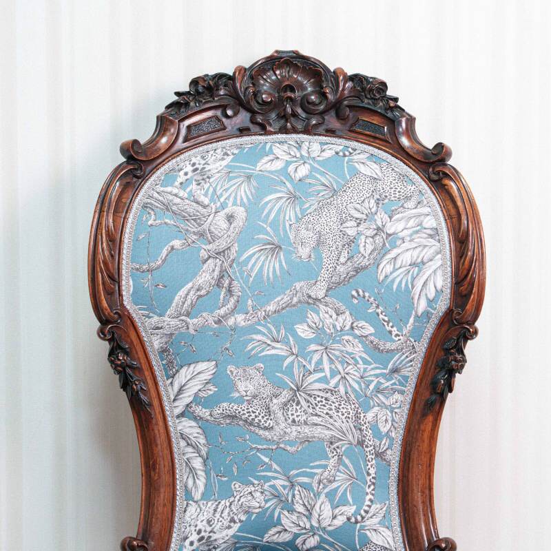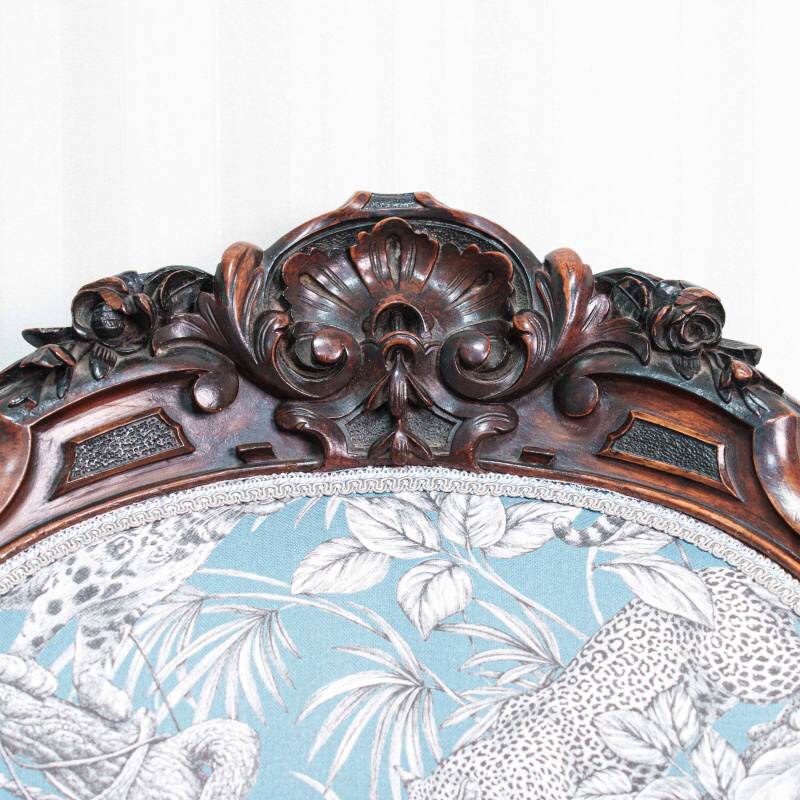 Материал: Дерево (палисандр), ручная резьба. Итальянская ткань с леопардами.
