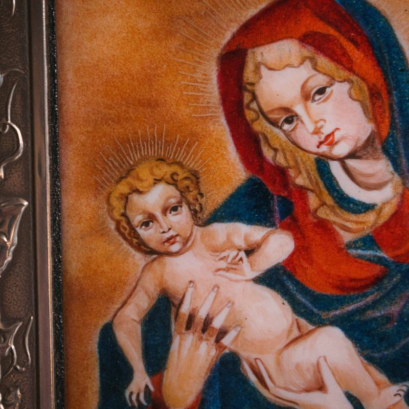 Лицо Богоматери исполнено с душевной мягкостью и лёгкой скорбностью, что характерно для вариантов иконографии «Мадонны Святого Вита».