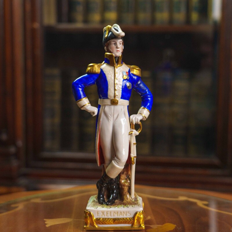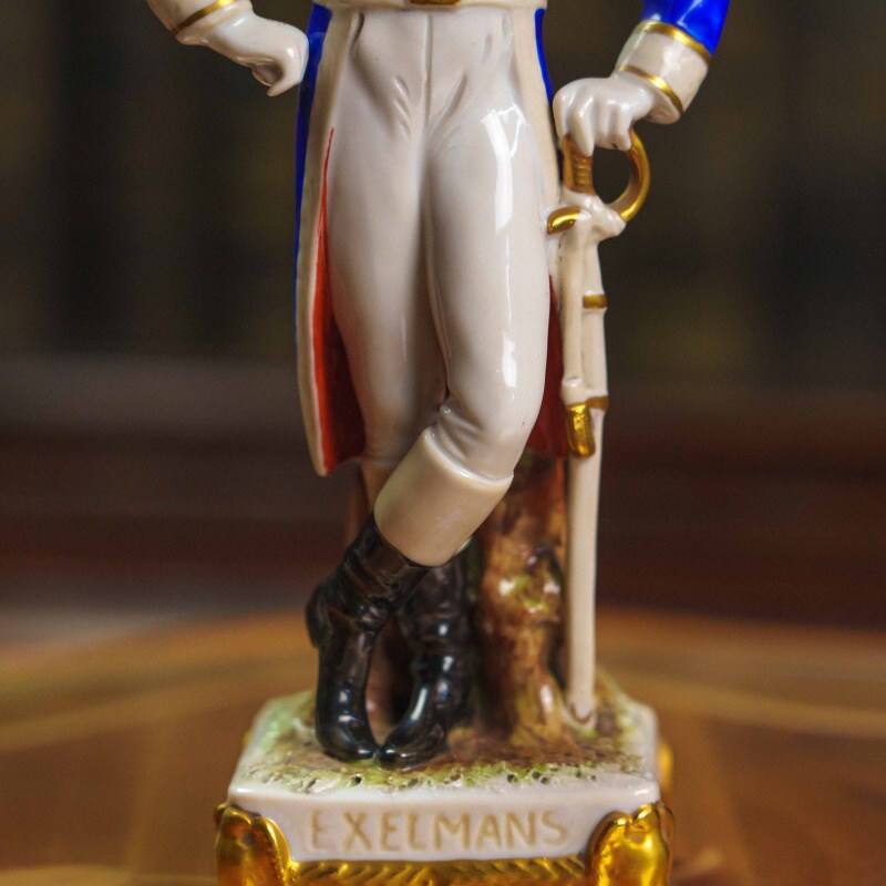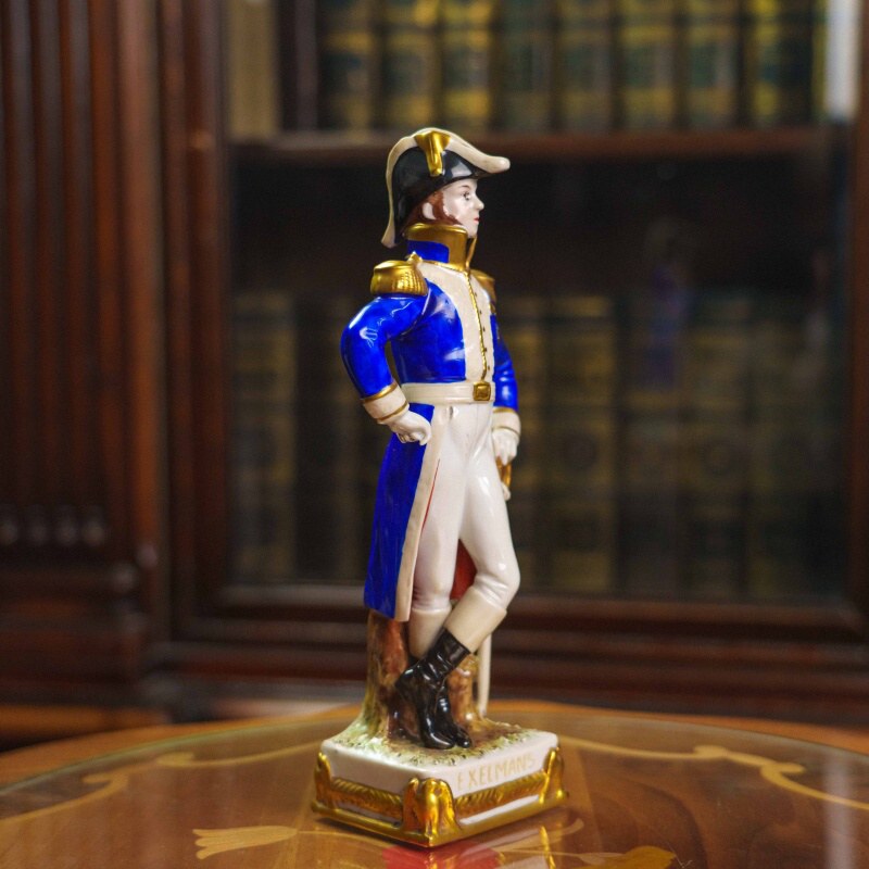 Изящная фарфоровая фигурка изображает генерала и маршала Империи Реми Жозефа Эксельмана — одного из блестящих кавалерийских командиров наполеоновской эпохи, известного своим безупречным мастерством и личной храбростью.