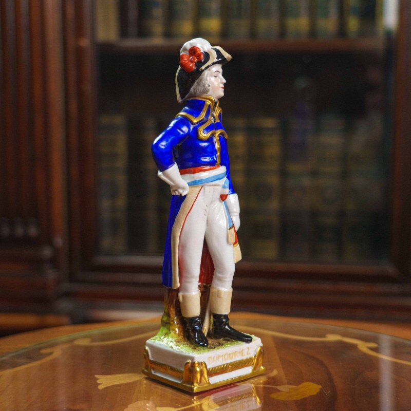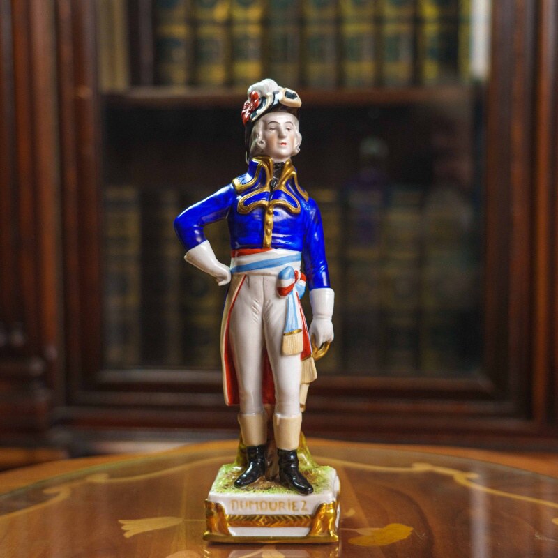 Она изображает генерала Шарля Франсуа Дюмурье — одного из ведущих военачальников эпохи Французской революции. Образ генерала передан в парадном мундире конца XVIII века: ярко-синий доломан с золотыми петлицами, белые бриджи, высокие сапоги и трёхцветный кушак.
