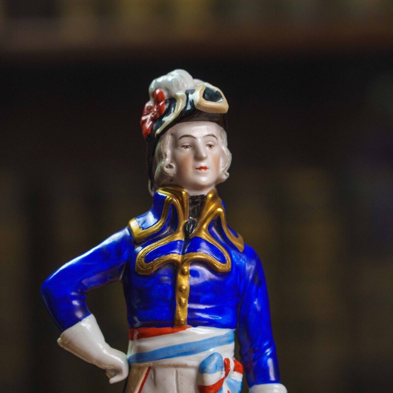 Фигурка создана мануфактурой Scheibe-Alsbach, известной своими детализированными историческими персонажами и высоким уровнем ручной росписи.