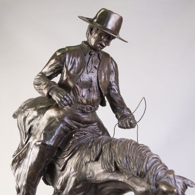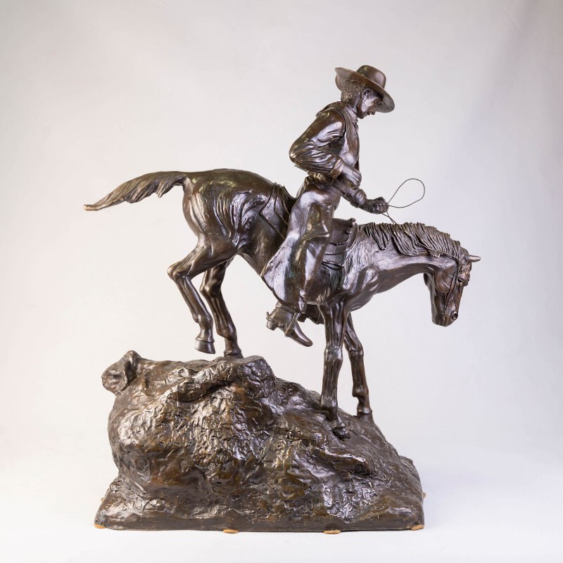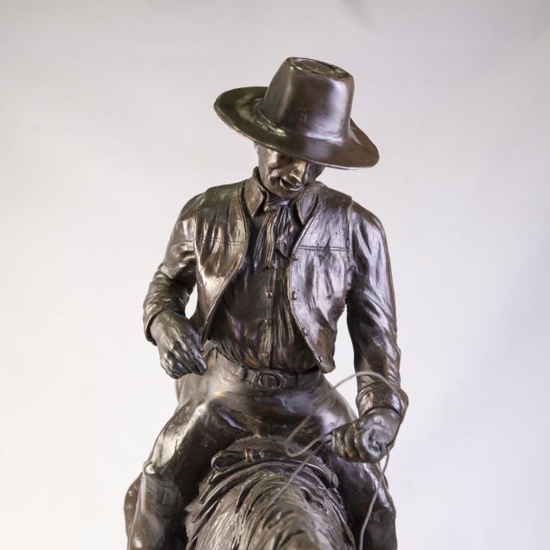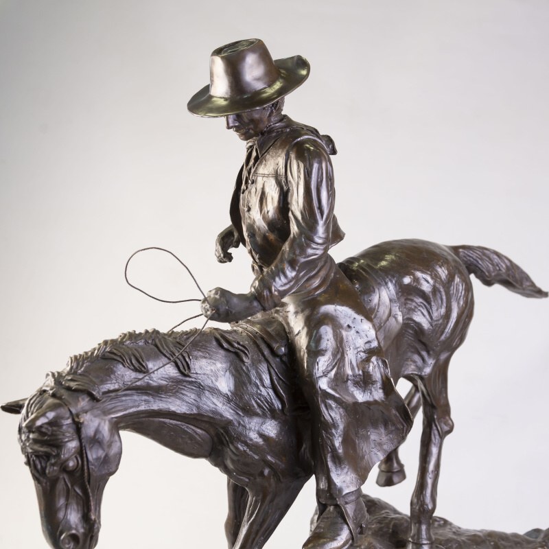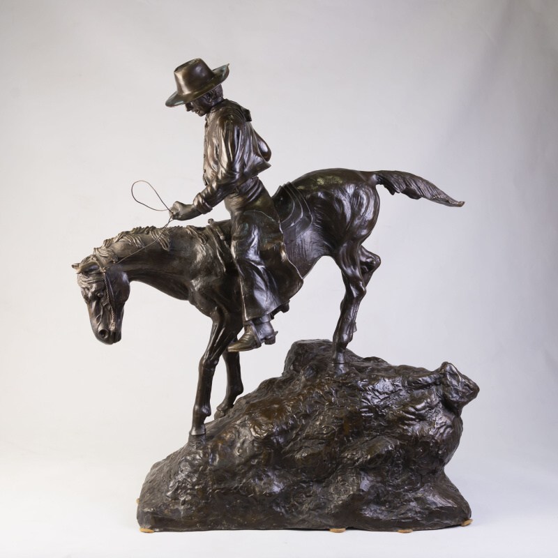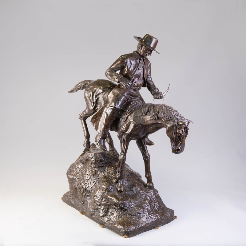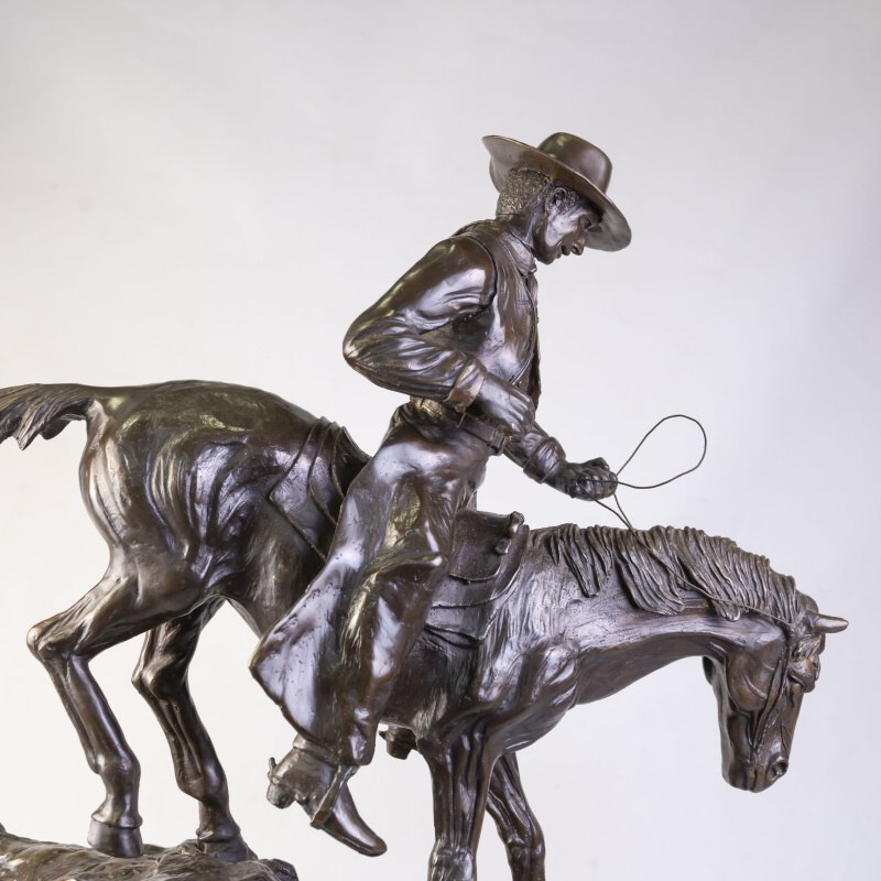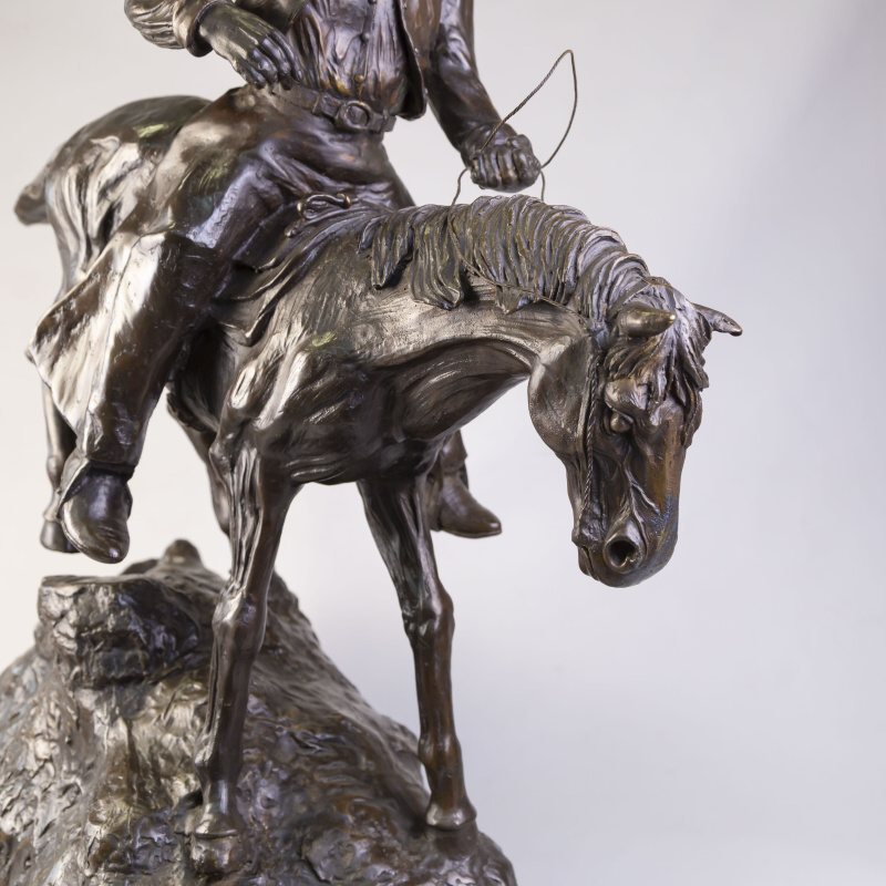 Кабинетная скульптура «Ковбой на коне» изготовлена по мотивам известного американского скульптора Фредерика Ремингтона. Фредерик Ремингтон (1861-1909) — американский скульптор, художник, иллюстратор и писатель, известный своими произведениями на тему Дикого Запада.