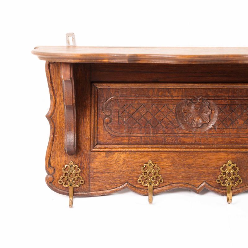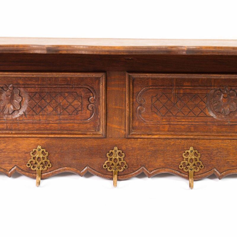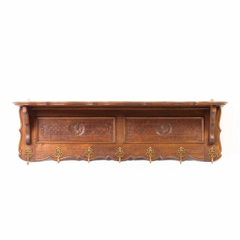 Материал: Натуральное дерево, металл. Декор: резные панели, фигурный край, декоративные крючки.