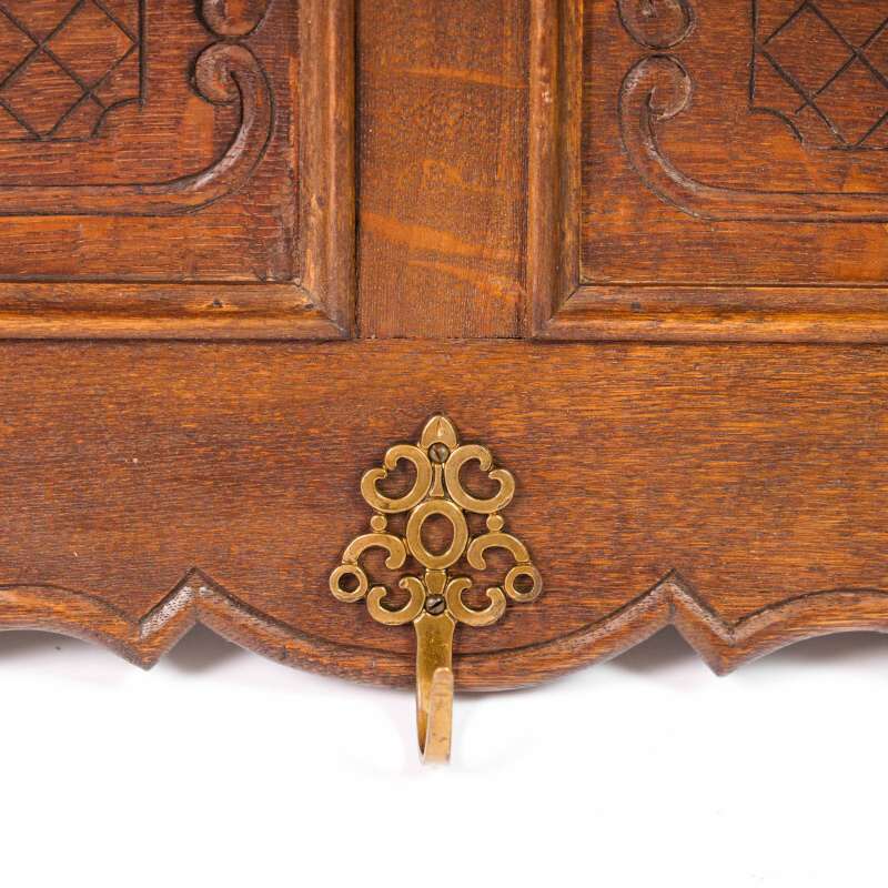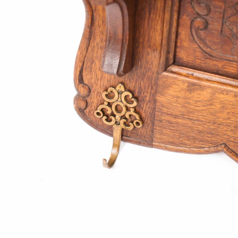 Вешалка оснащена 7 крючками с изящным орнаментом, которые гармонично сочетаются с деревянной основой и подчёркивают винтажный характер изделия.