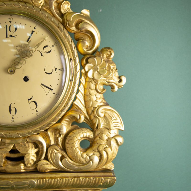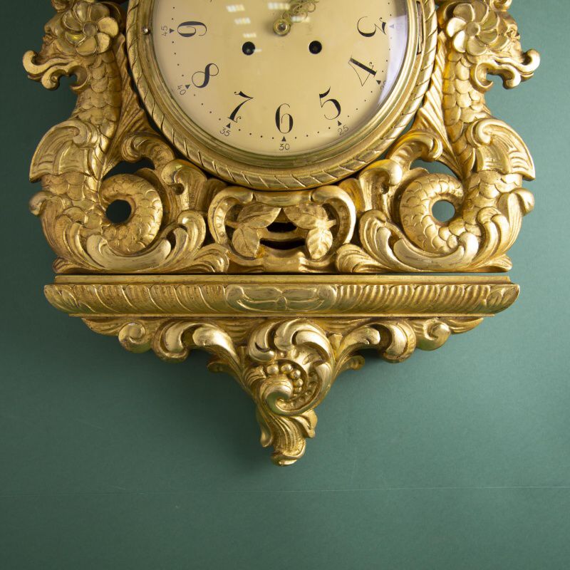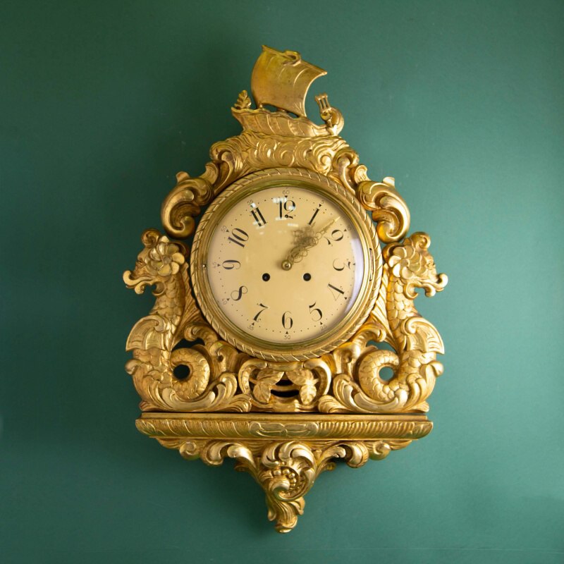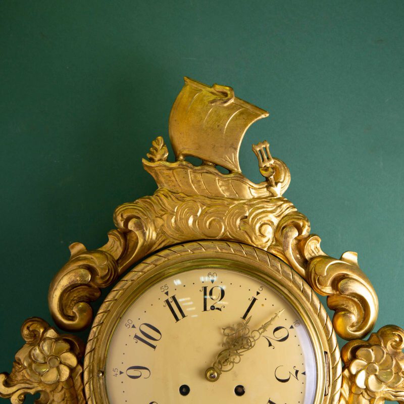 Декоративное оформление часов представлено в виде гармоничного сочетания растительных элементов с фигурами морских драконов, расположенных по бокам от механизма, и символическим изображением корабля Арго, украшающего верхнюю часть часов. Арго — знаменитый корабль Ясона, символ путешествия, преодоление массы опасностей, победы над иллюзиями, ощущение неведомой и далекой цели.