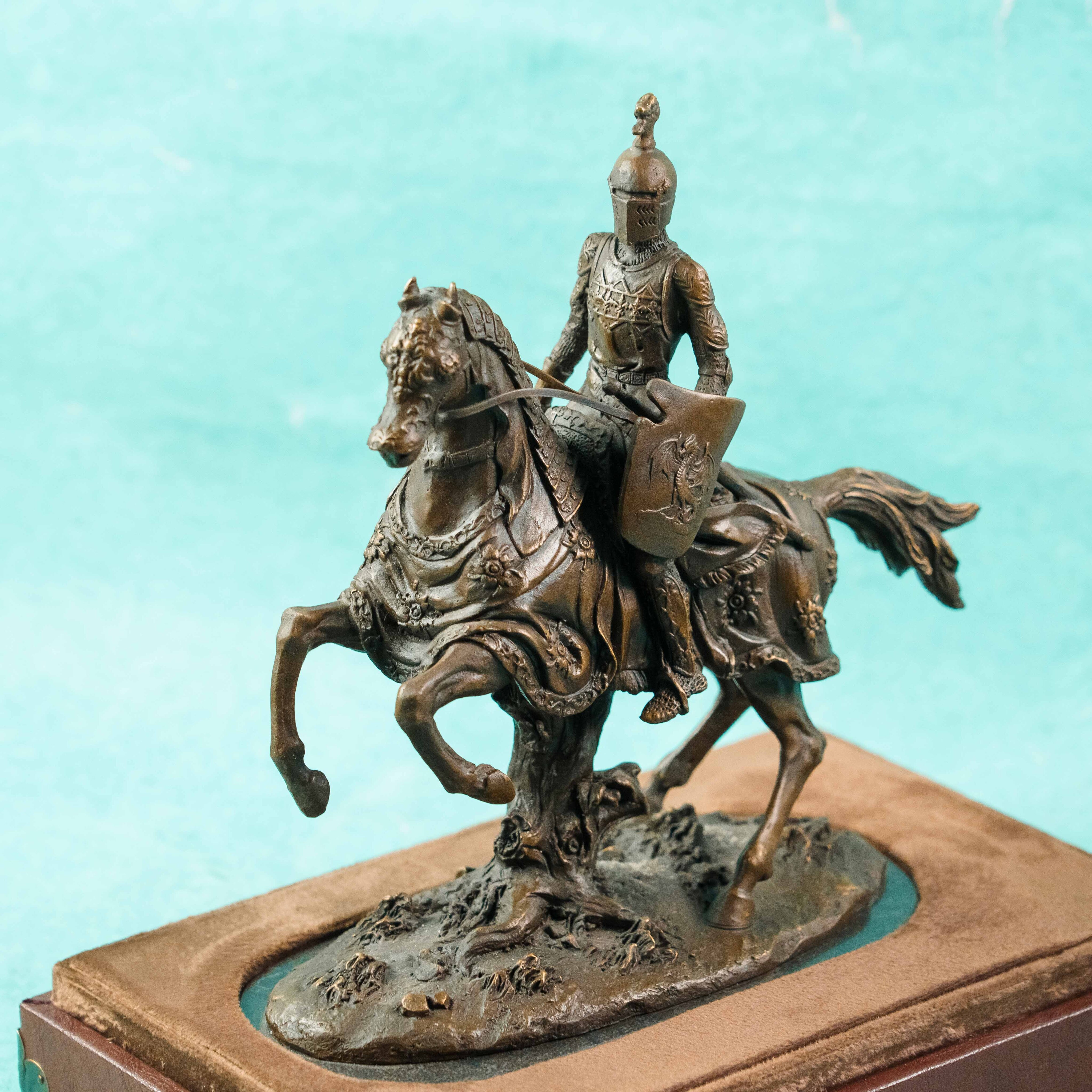 Настольная кабинетная скульптура «Конный рыцарь с копьем»