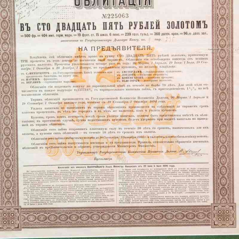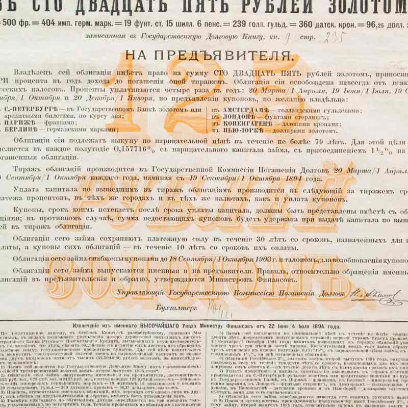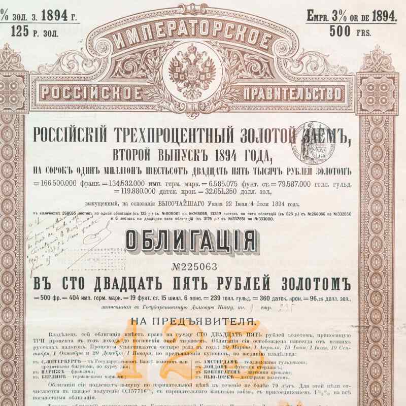 Этот финансовый документ был выпущен Императорским Российским правительством в период правления Александра III для привлечения капитала, в том числе иностранного.
