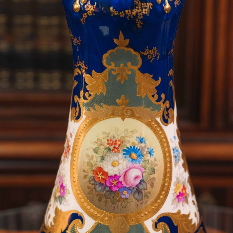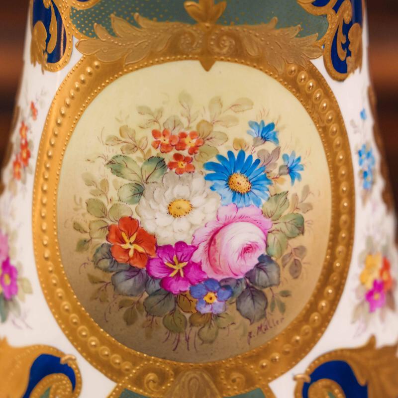 Ваза изготовлена на немецкой мануфактуре Franz Anton Mehlem (Royal Bonn), основанной в Бонне в XIX веке.