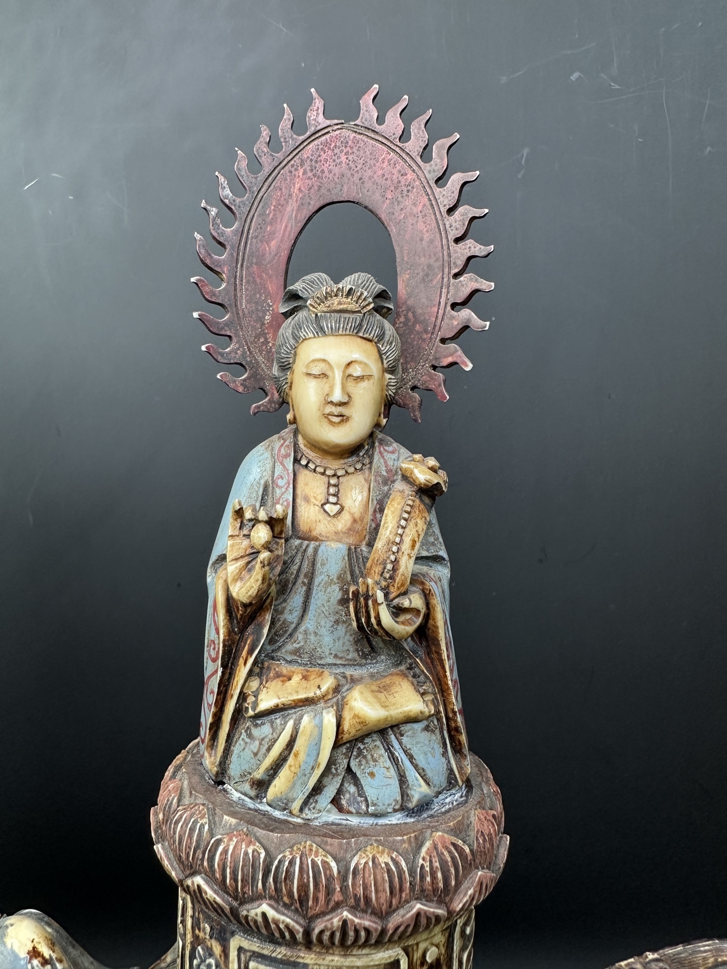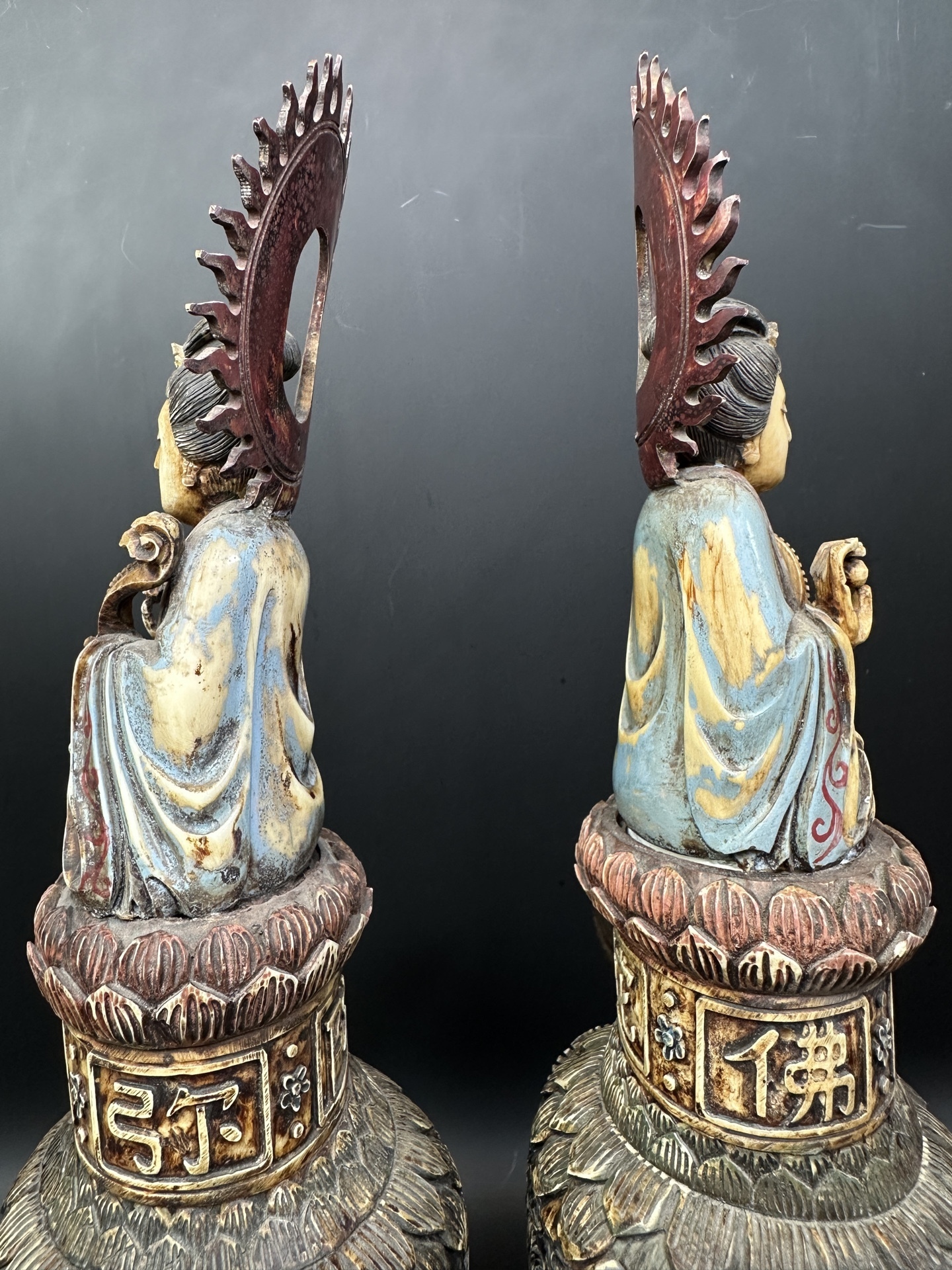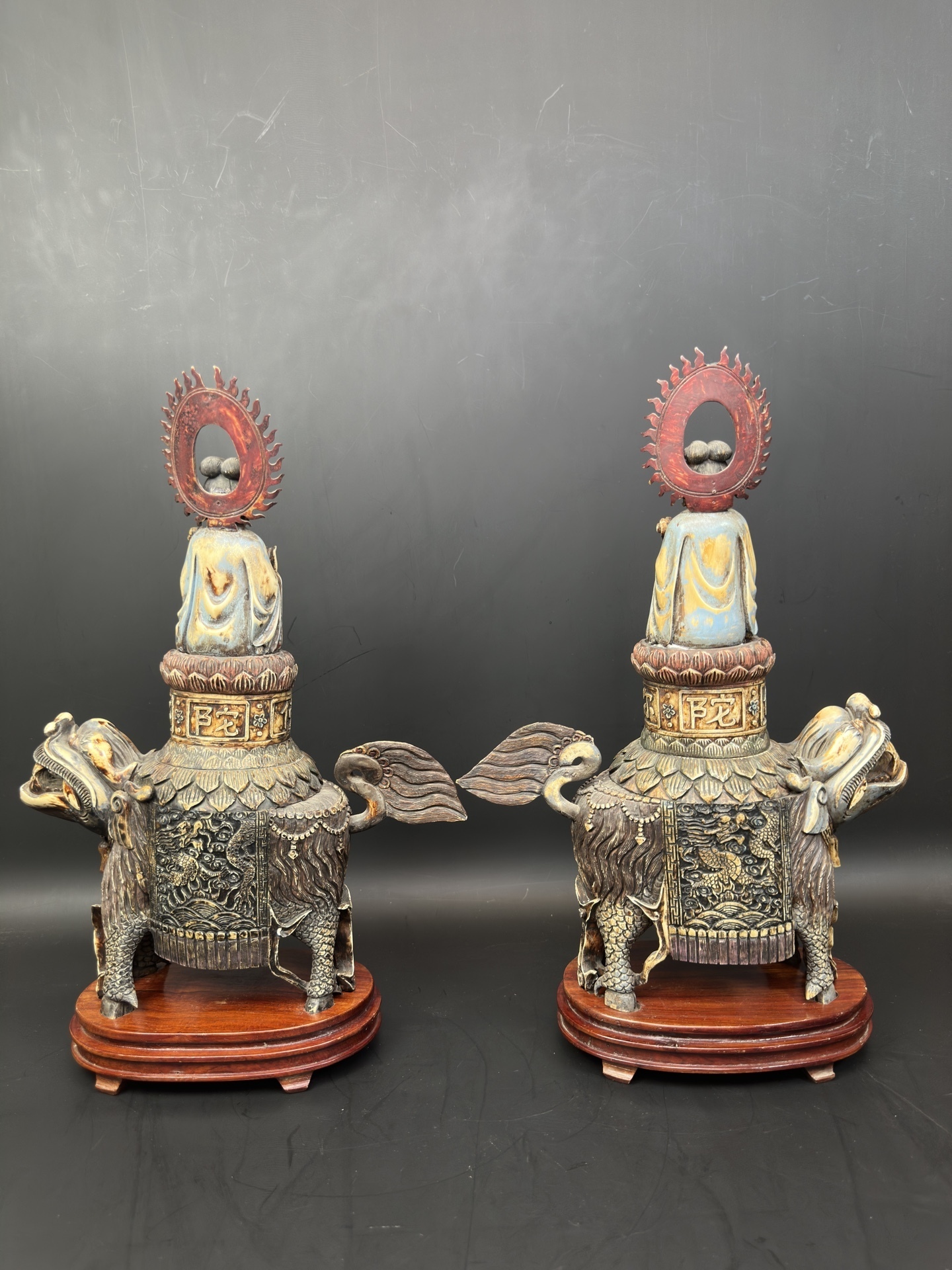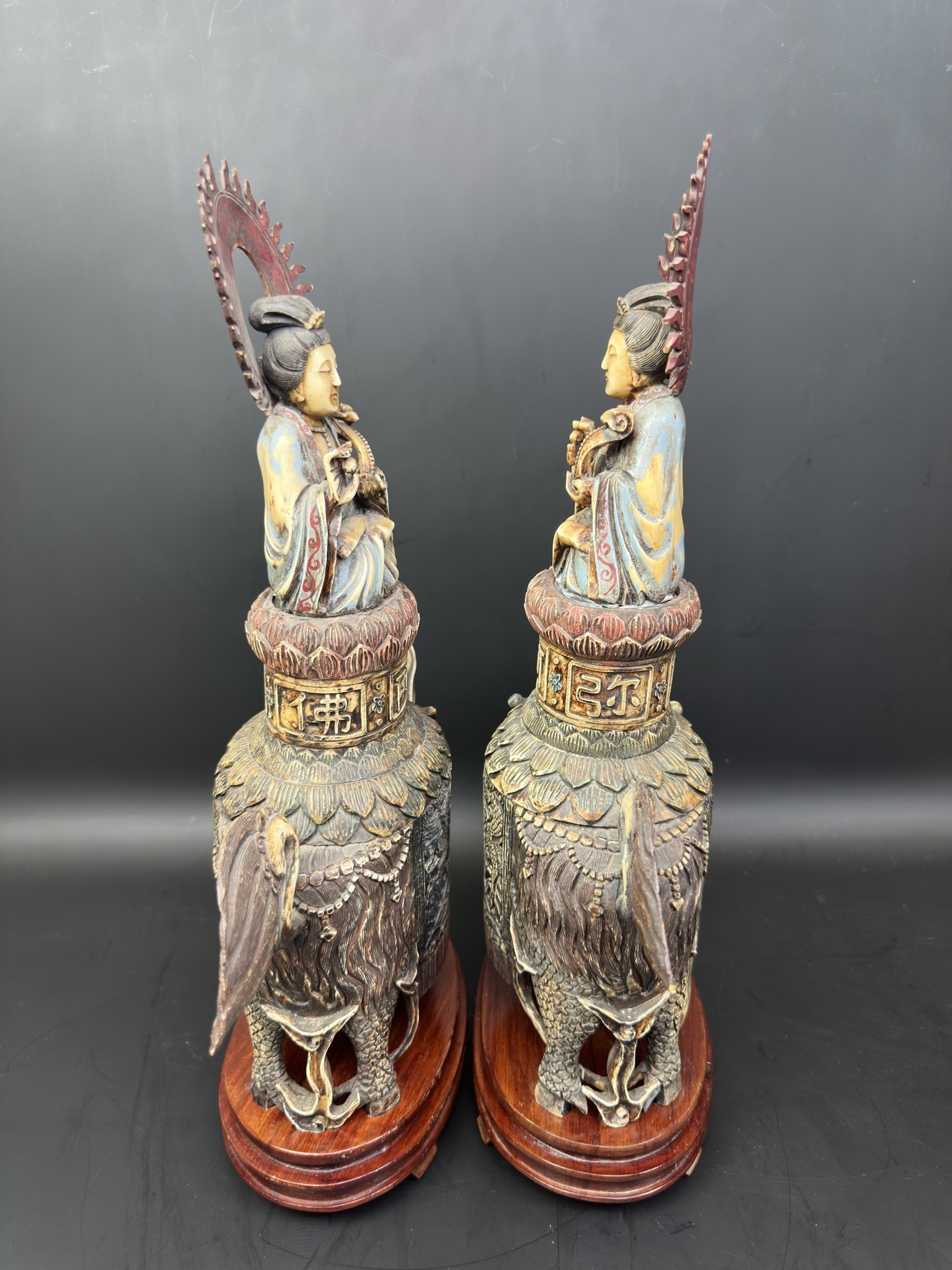 Парные фигуры из кости — Гуань Инь верхом на Цилинь