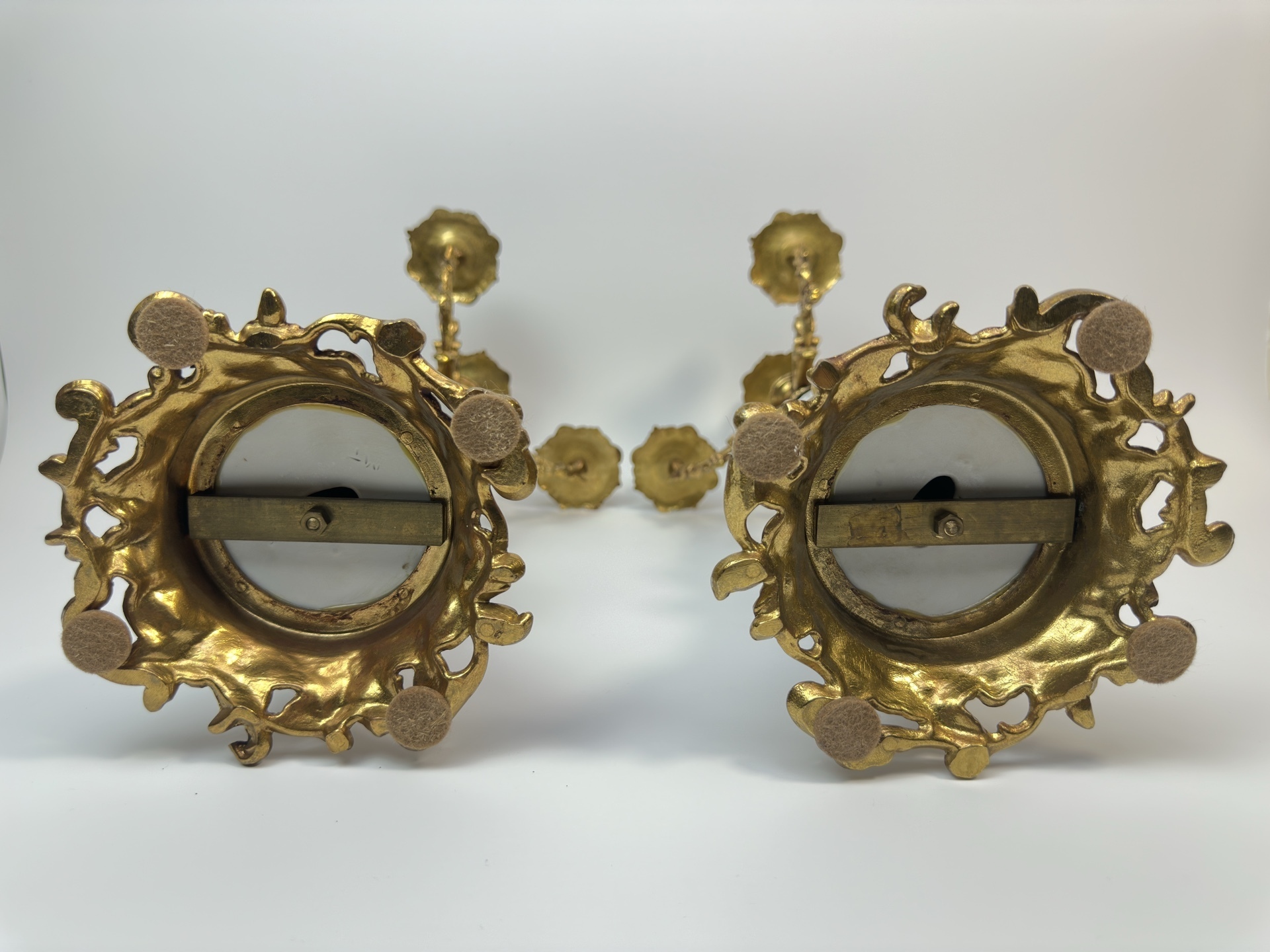 Каждый канделябр имеет пять рожков для свечей, поддерживаемых изящными бронзовыми элементами с растительными мотивами.