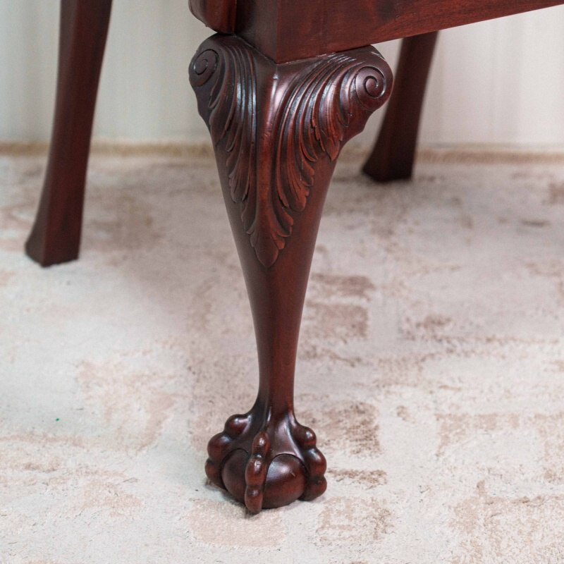 Особую историческую ценность предметам придают передние ножки формы кабриоль, верхняя часть которых (колено) богато украшена рельефной резьбой в виде акантовых листьев, а завершаются они классическим элементом — лапой, сжимающей шар (ball-and-claw foot).