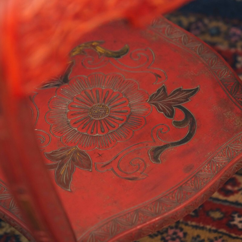 Подставки обладают глубоким, насыщенным оттенком «киновари» — классического для Китая красного цвета, который символизирует удачу, процветание и жизненную энергию. Многослойное лаковое покрытие придает предметам мягкий матовый блеск и приятную на ощупь фактуру, характерную для старинных изделий.