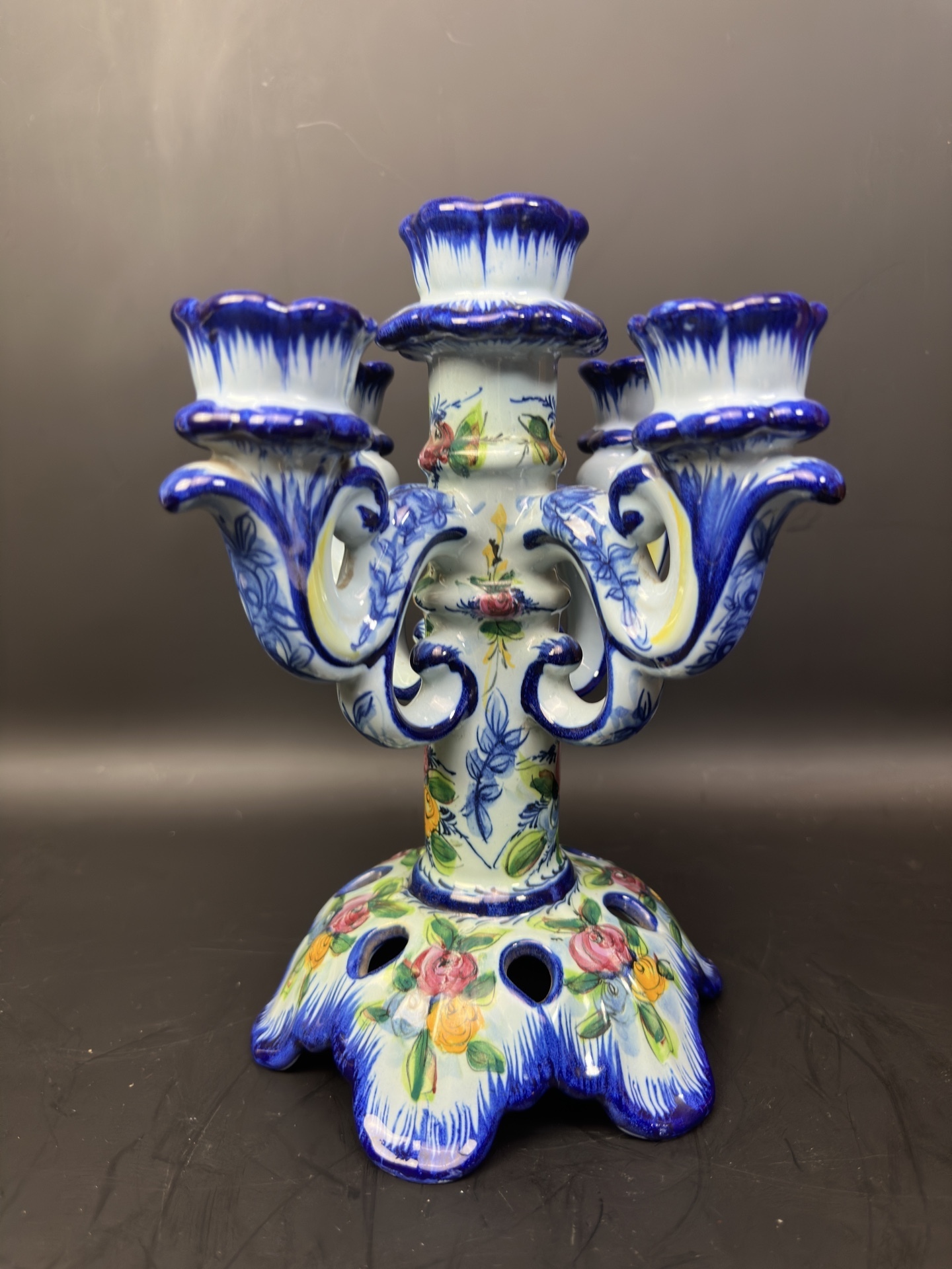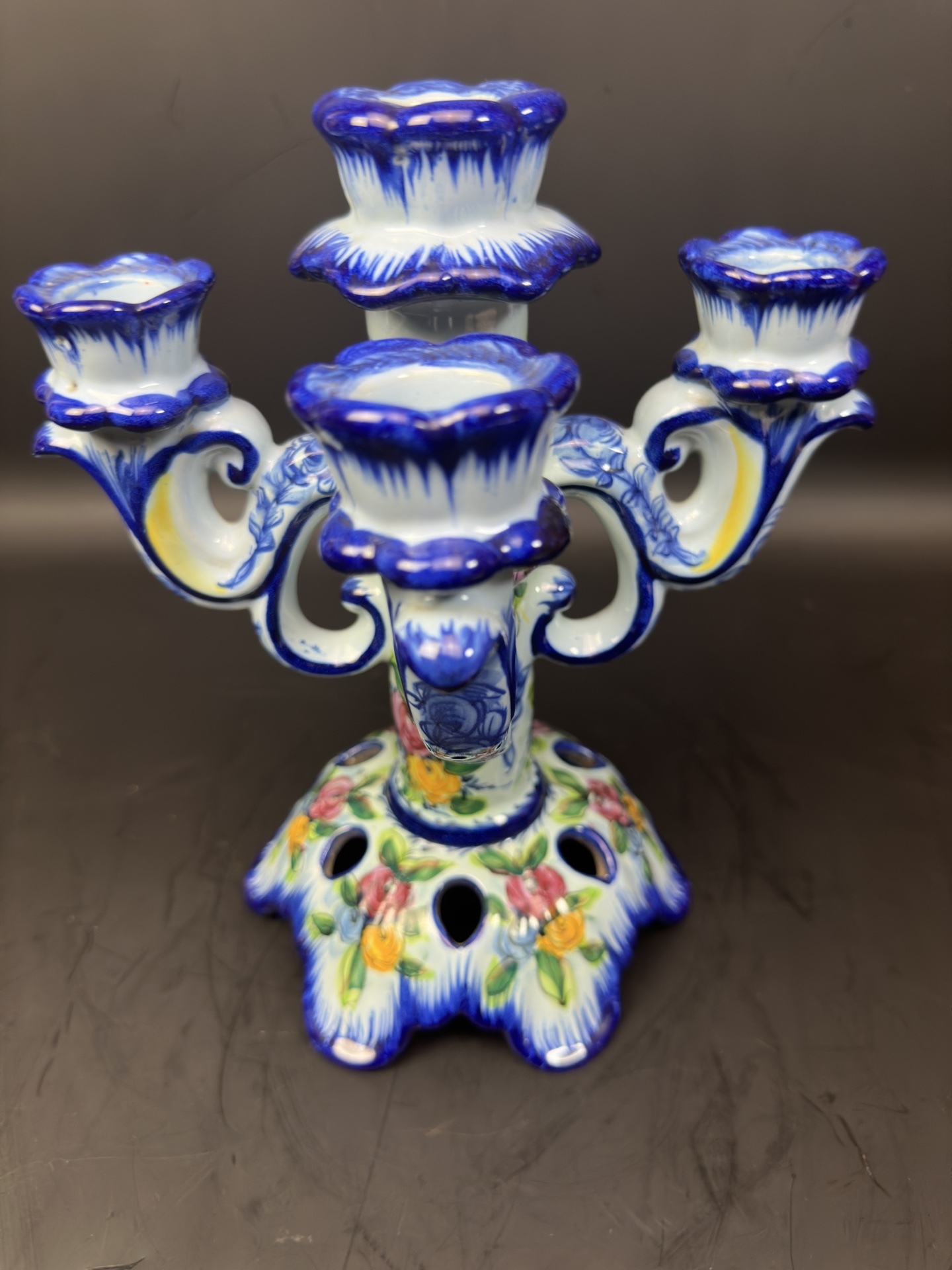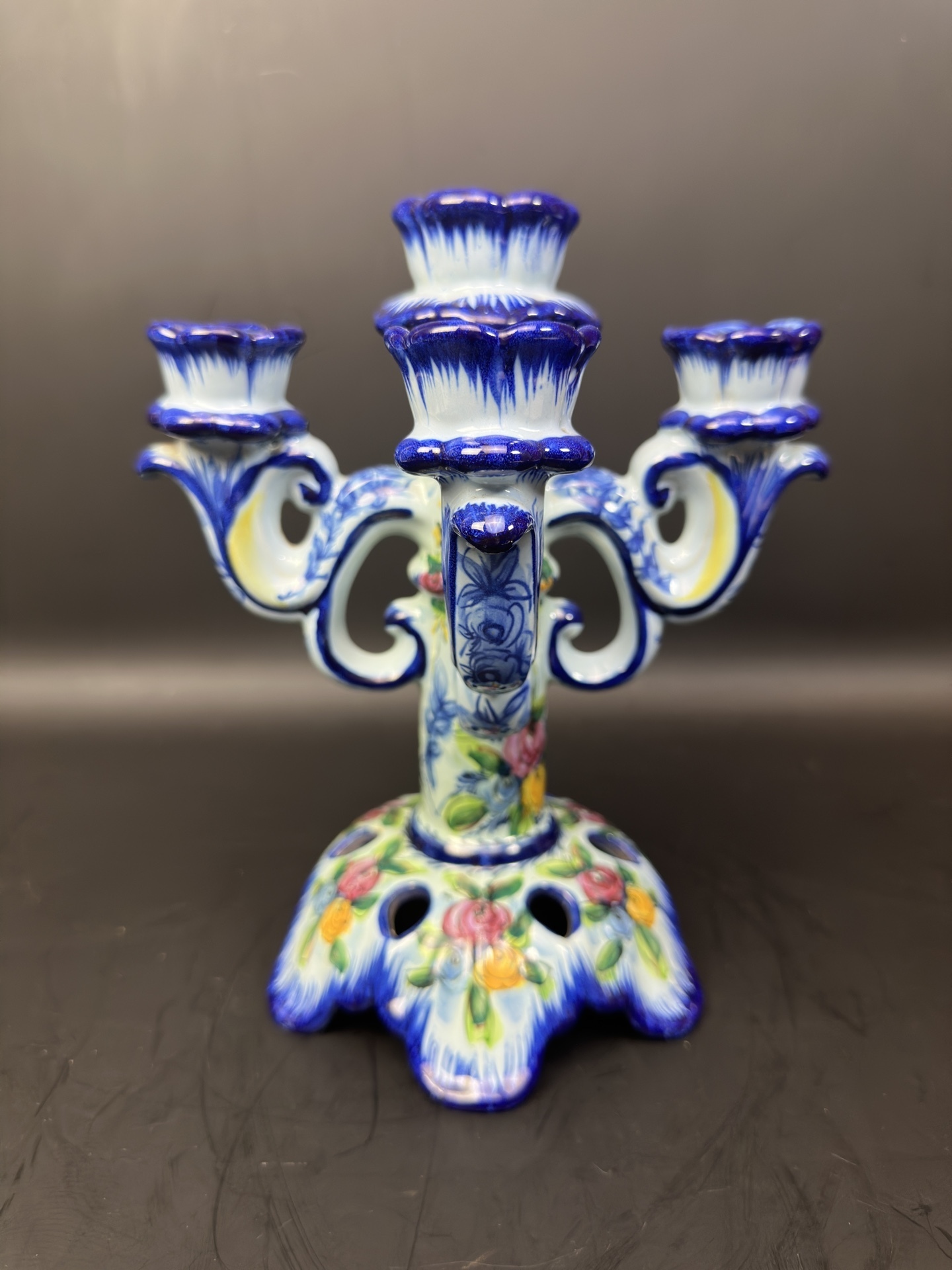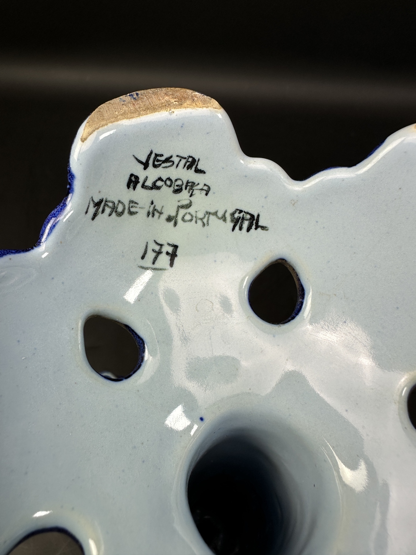 Подсвечник, является изделием из фаянса португальской мануфактуры Alcobaça, известной своими декоративными элементами и ручной росписью.