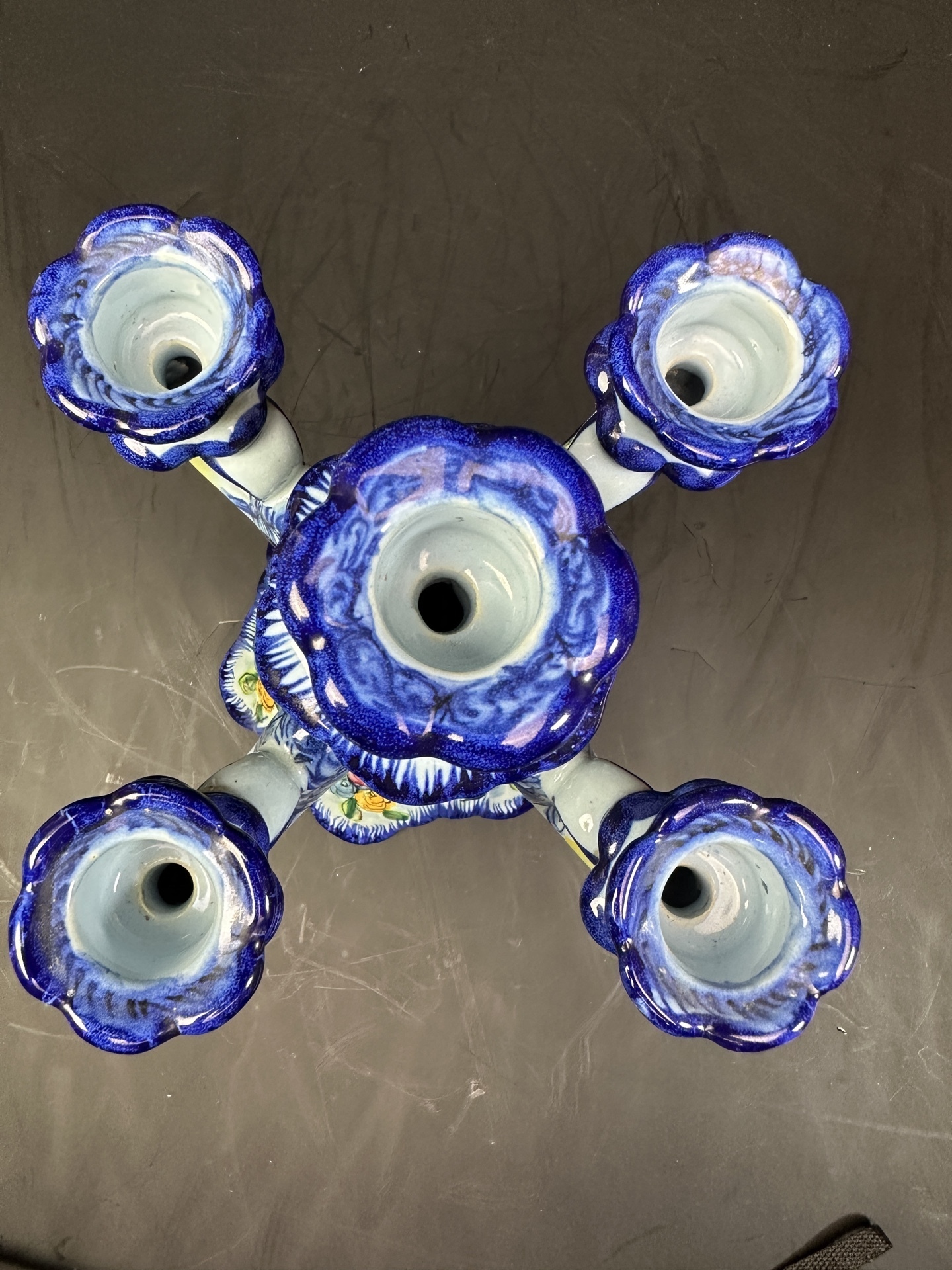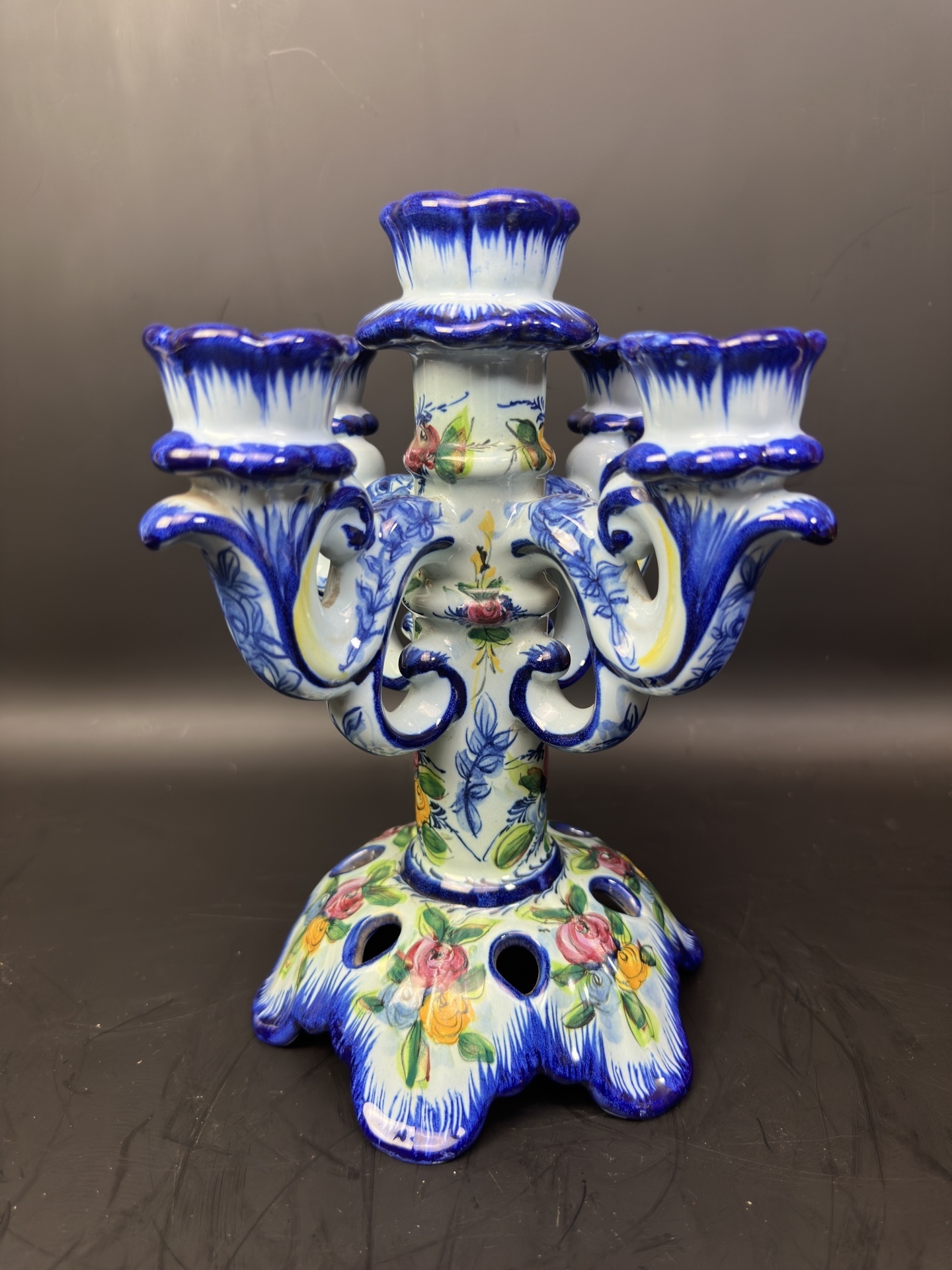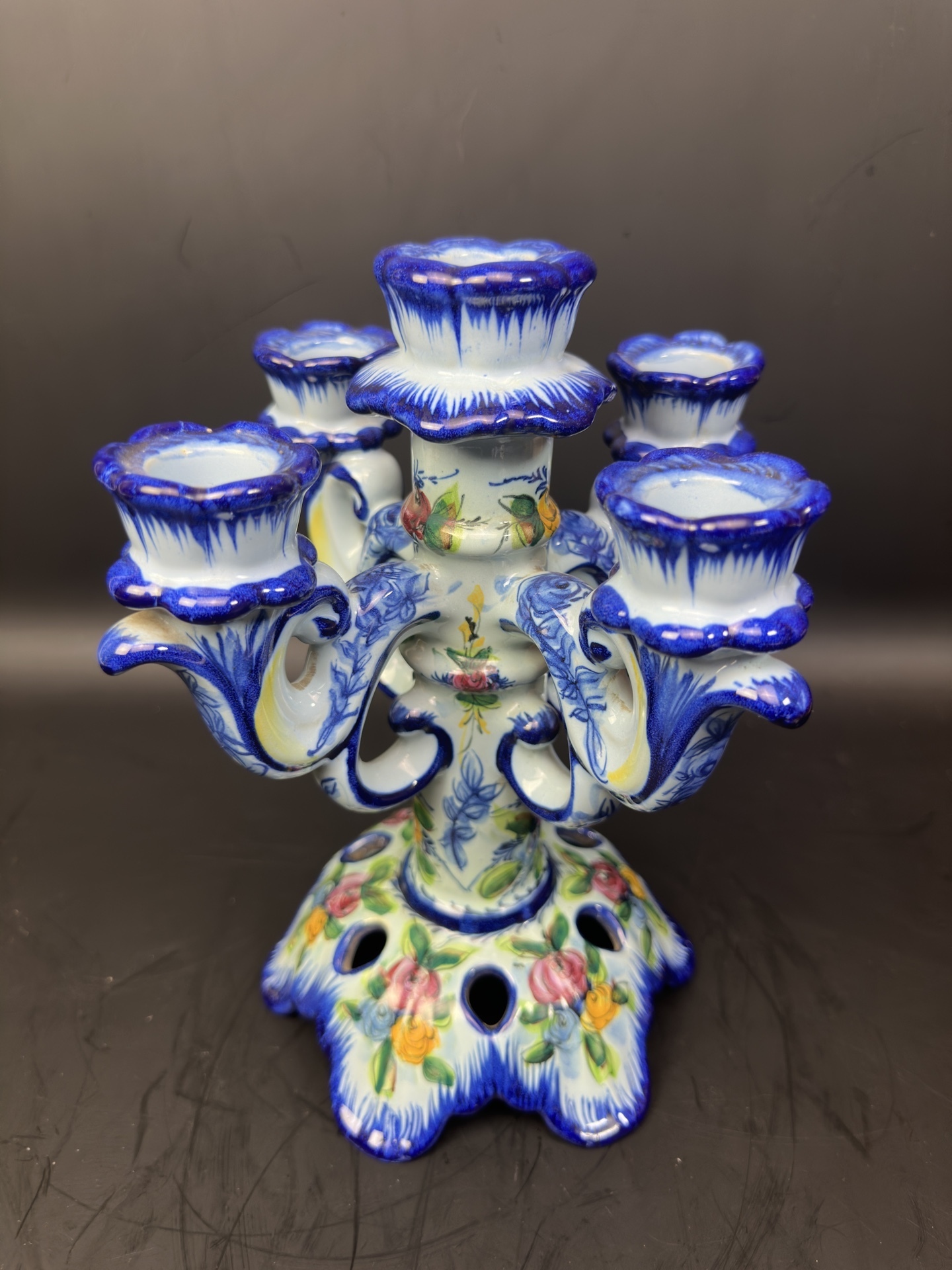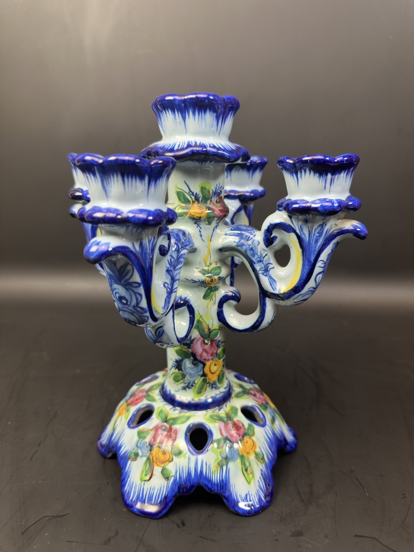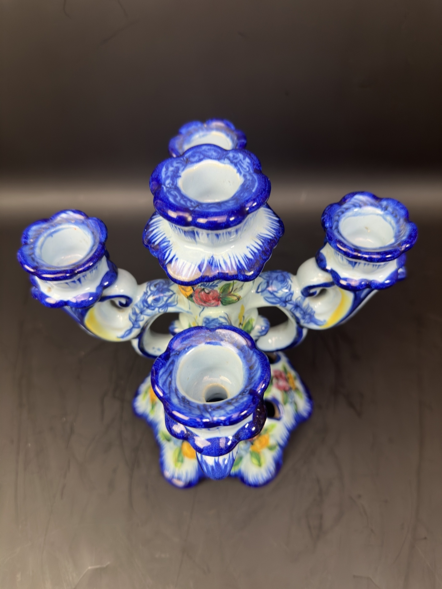 Подсвечник, является изделием из фаянса португальской мануфактуры Alcobaça, известной своими декоративными элементами и ручной росписью.