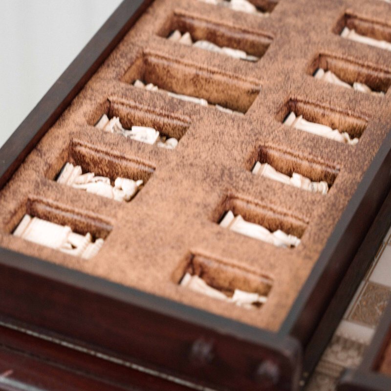 Шахматный стол с комплектом шахмат из слоновой кости