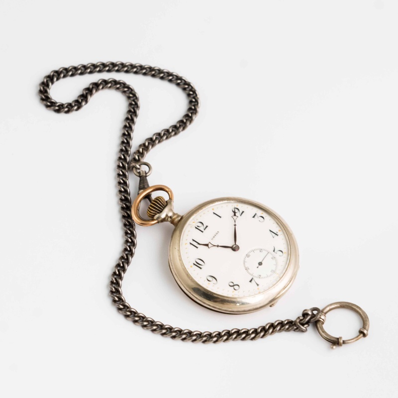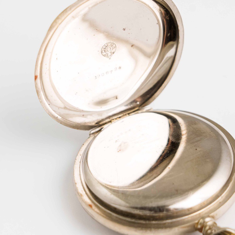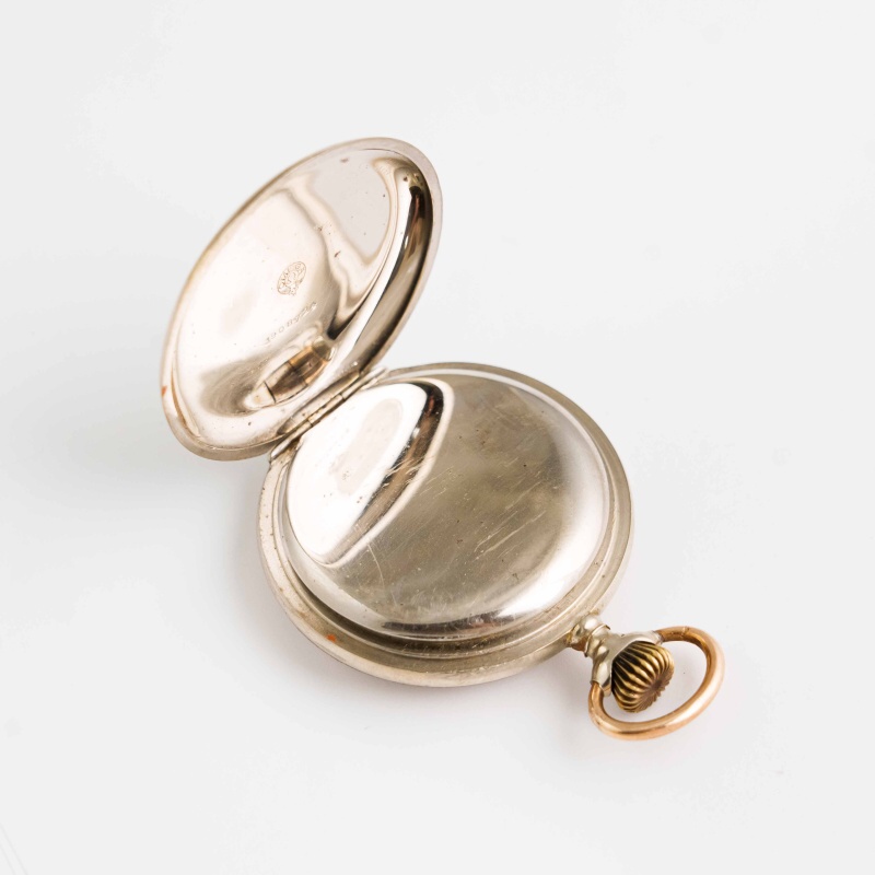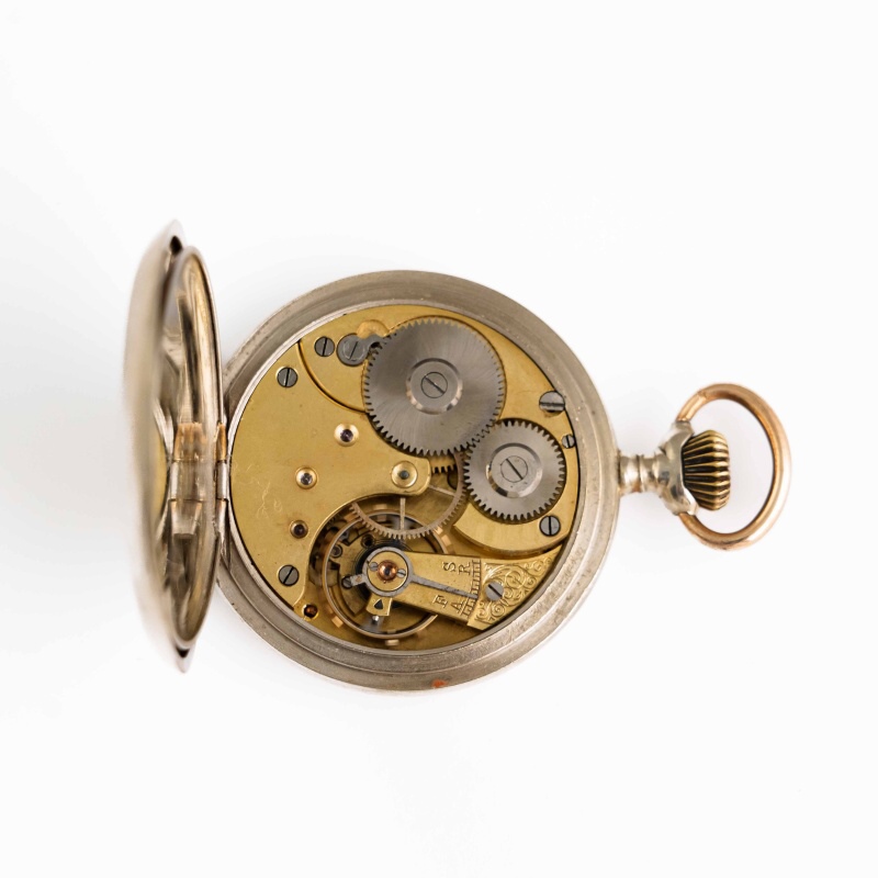 Старинные карманные часы, в корпусе из стали, никелированный корпус. Корпус не поврежден, крышки работают исправно. Красивый эмалевый циферблат, большие выделенные арабские черные цифры, малая секундная стрелка в положении «6 часов». Завод и перевод стрелок — заводной головкой (Коронкой). Красивый анкерный механизм.