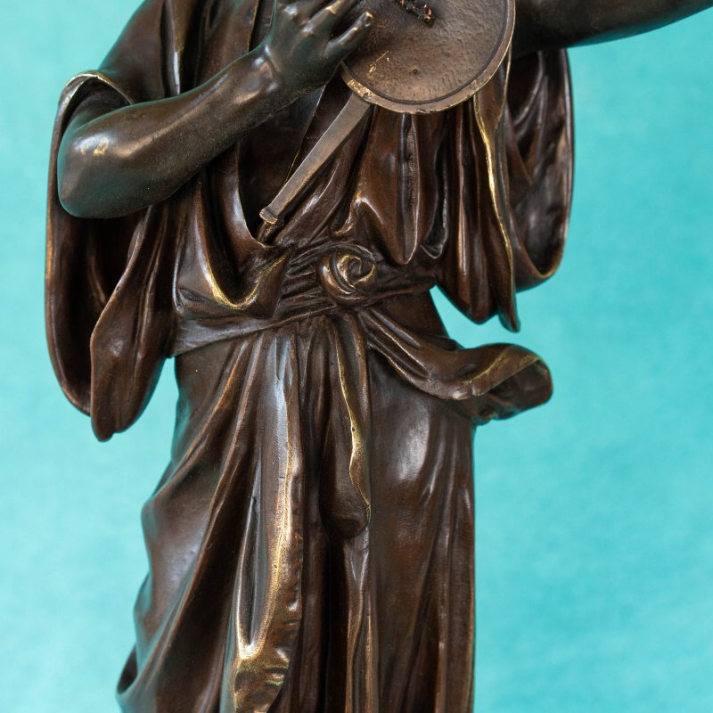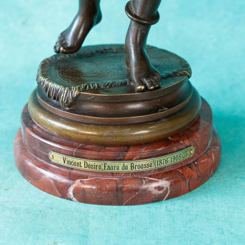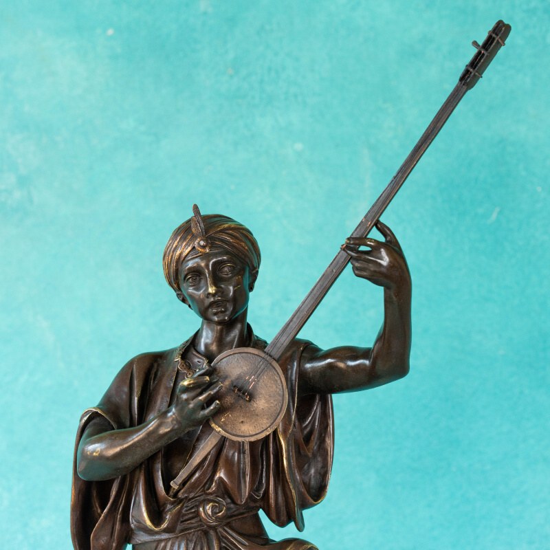 Скульптура известного французского скульптора Винсента Дезире Фор де Брусс, выполненная из патинированной бронзы во Франции на рубеже XIX-XX веков. Скульптура представлена в виде юноши, в восточных одеждах, с чалмой на голове, который играет на музыкальном инструменте — рубаб. На основании скульптуры имеется авторская подпись — Faure de Brousse.