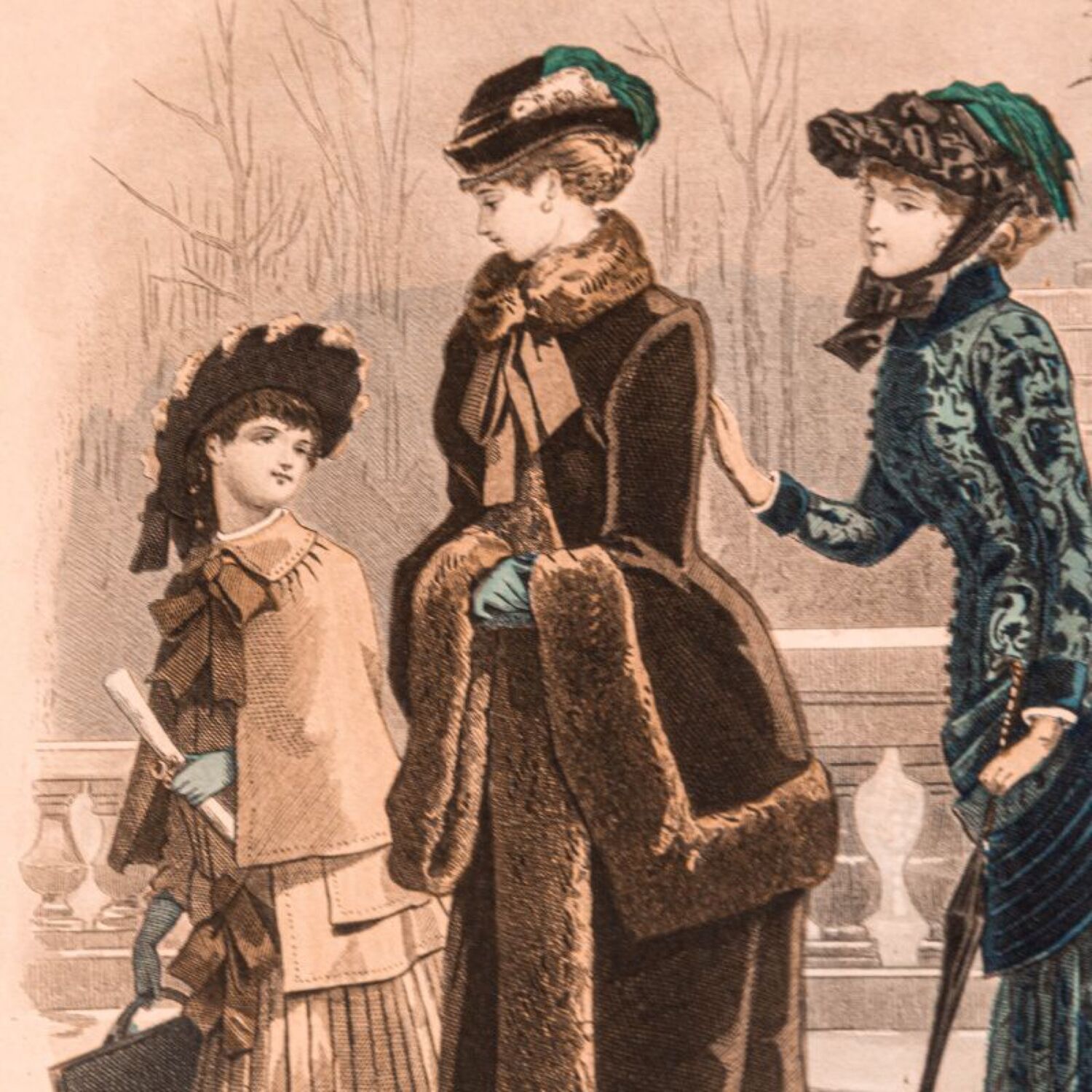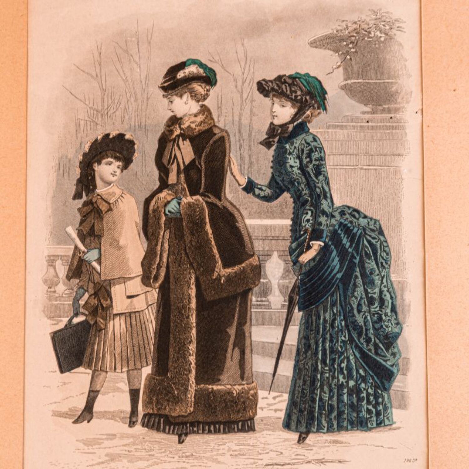 Старинная гравюра «Парижская мода»