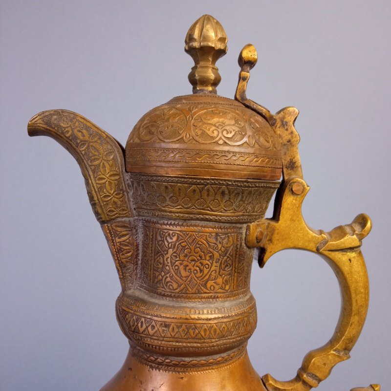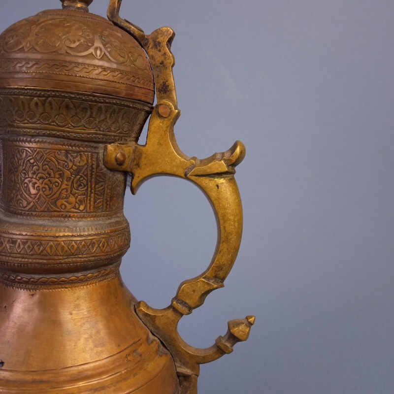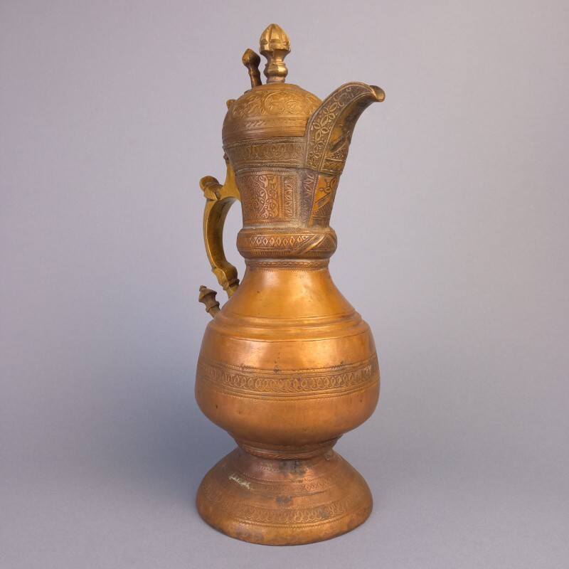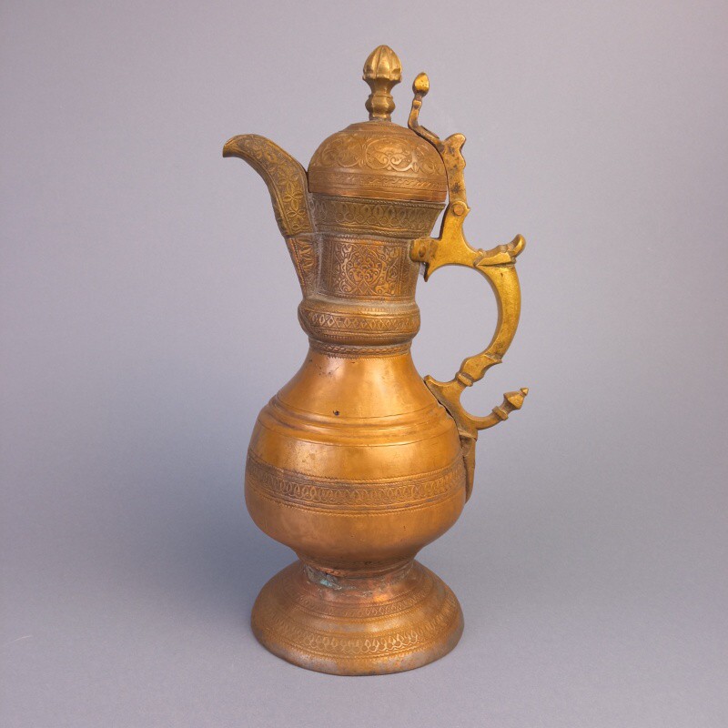 Традиционный азиатский предмет богатой обстановки дома или юрты. изготовлен мастером, из бронзы путем ковки, лужения и чеканки. По типу сосуд содержит элементы традиционного центральноазиатского кумгана (каз. кұман, құмған). Высокое мастерство отделки предмета говорит о высоком статусе владельца. Являлся одним из традиционных подарков в регионе Средней Азии и Казахстана.