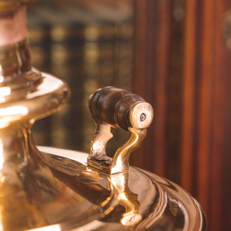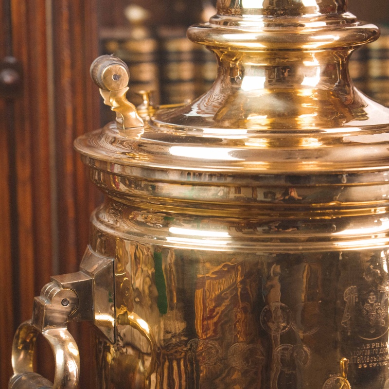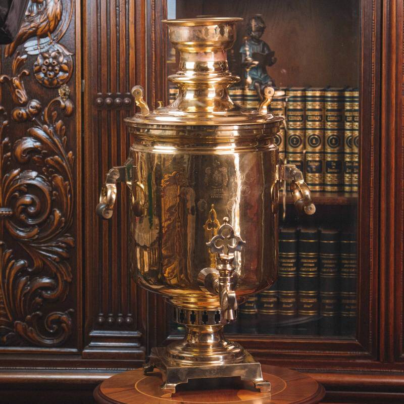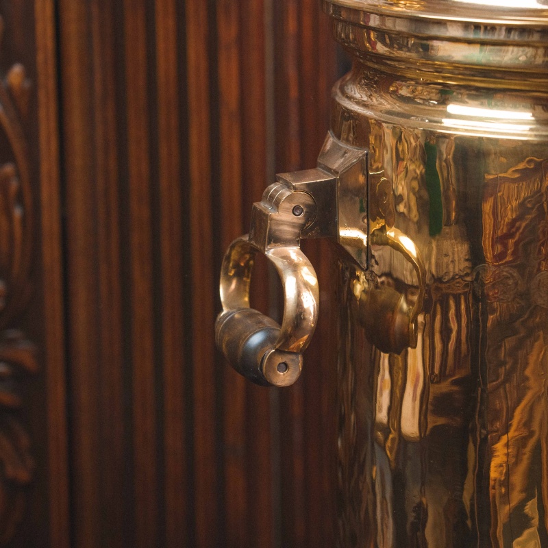 Материал: Самовар изготовлен из полированной латуни.