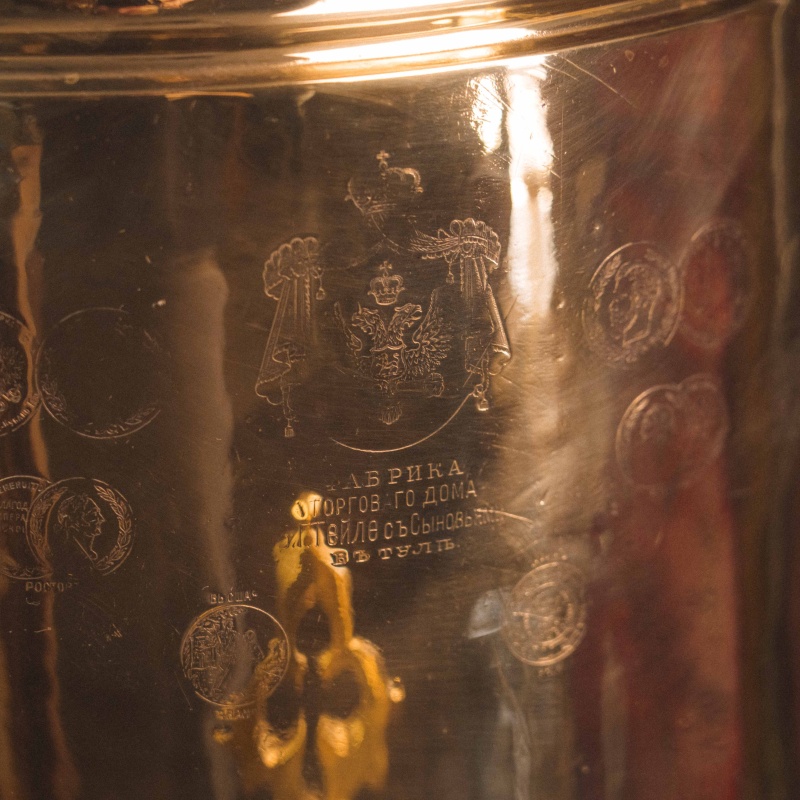 Старинный русский самовар в форме «Цилиндра» знаменитой Тульской фабрики «Торгового Дома Б. Г. Тейле с сыновьями»