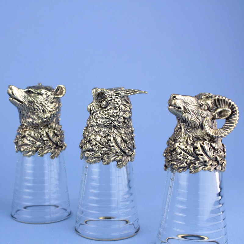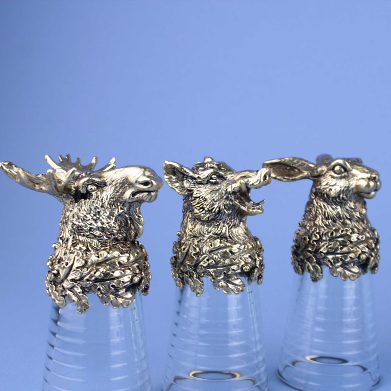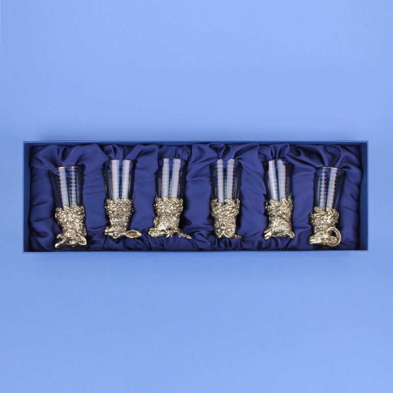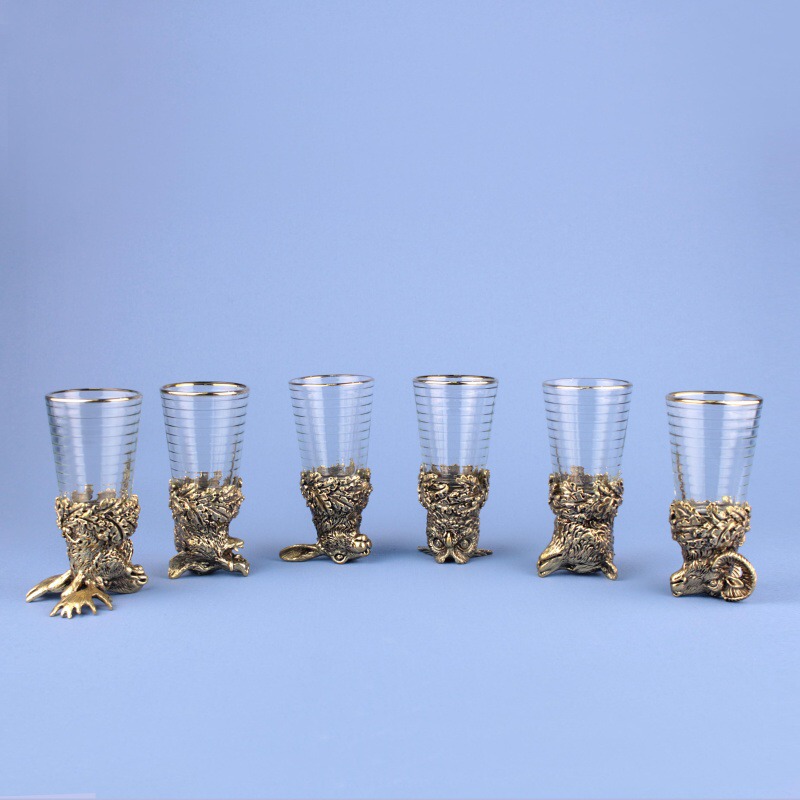 Набор охотничьих рюмок-перевертышей. 6 разных животных из литой бронзы. Россия, современная работа. Отличный подарок охотнику.