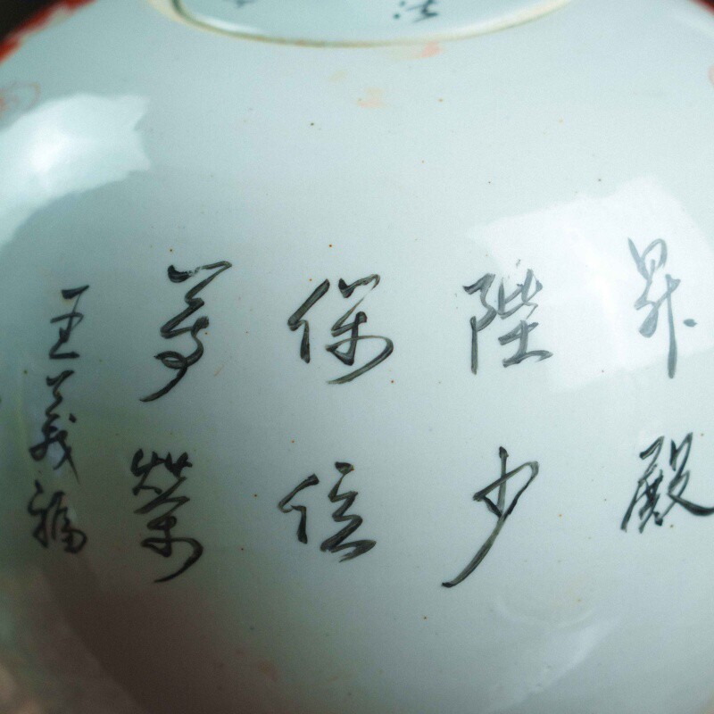На оборотной стороне изделия расположена каллиграфическая надпись тушью, выполненная в изящной манере.