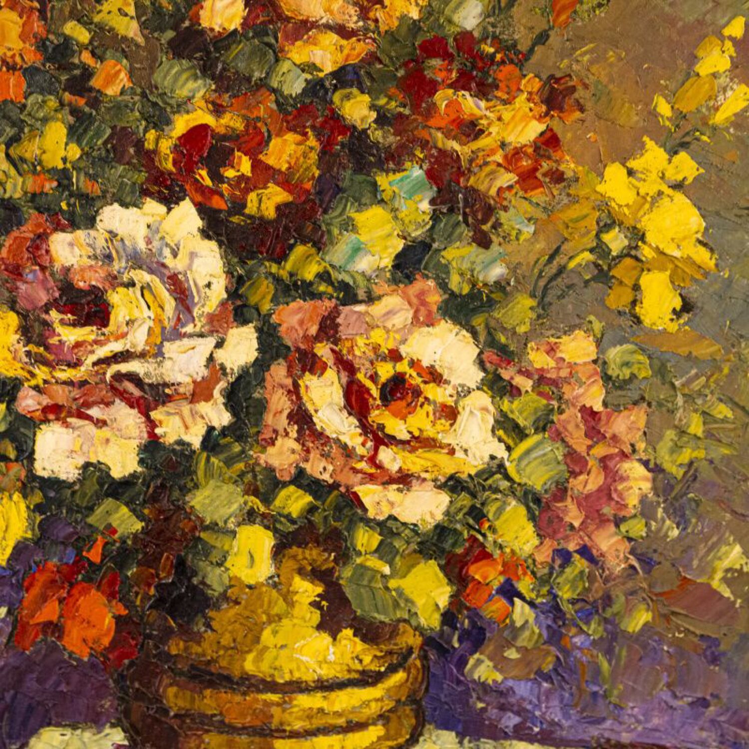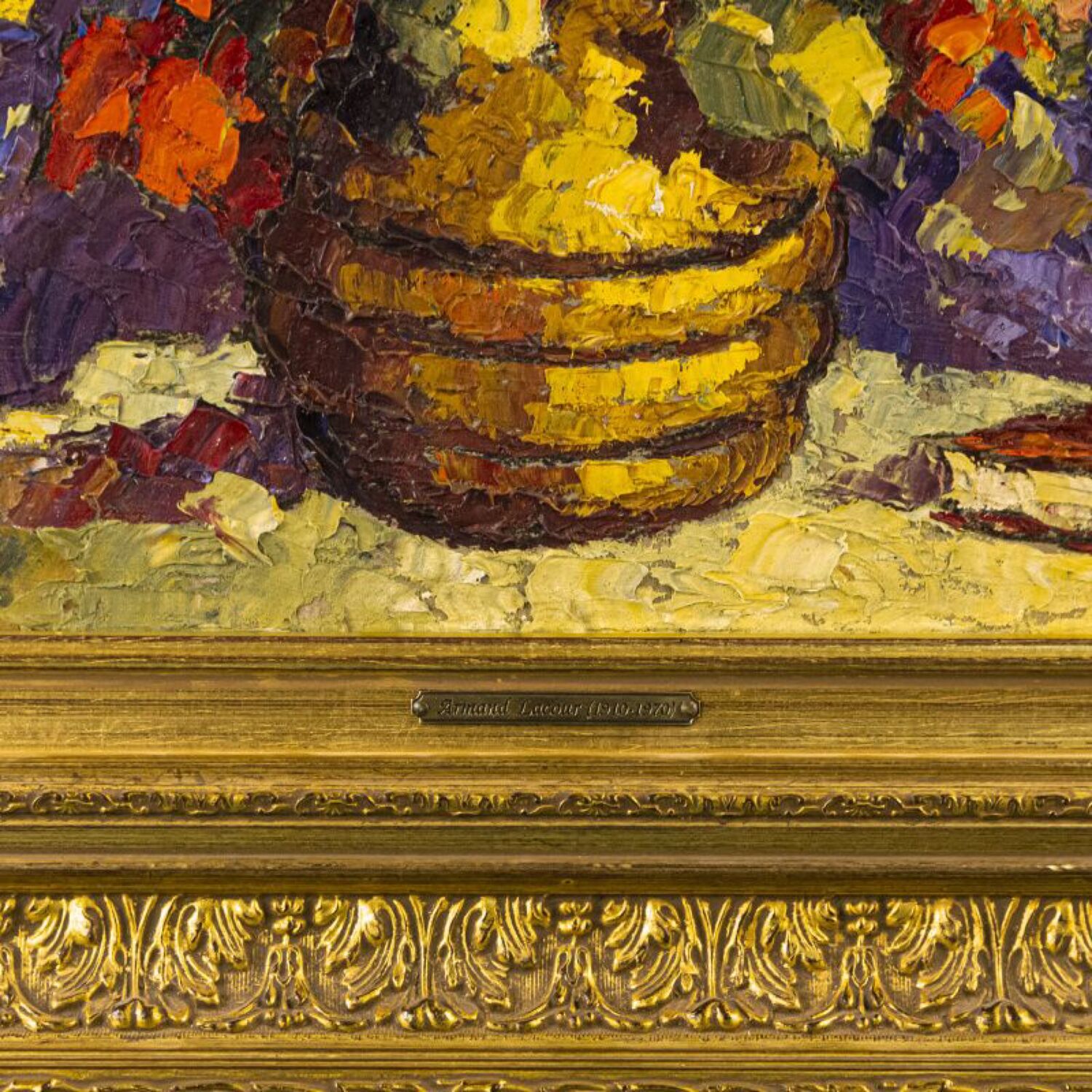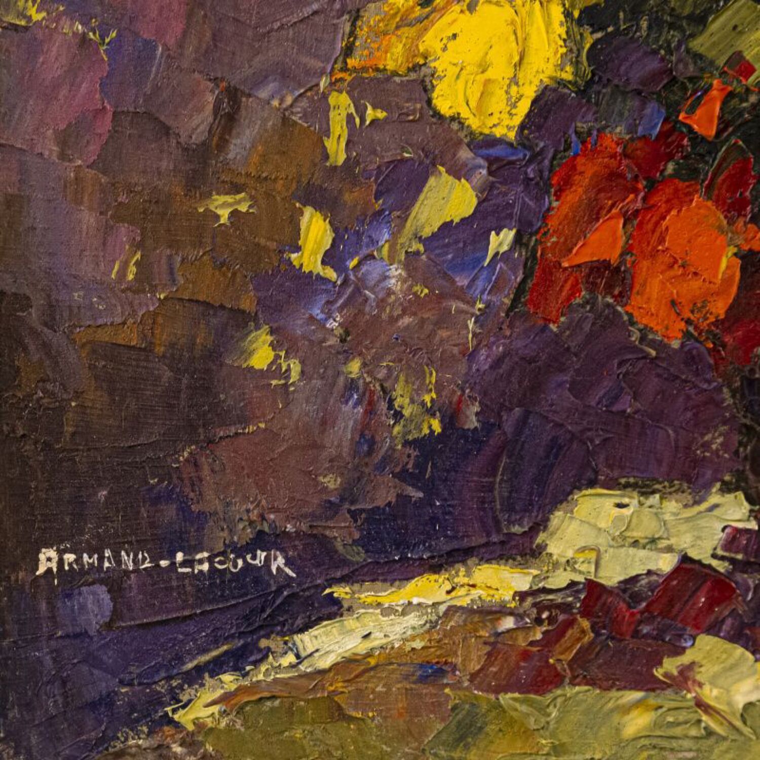 Живописное произведение известного бельгийского художника Armand Lacour (1910-1970) c условным названием «Натюрморт с летними цветами ». Авторская подпись Armand Lacour, подтверждающая подлинность произведения, находится в левом нижнем углу картины.